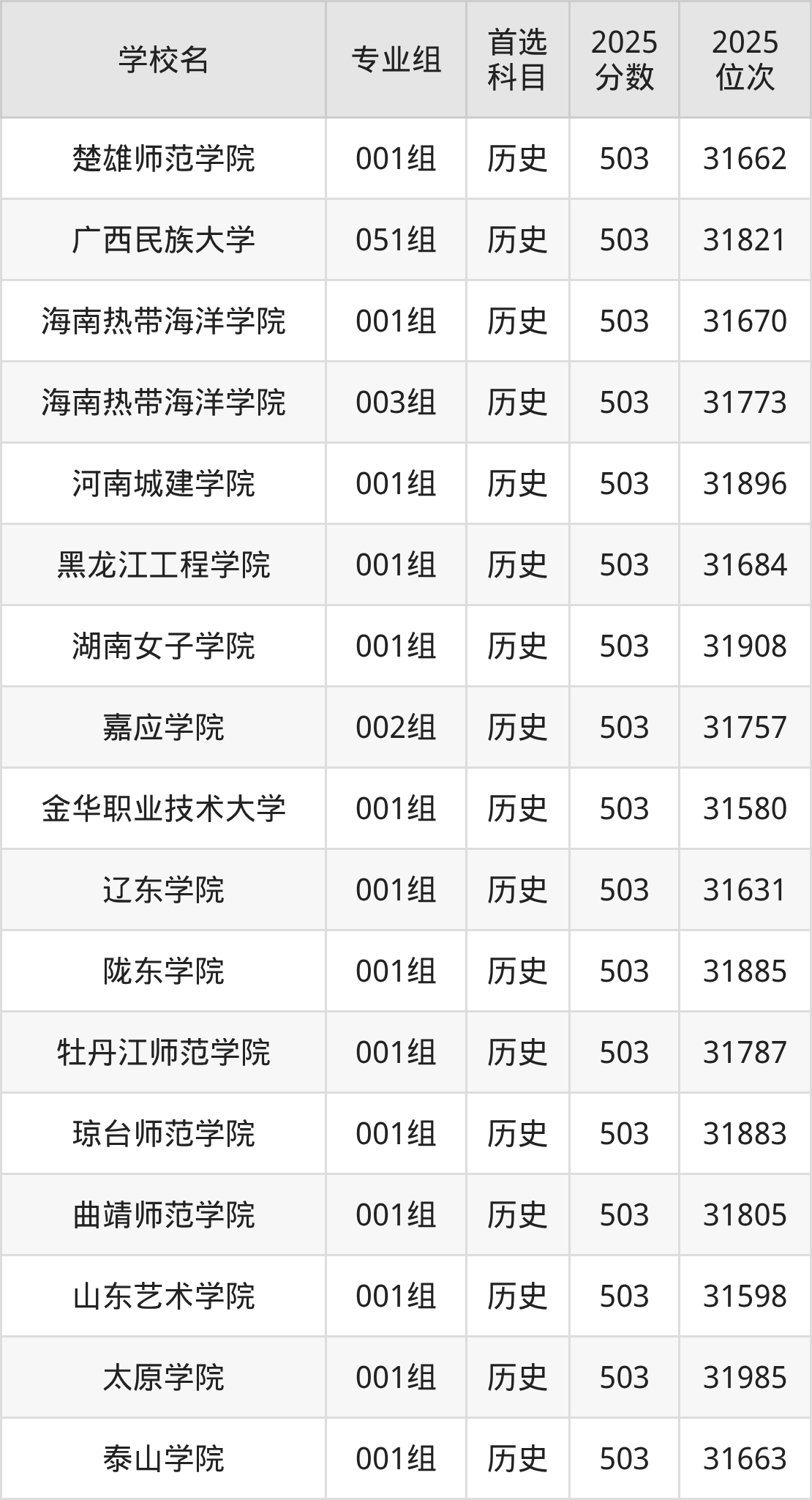 下面老师将以上文整理的其中两个省份为例,为大家具体展示505分左右能上的本科大学名单。