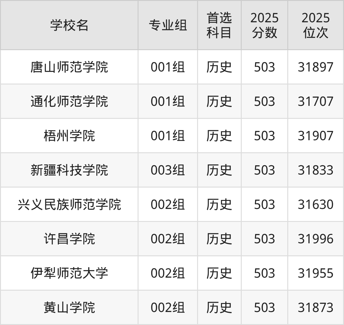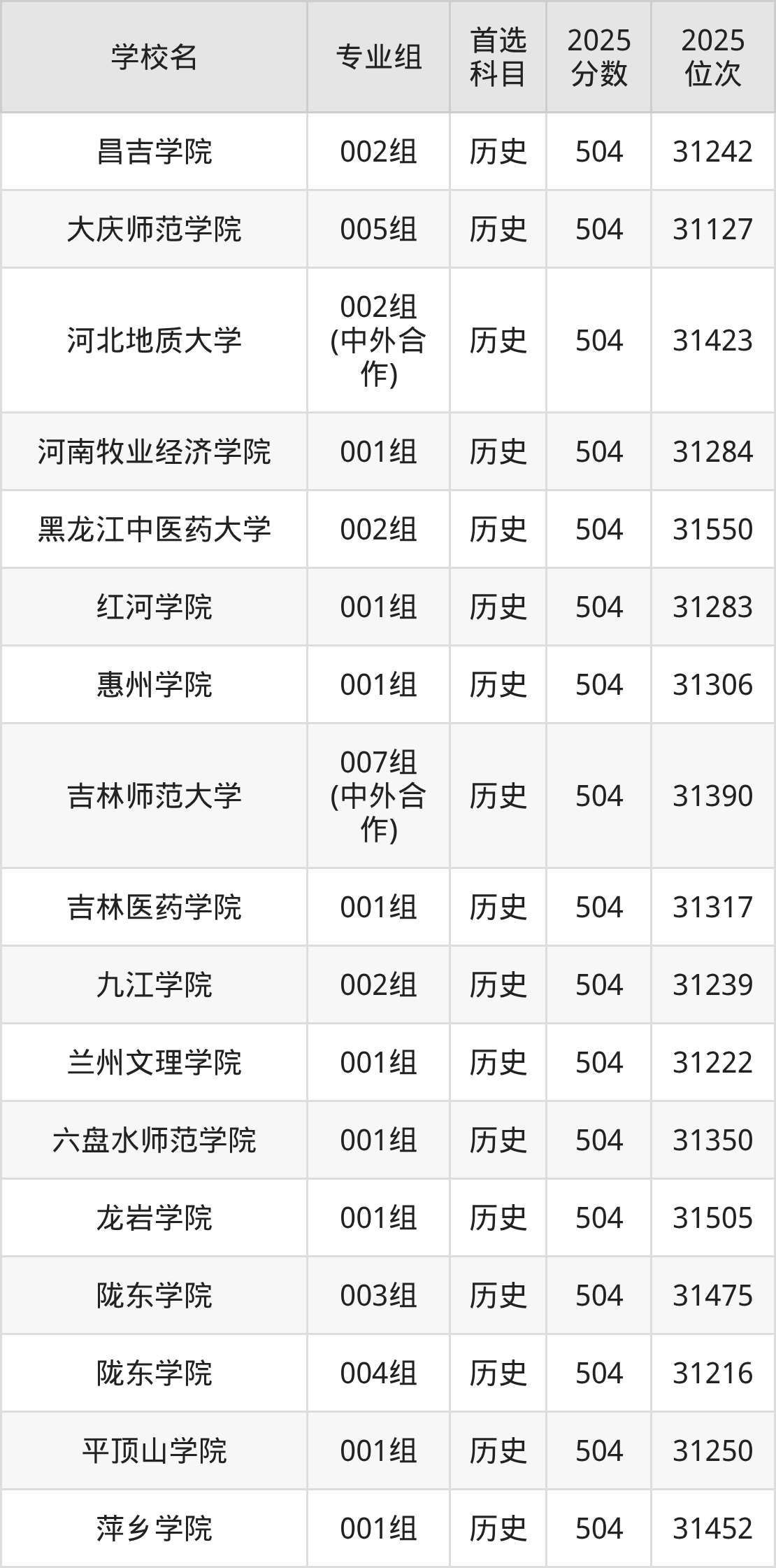 历史类505分可以冲的大学:保定学院507分、长春师范大学507分、桂林航天工业学院507分、哈尔滨师范大学507分等;较稳妥的大学:安阳工学院504分、昌吉学院504分、大庆师范学院504分、河北地质大学504分等。