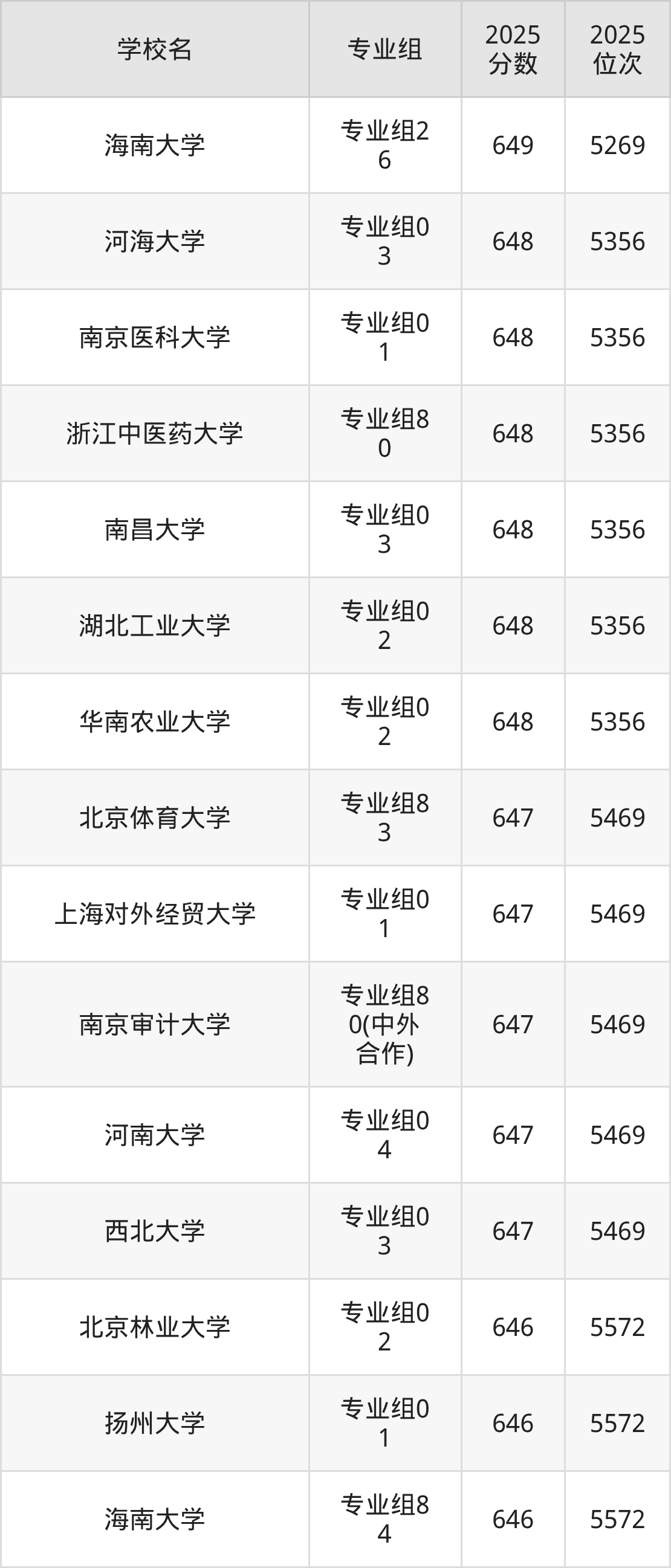 海南648分对应的位次排名是5356名,因此建议2026年位次排在这附近的考生考虑这些大学。