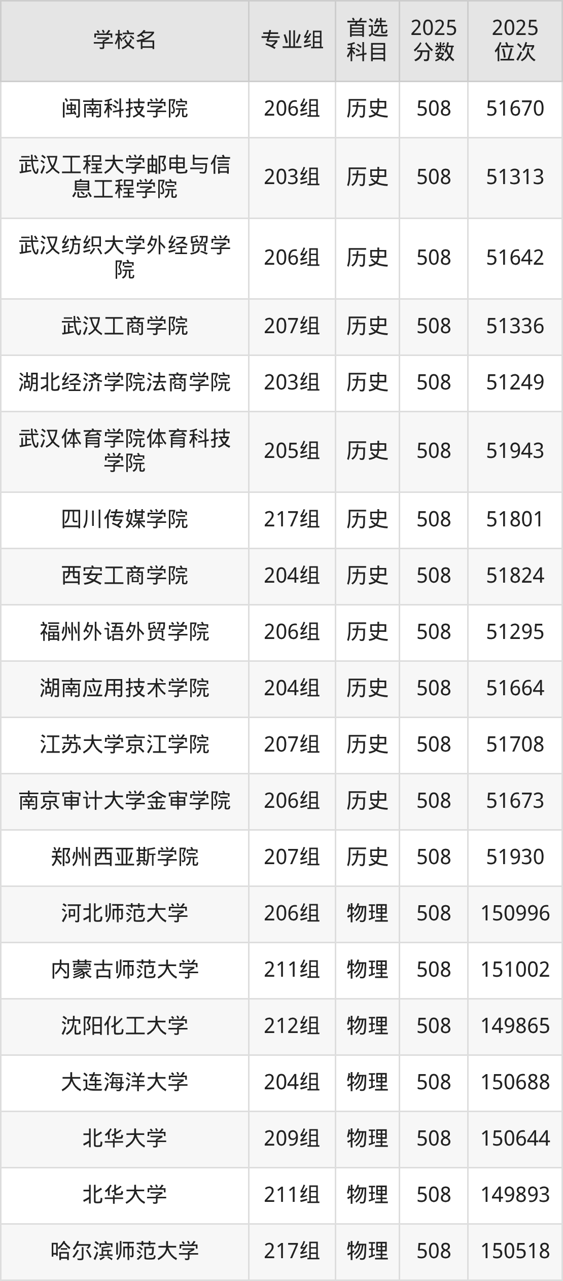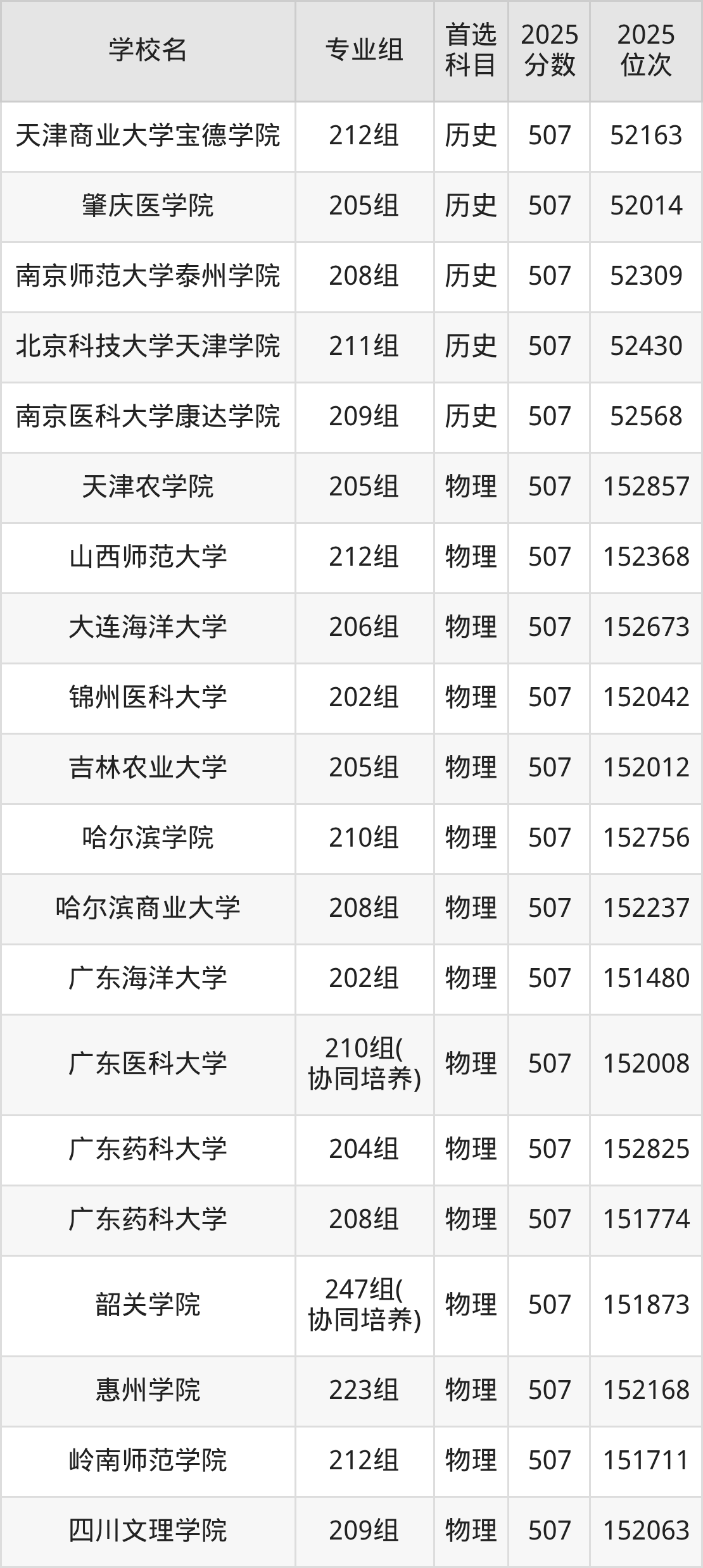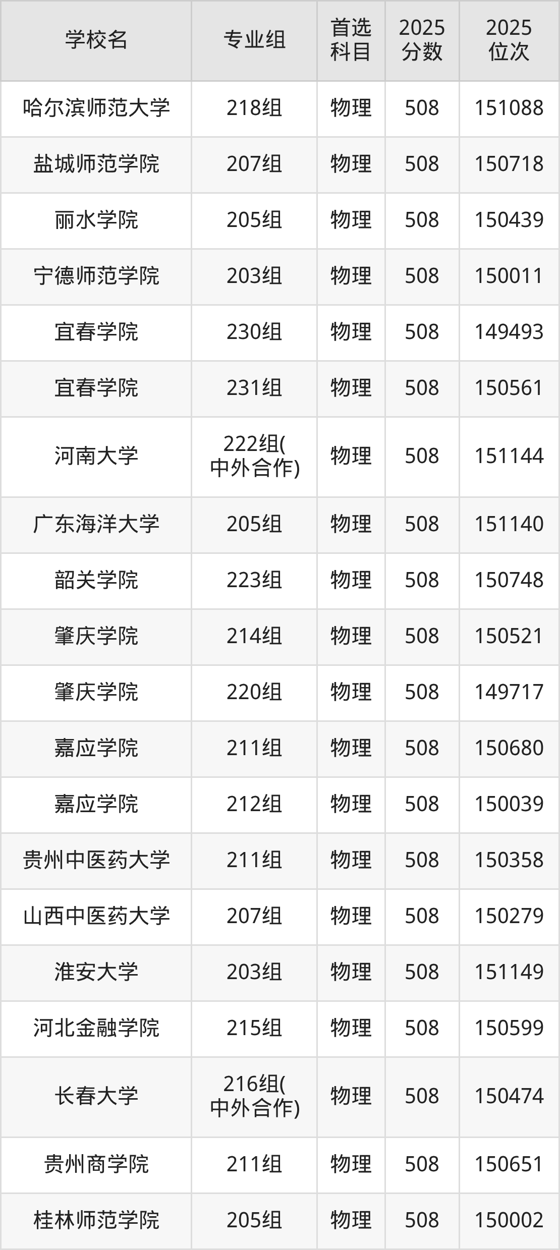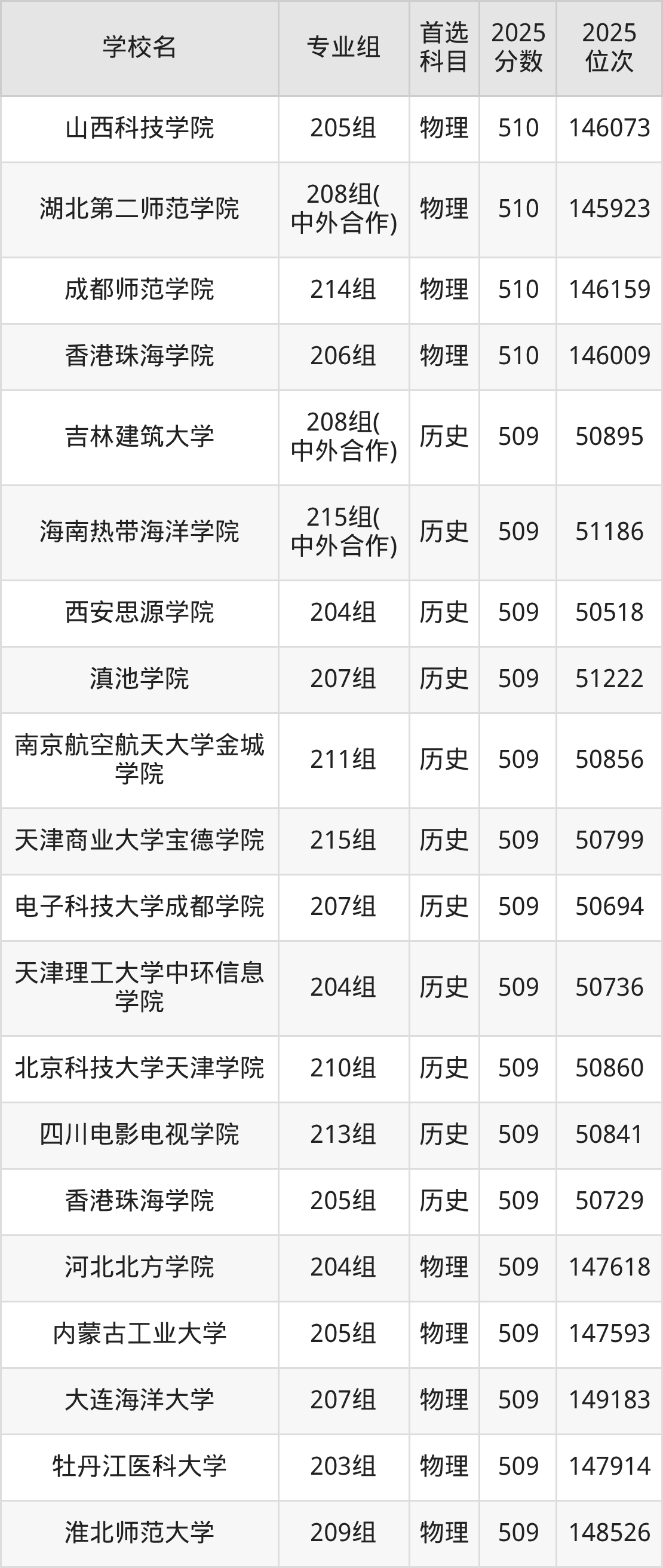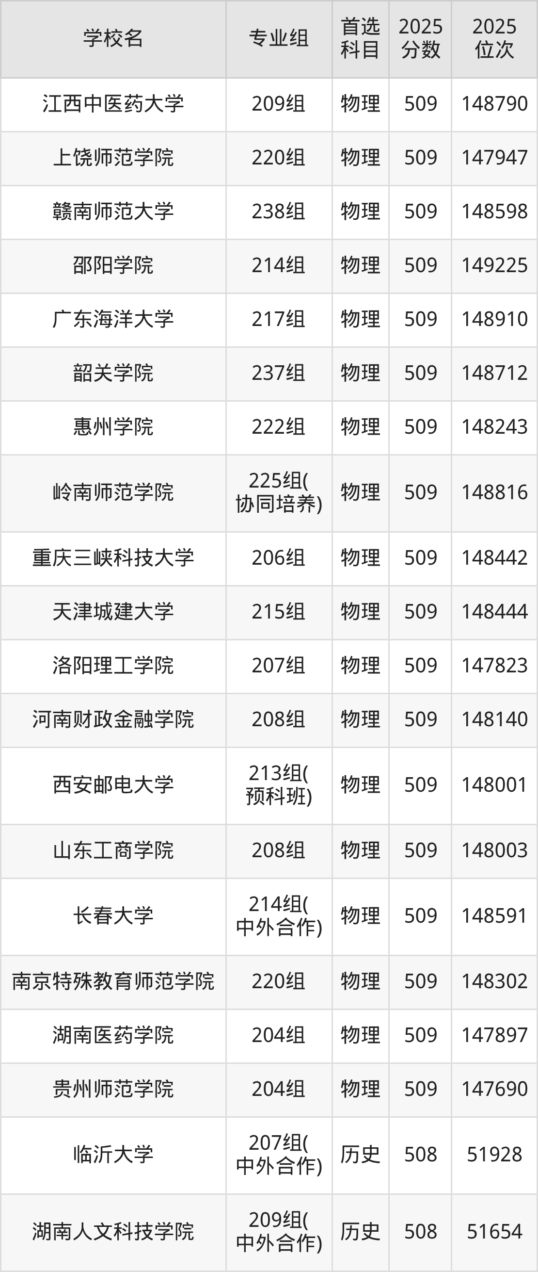 广东高考物理类509分对应的位次排名是147593名-149225名,历史类509分对应的位次排名是50518名-51222名,因此建议2026年位次排在这附近的同学考虑这些大学。