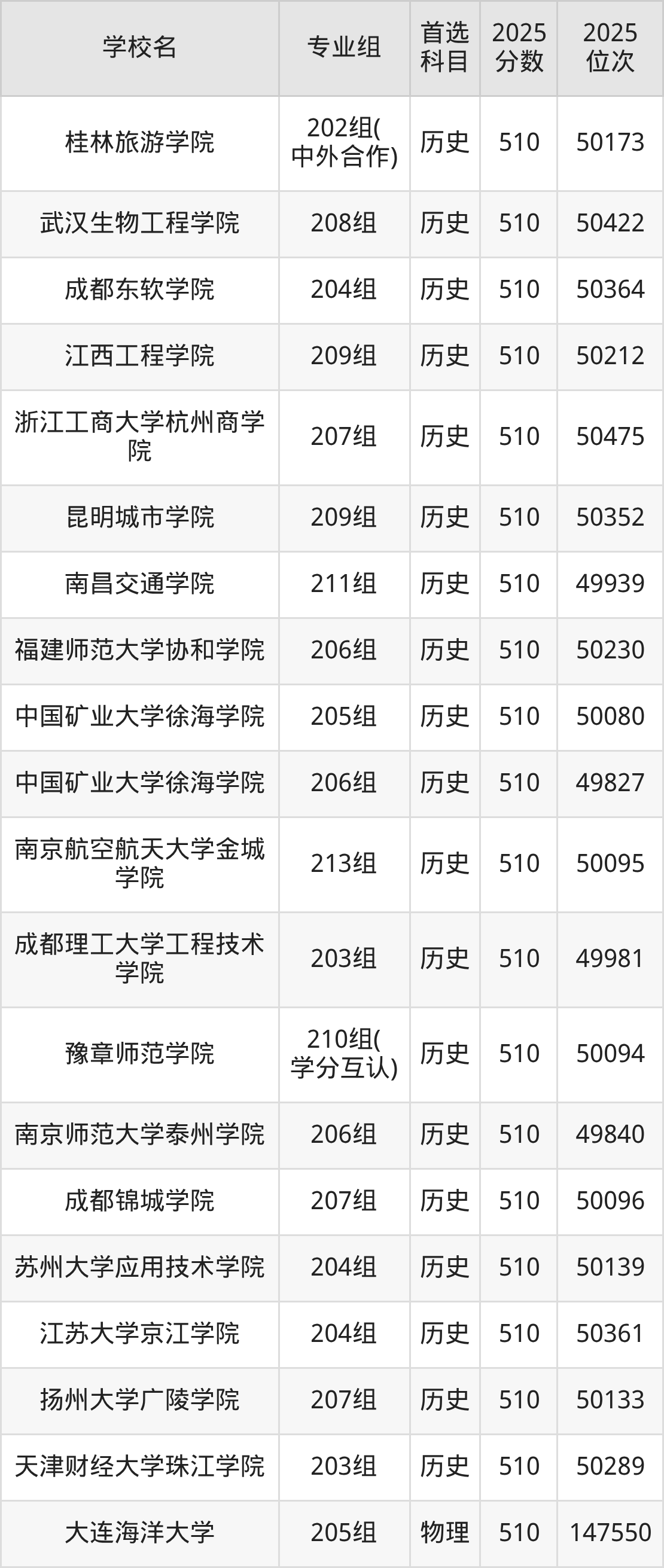 下面老师将以上文整理的其中两个省份为例,为大家具体展示509分左右能上的本科大学名单。