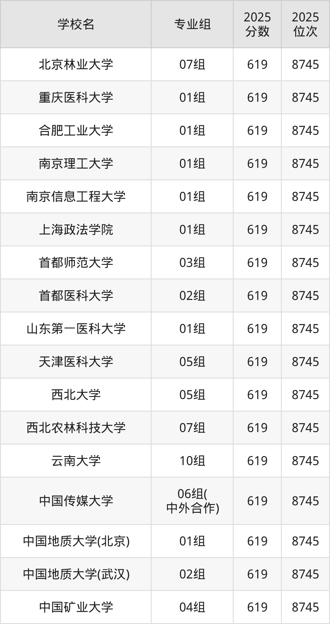 下面老师将以上文整理的其中两个省份为例,为大家具体展示621分左右能上的本科大学名单。