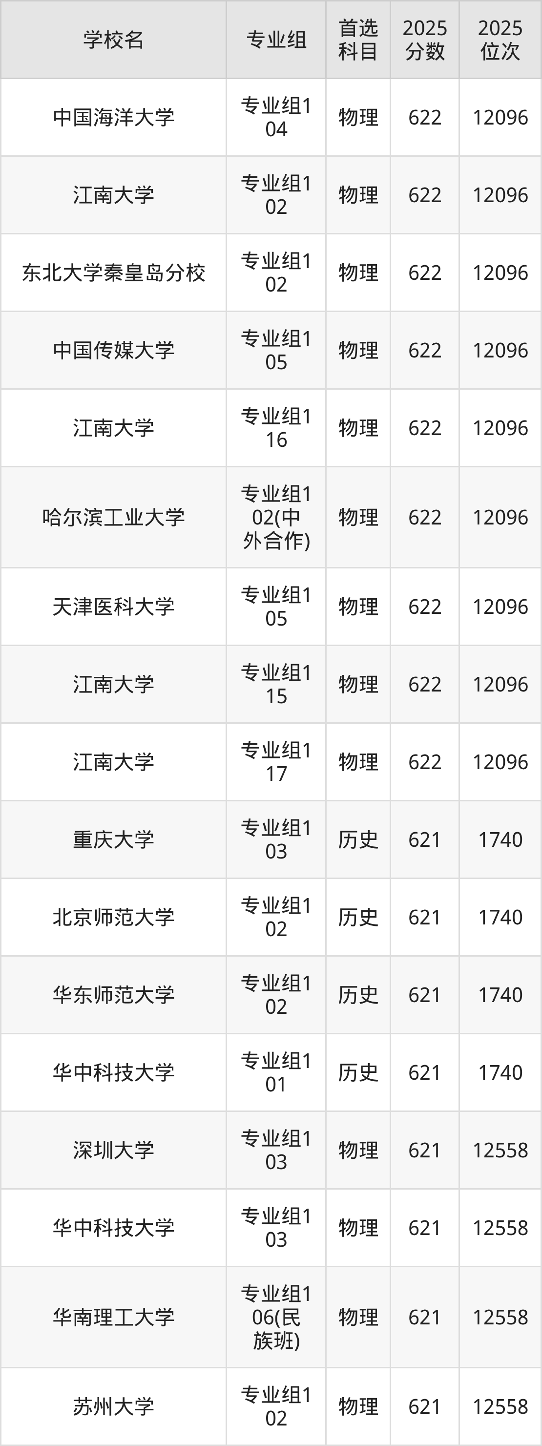 四川高考历史类621分对应的位次排名是1740名,物理类621分对应的位次排名是12558名,因此建议2026年位次排在这附近的同学考虑这些大学。