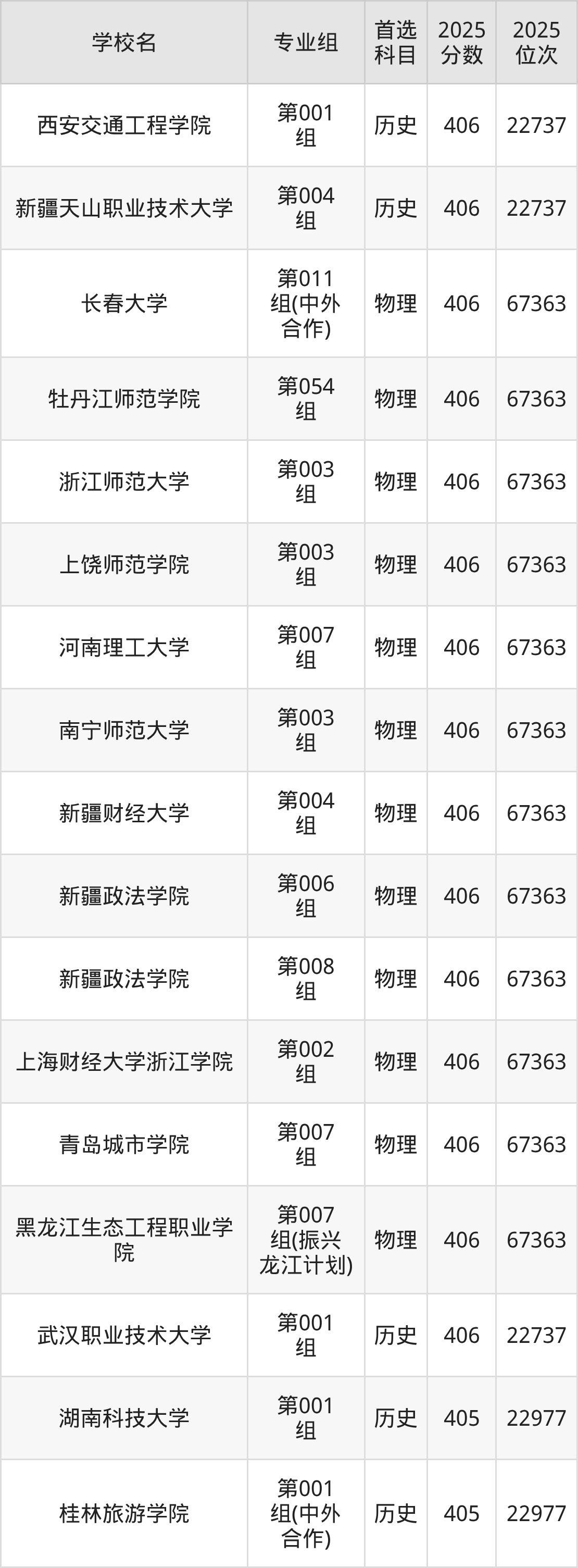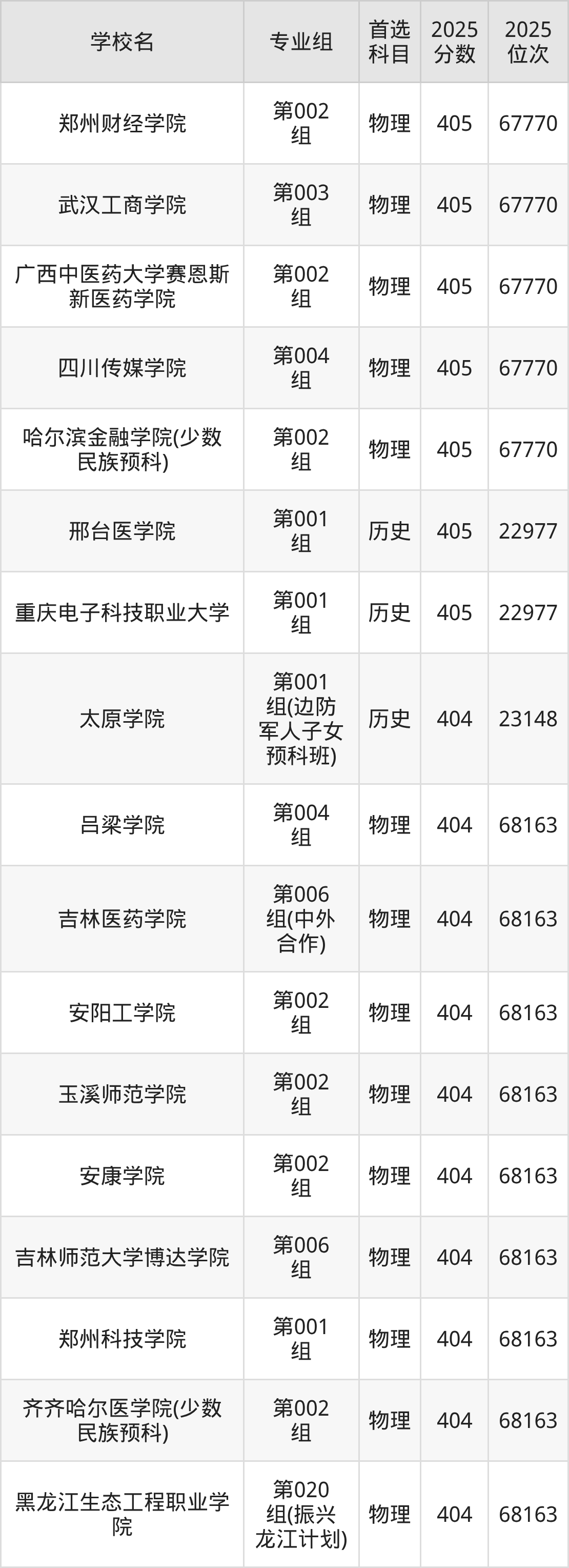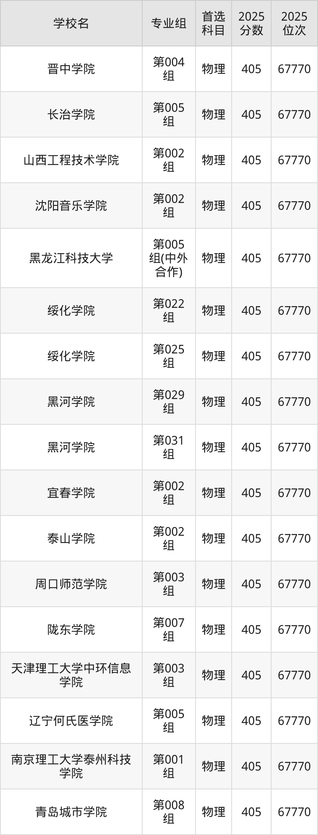 黑龙江高考物理类405分对应的位次排名是67770名,历史类405分对应的位次排名是22977名,因此建议2026年位次排在这附近的同学考虑这些大学。