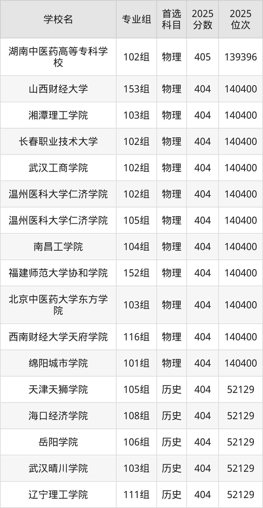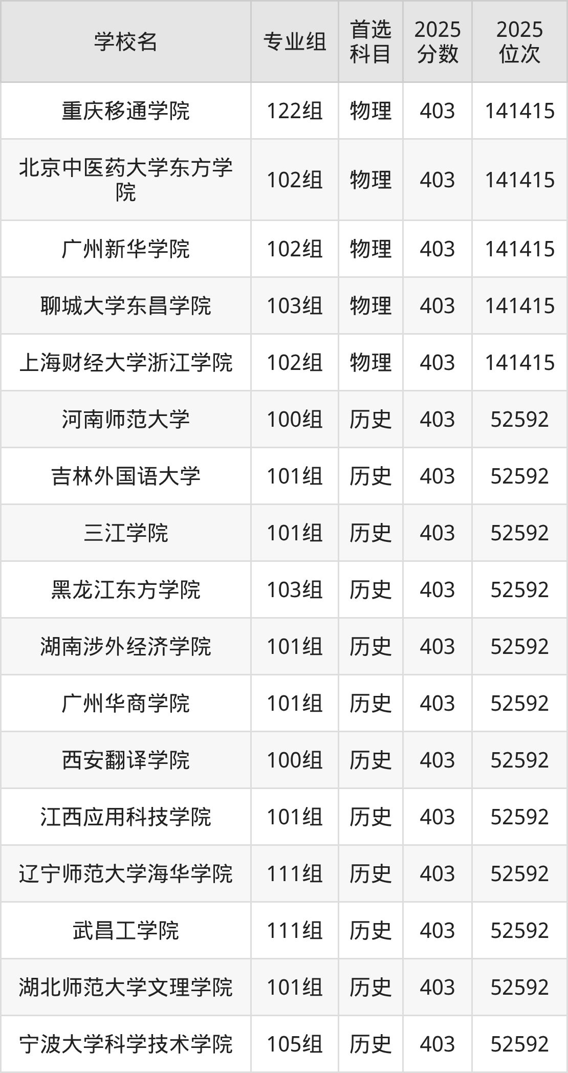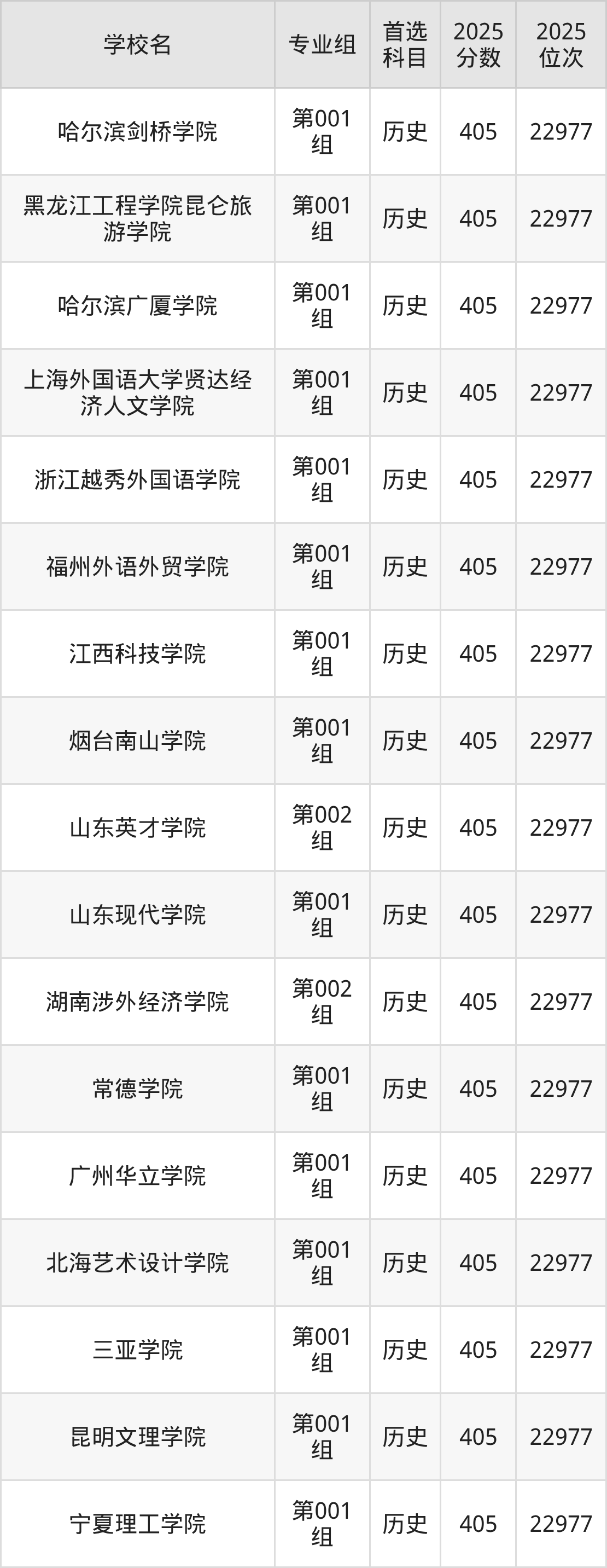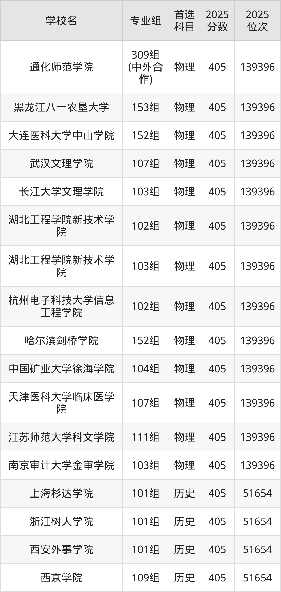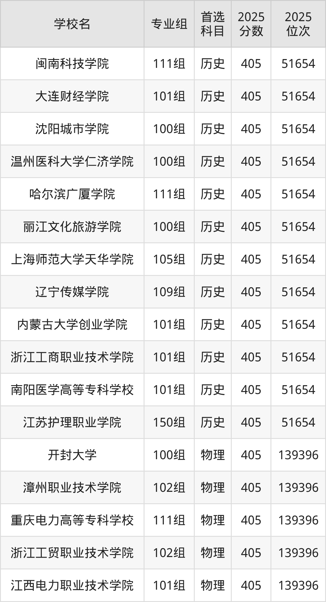 下面老师将以上文整理的其中两个省份为例,为大家具体展示405分左右能上的本科大学名单。