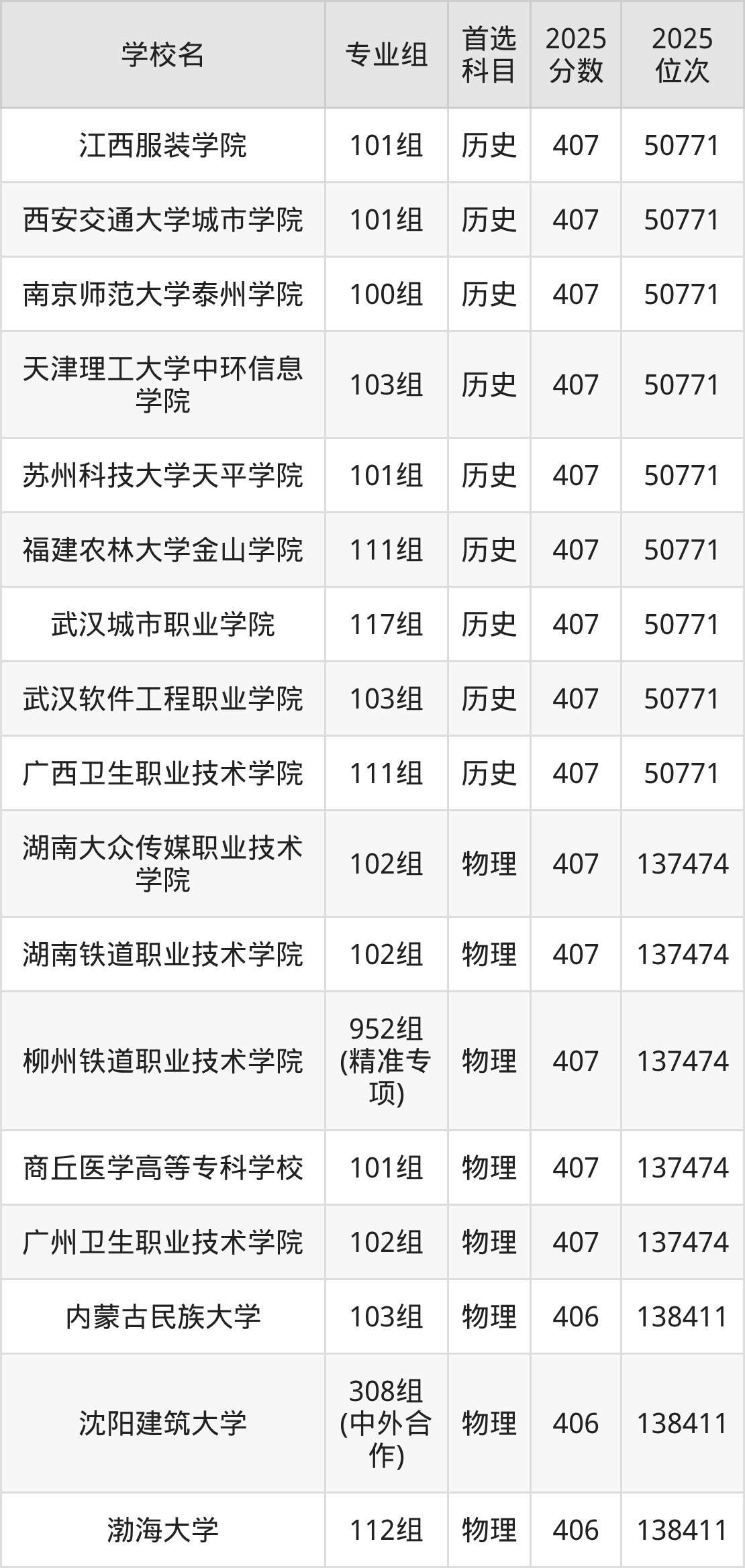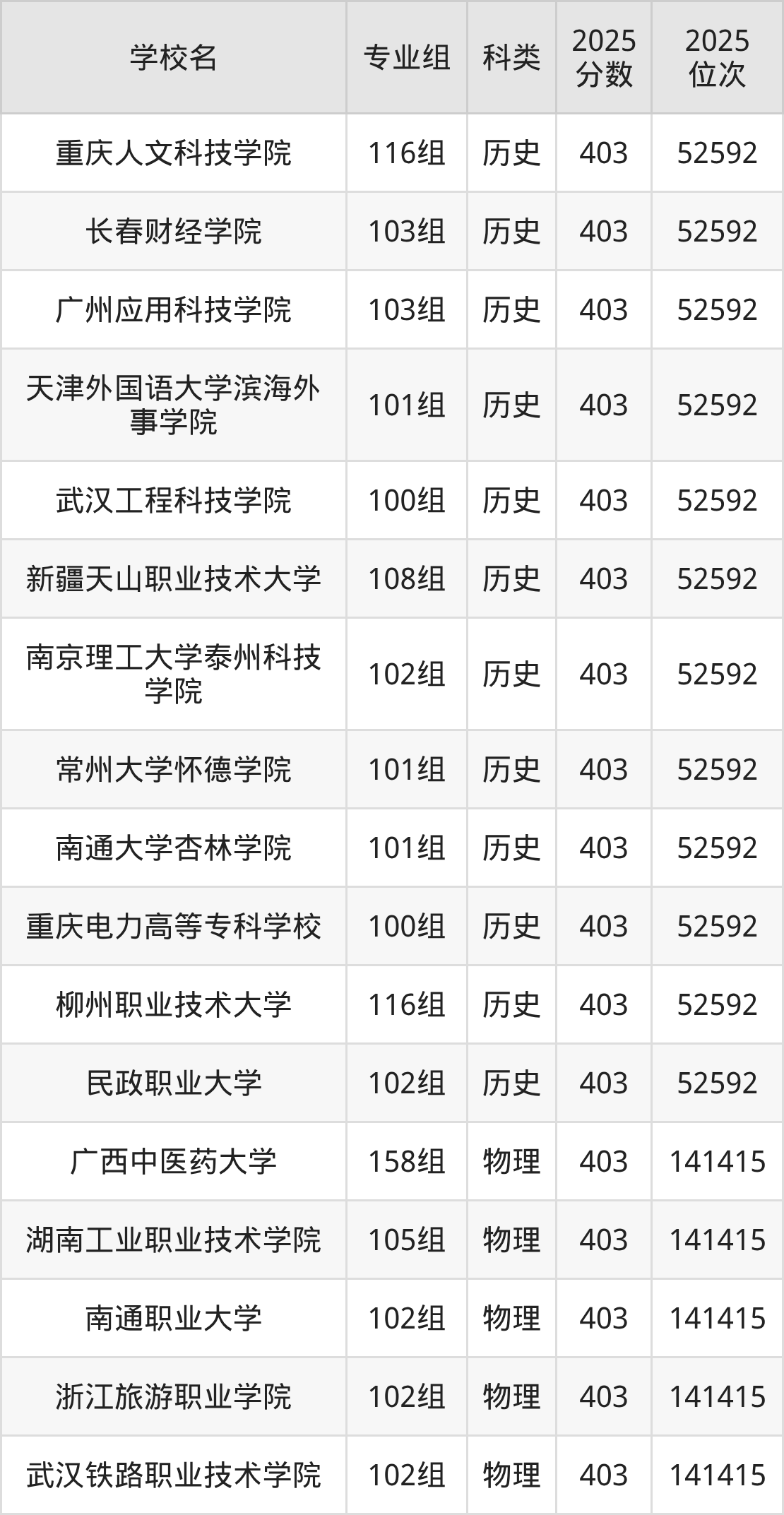 广西高考历史类405分对应的位次排名是51654名,物理类405分对应的位次排名是139396名,因此建议2026年位次排在这附近的同学考虑这些大学。