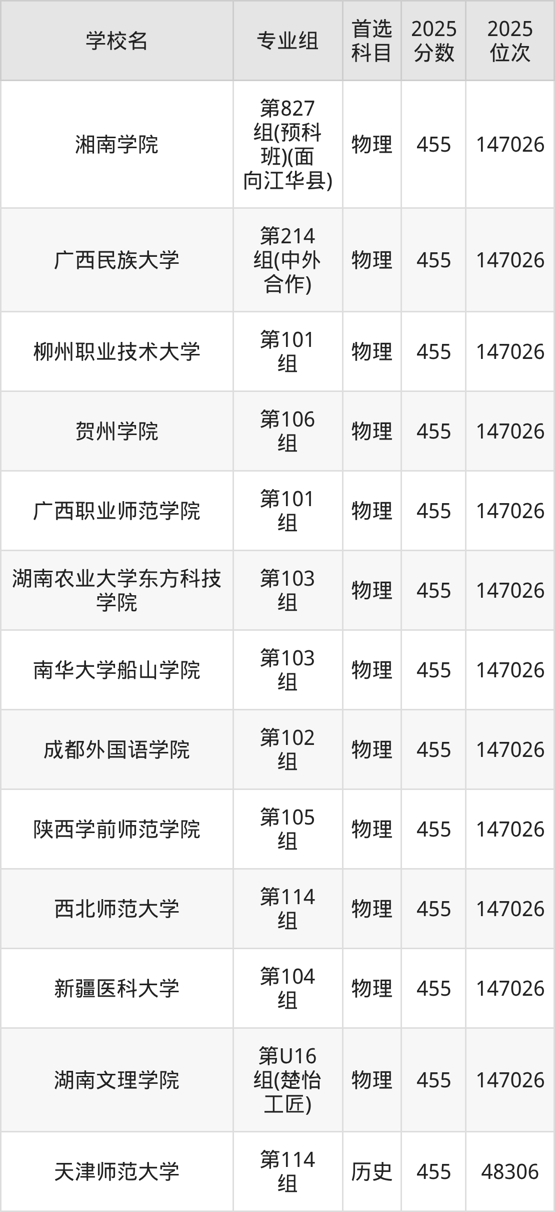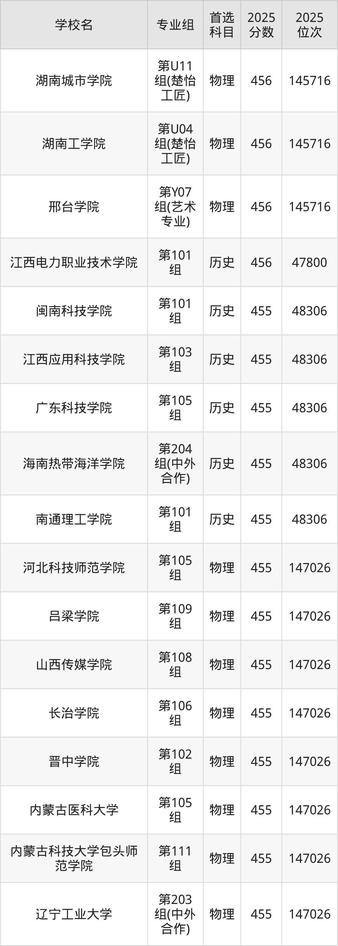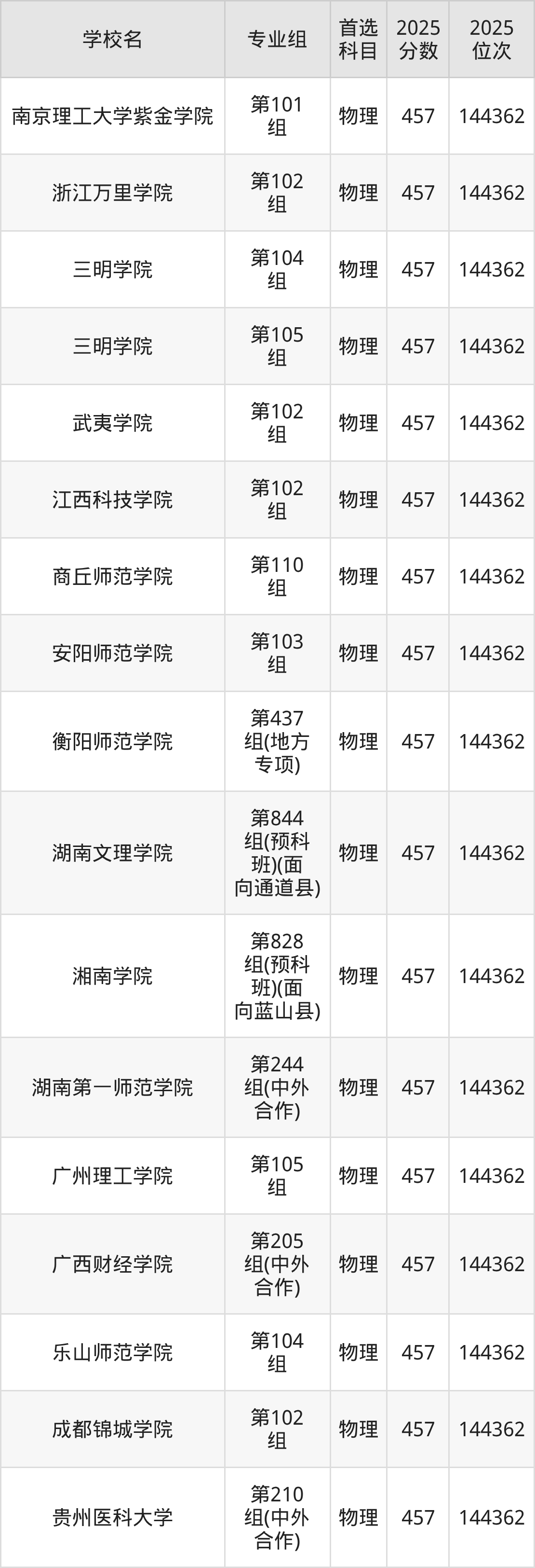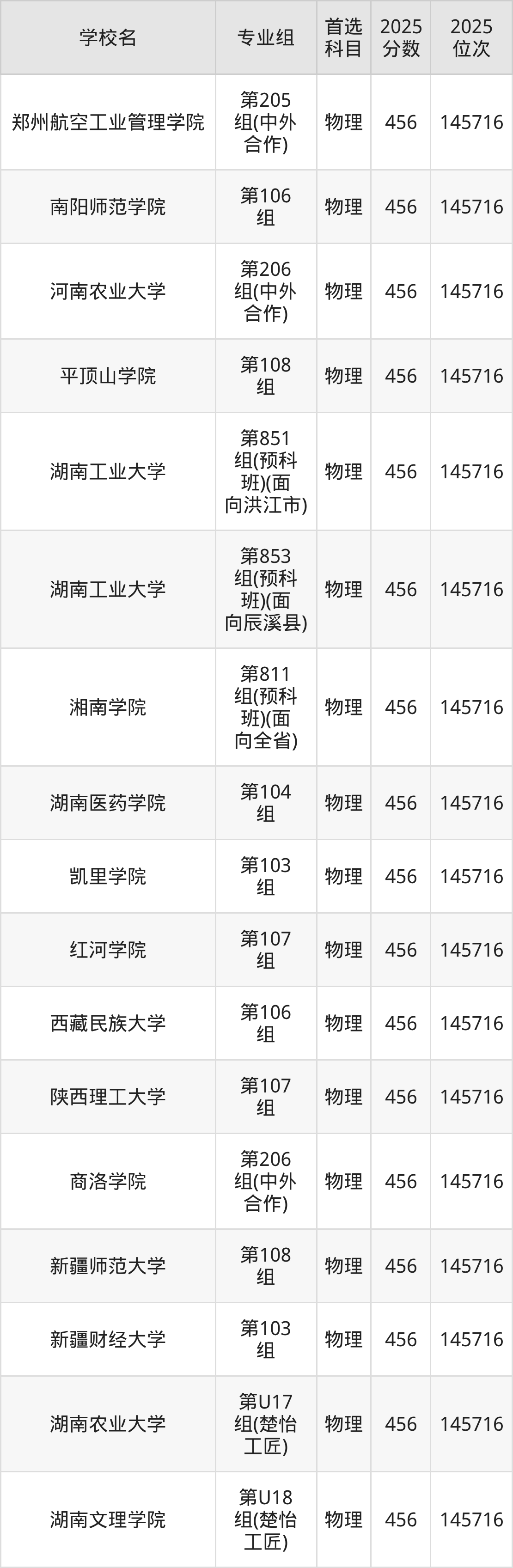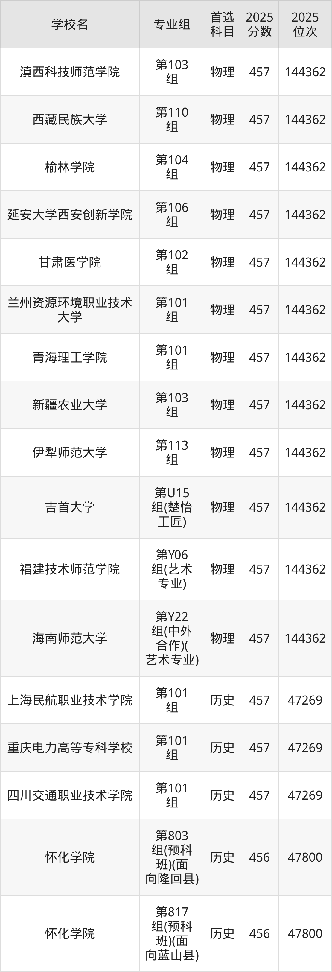 湖南高考历史类457分对应的位次排名是47269名,物理类457分对应的位次排名是144362名,因此建议2026年位次排在这附近的同学考虑这些大学。