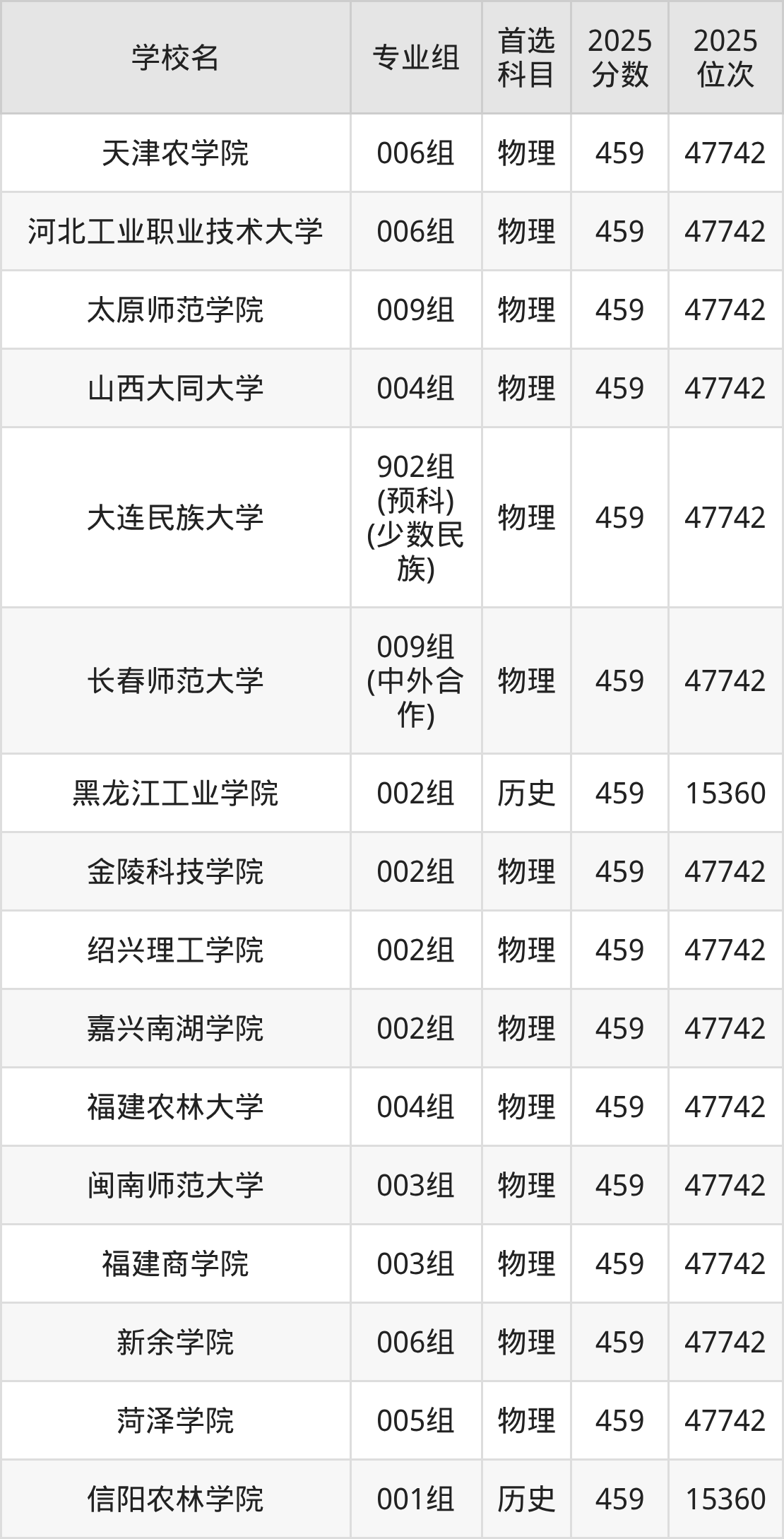 物理类457分可以冲的大学:天津农学院459分、河北工业职业技术大学459分、太原师范学院459分、山西大同大学459分等;较稳妥的大学:北京建筑大学456分、石家庄学院456分、内蒙古农业大学456分、吉林农业大学456分等。