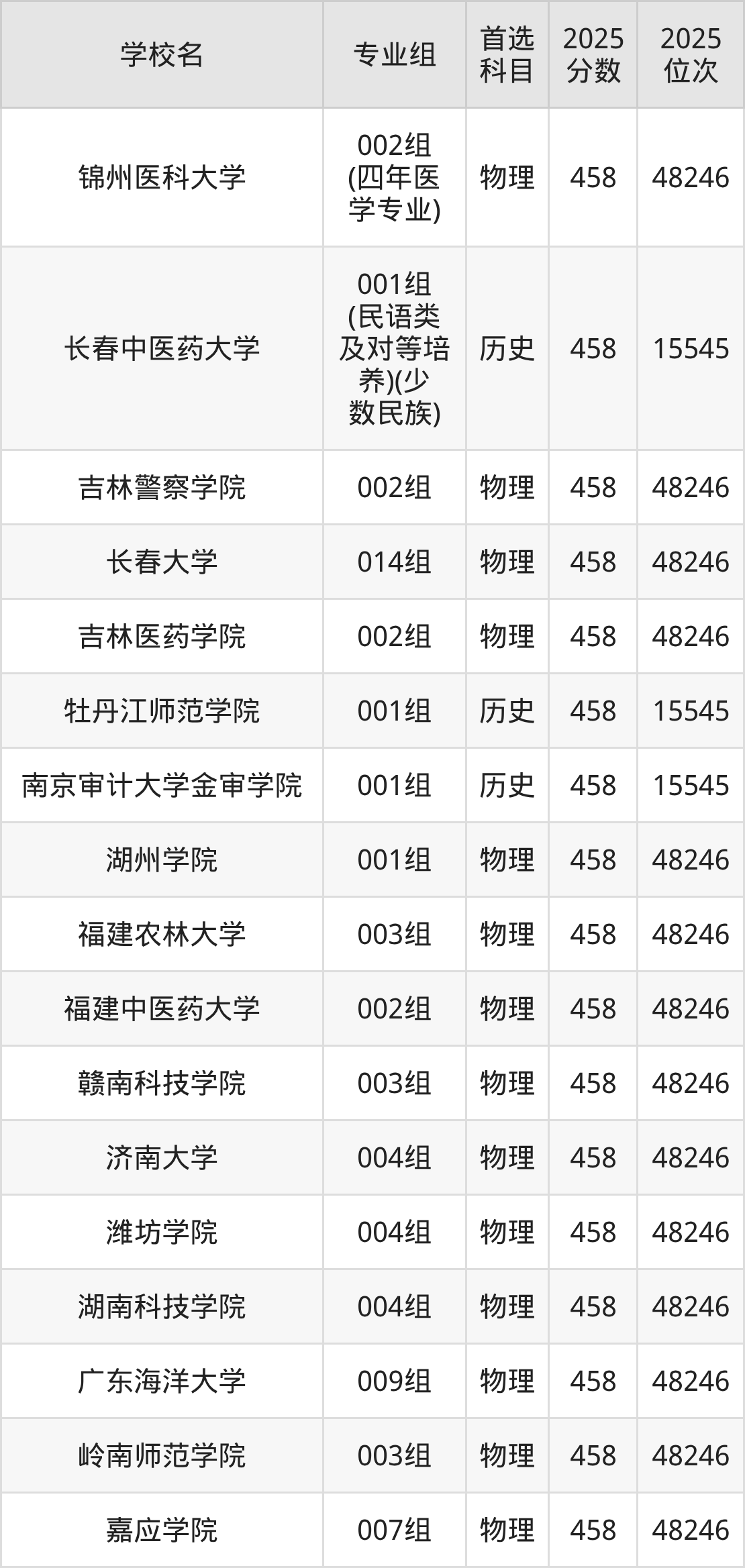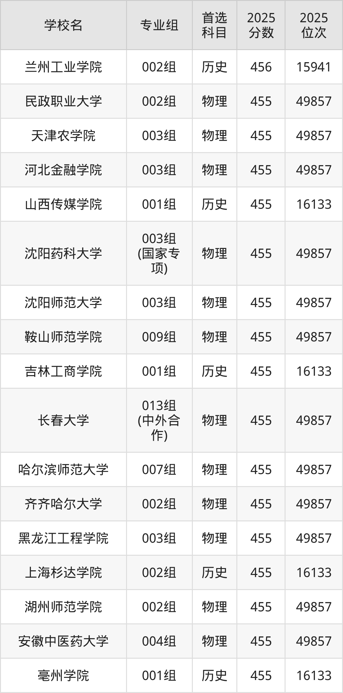 下面老师将以上文整理的其中两个省份为例,为大家具体展示457分左右能上的本科大学名单。