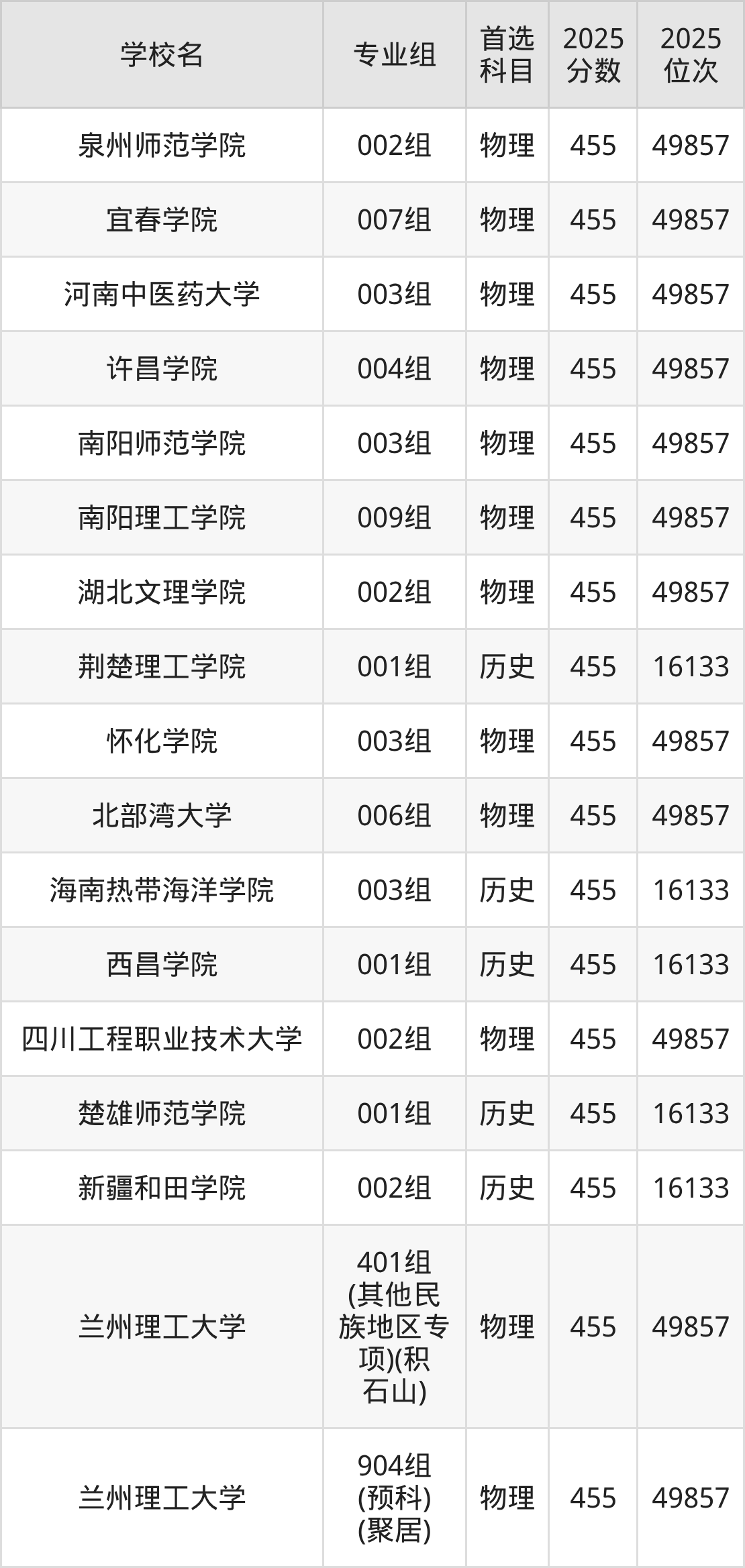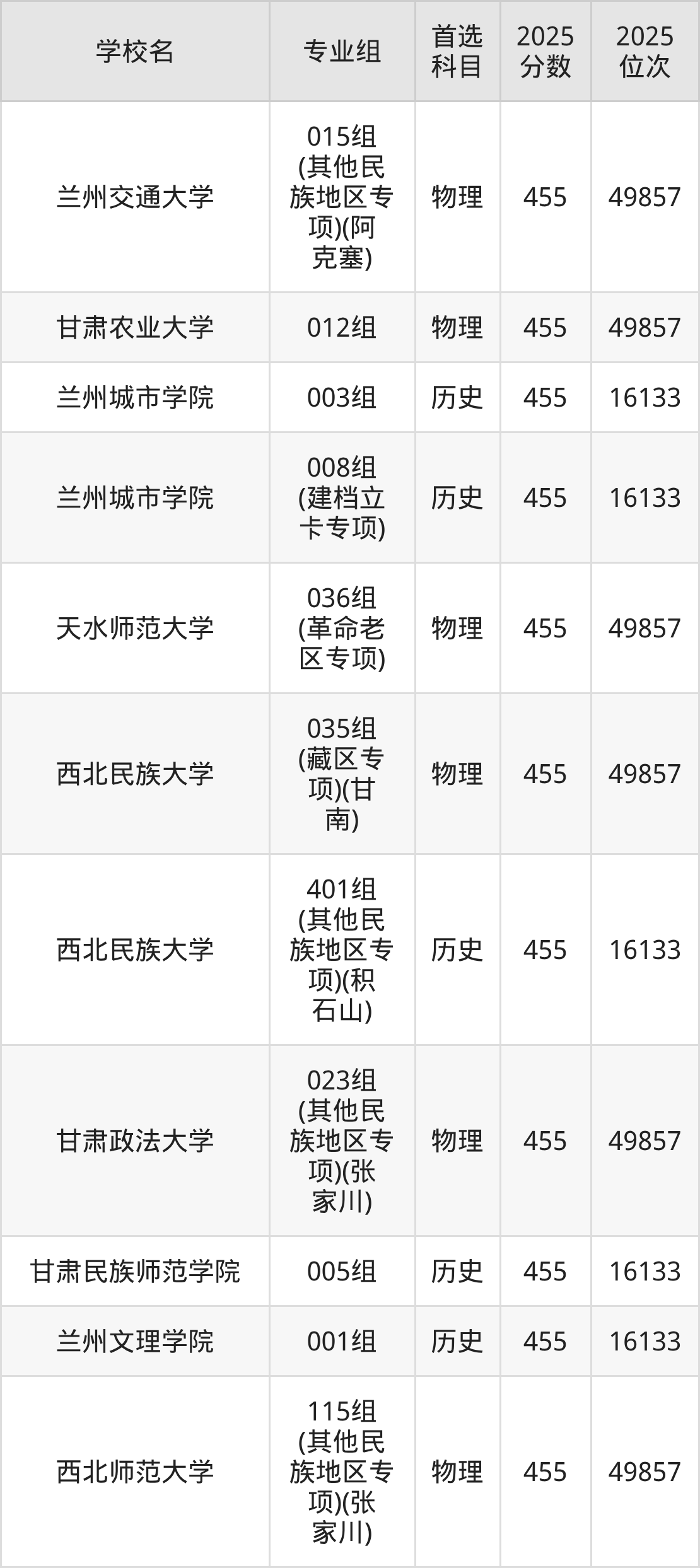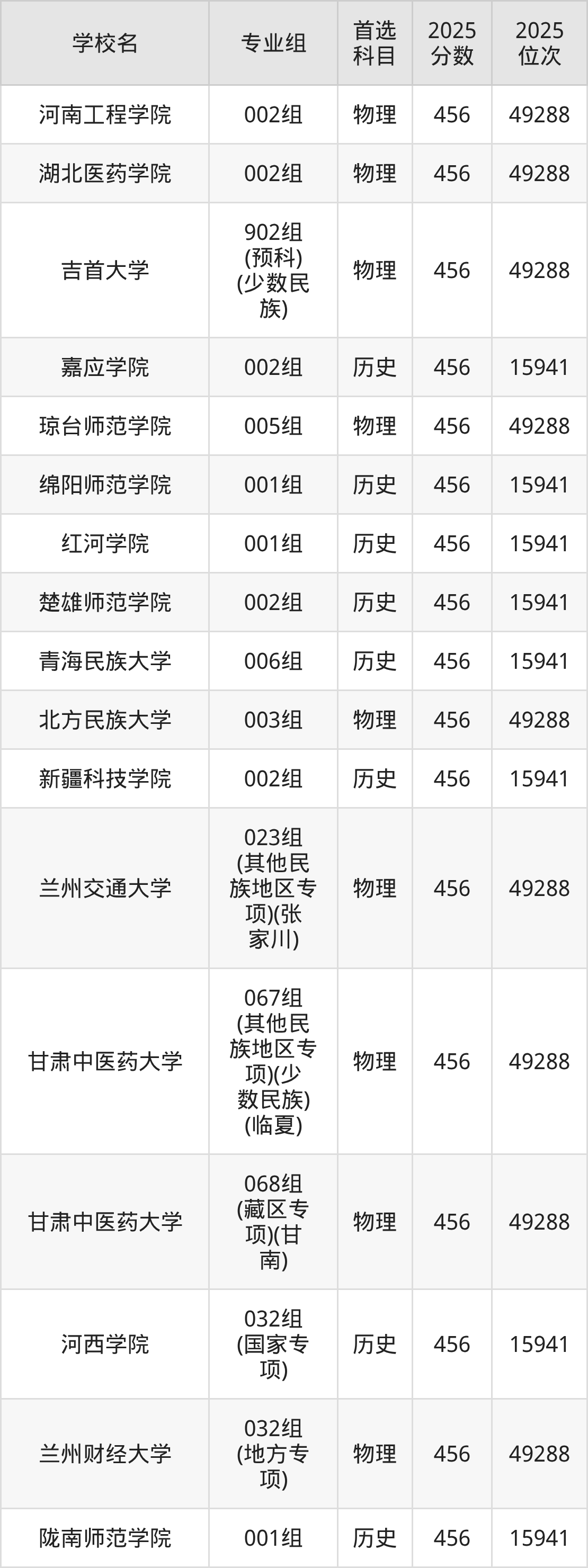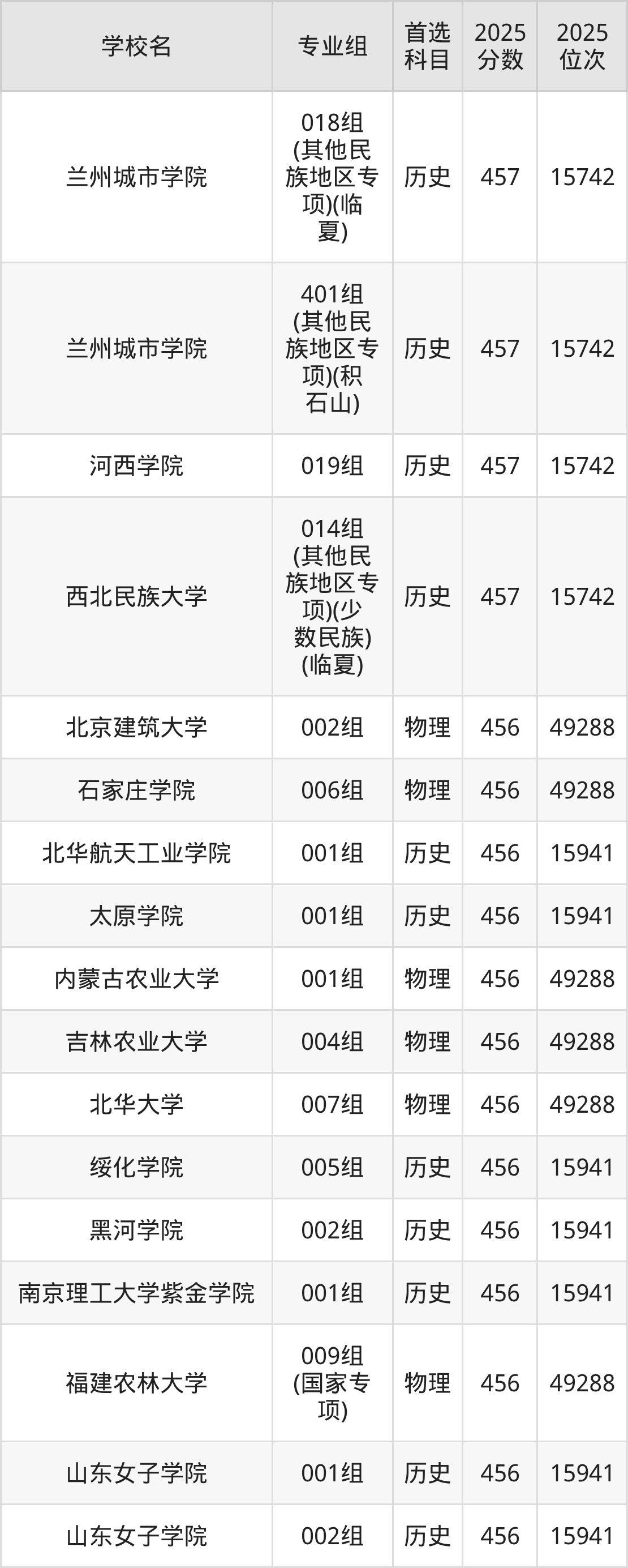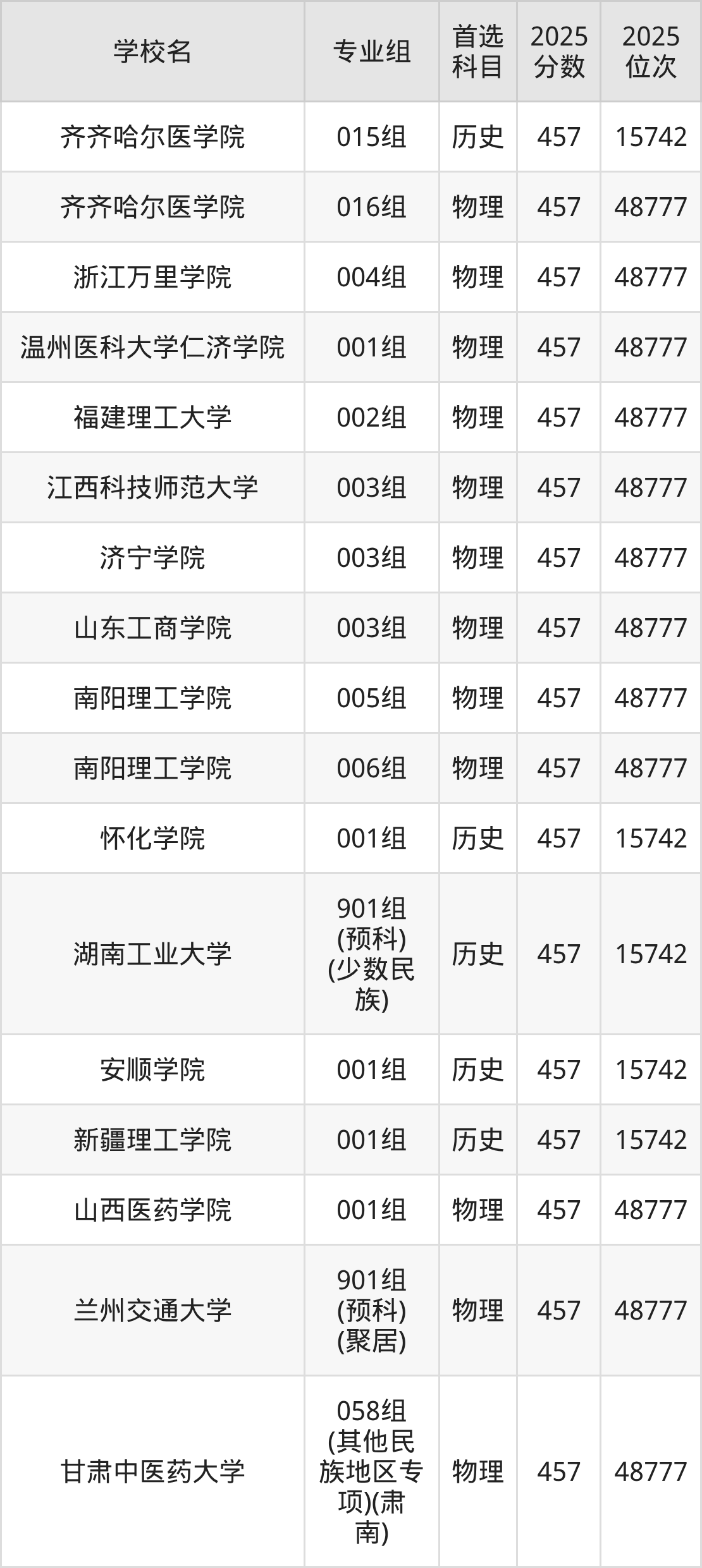 甘肃高考物理类457分对应的位次排名是48777名,历史类457分对应的位次排名是15742名,因此建议2026年位次排在这附近的同学考虑这些大学。