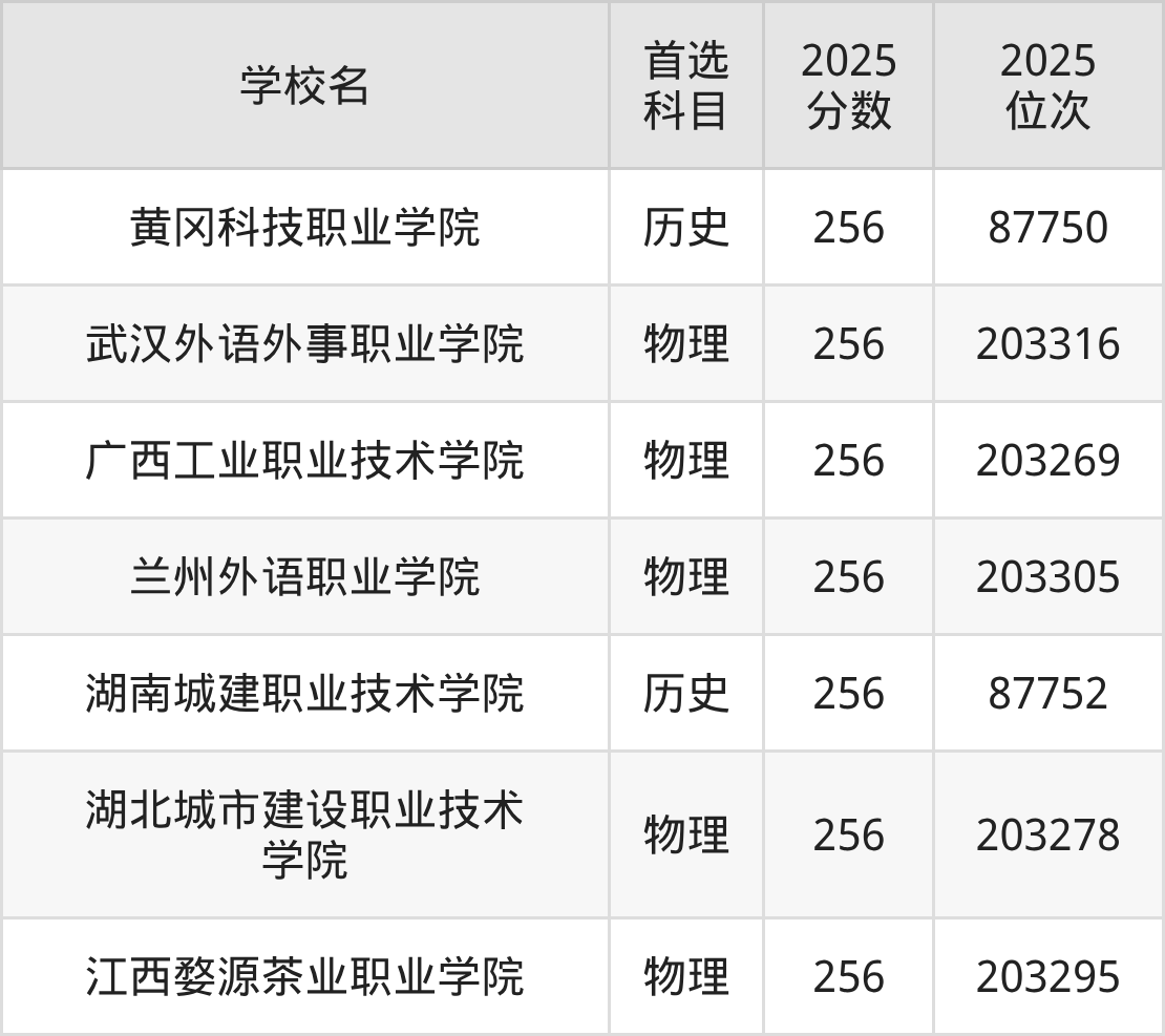 贵州高考物理类258分对应的位次排名是203140名-203183名,历史类258分对应的位次排名是87690名-87710名,因此建议2026年位次排在这附近的同学考虑这些大学。