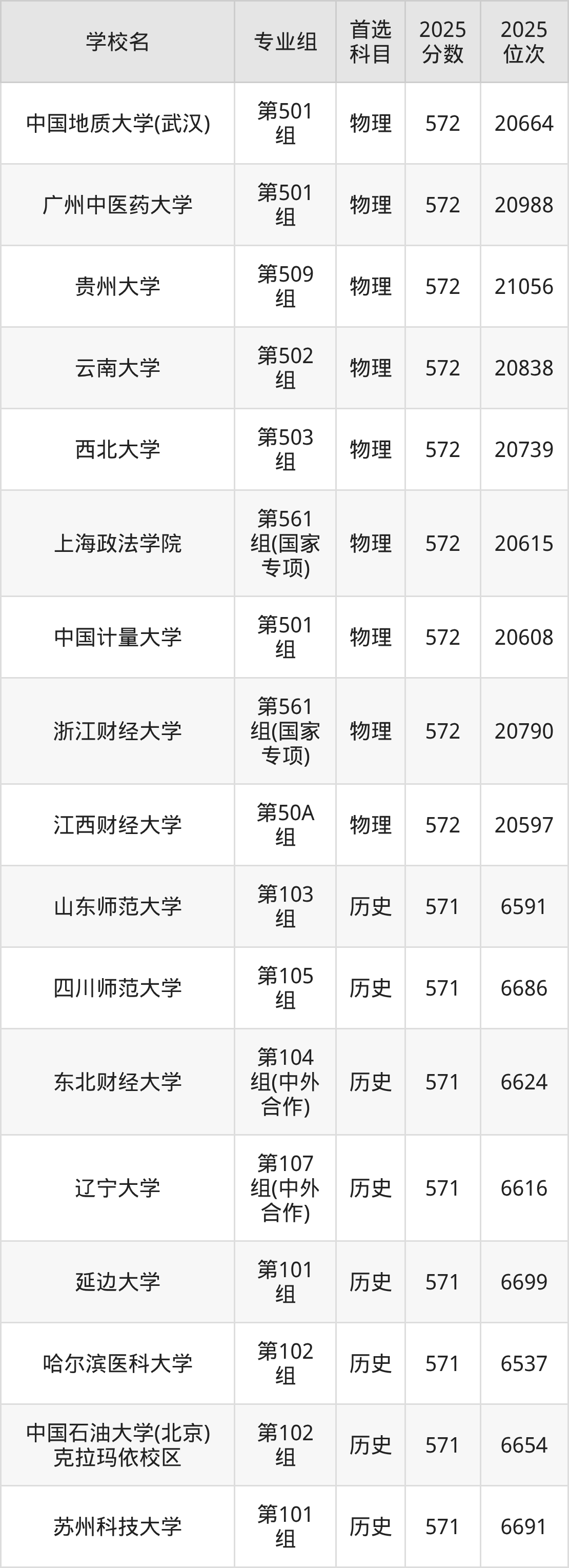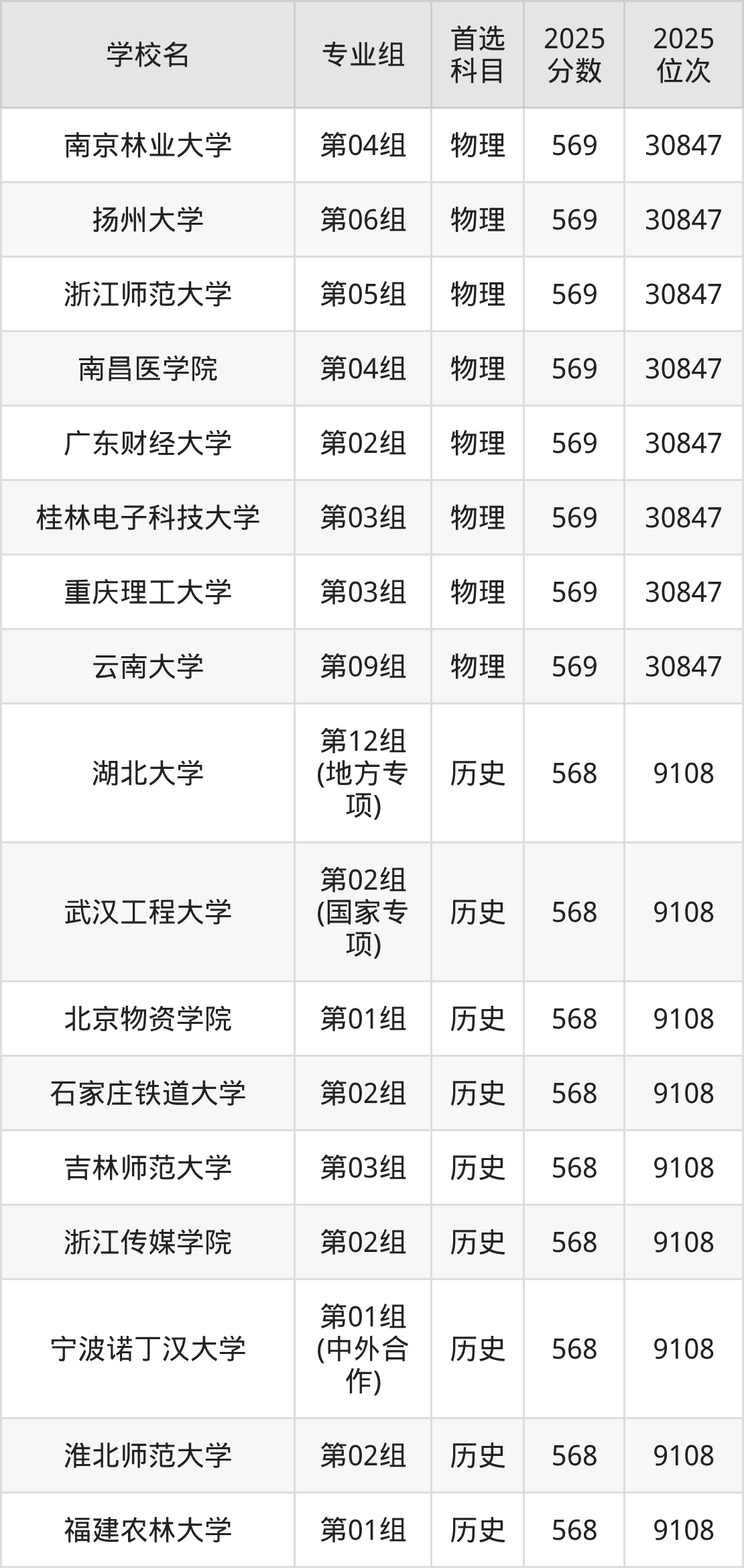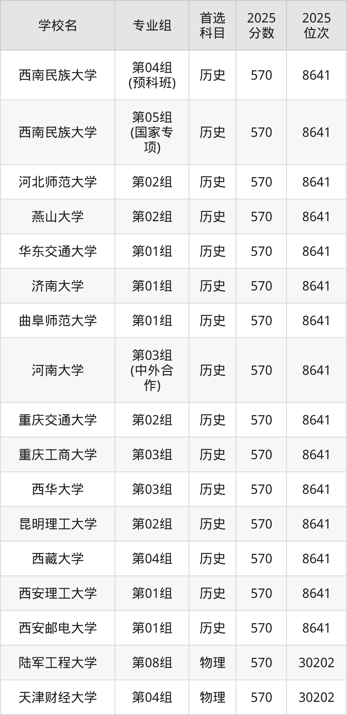 江西高考历史类570分对应的位次排名是6733名-6938名,物理类570分对应的位次排名是21665名-22173名,因此建议2026年位次排在这附近的同学考虑这些大学。