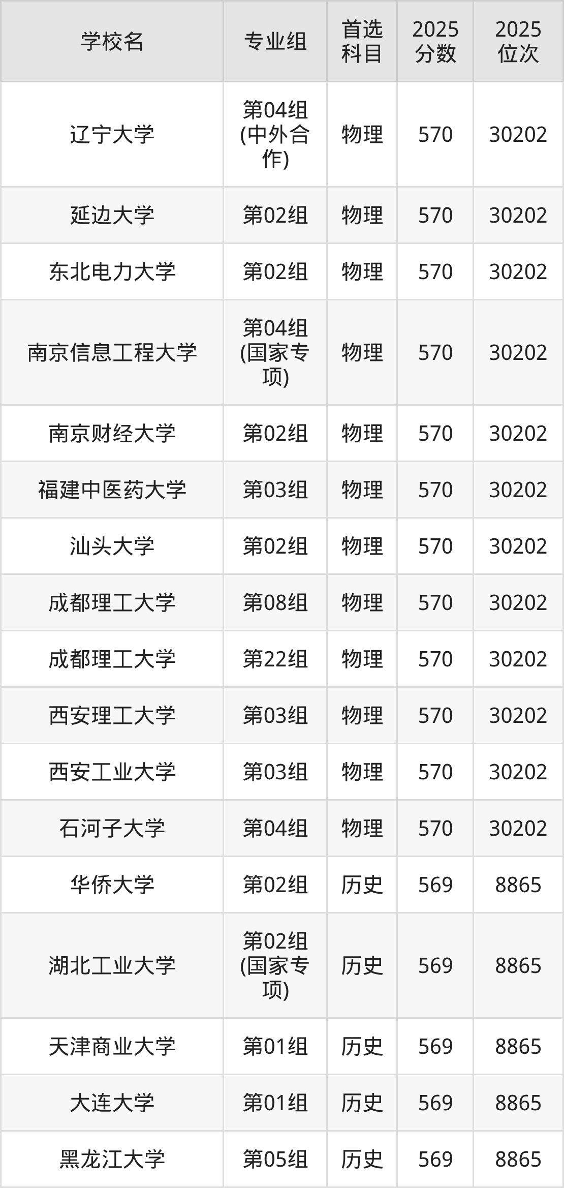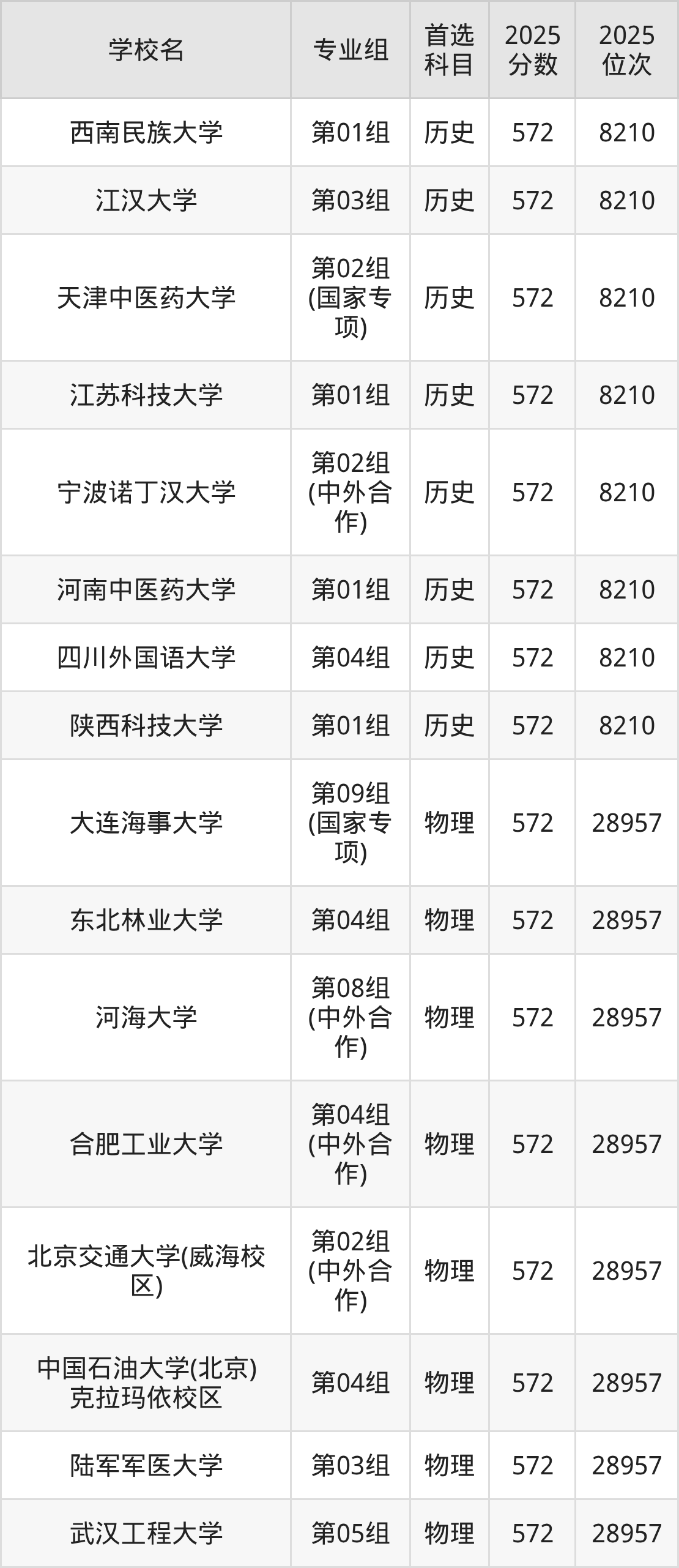 历史类570分可以冲的大学:西南民族大学572分、江汉大学572分、天津中医药大学572分、江苏科技大学572分等;较稳妥的大学:华侨大学569分、湖北工业大学569分、天津商业大学569分、大连大学569分等。