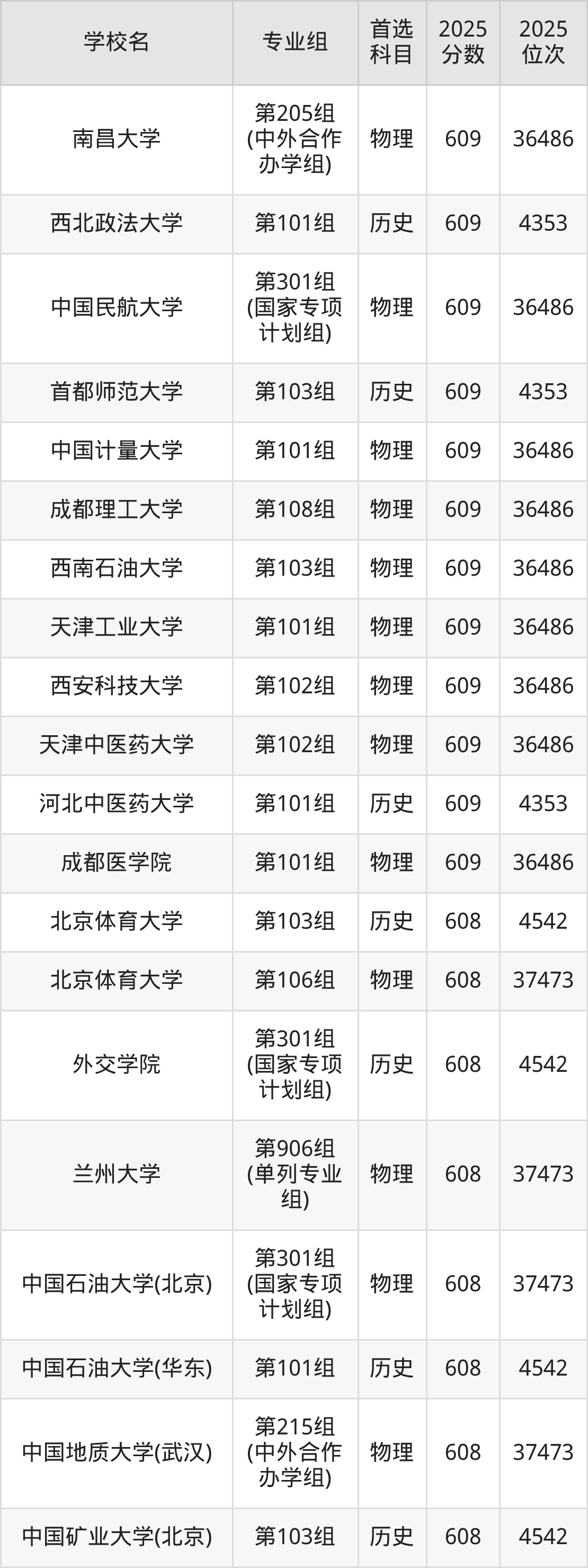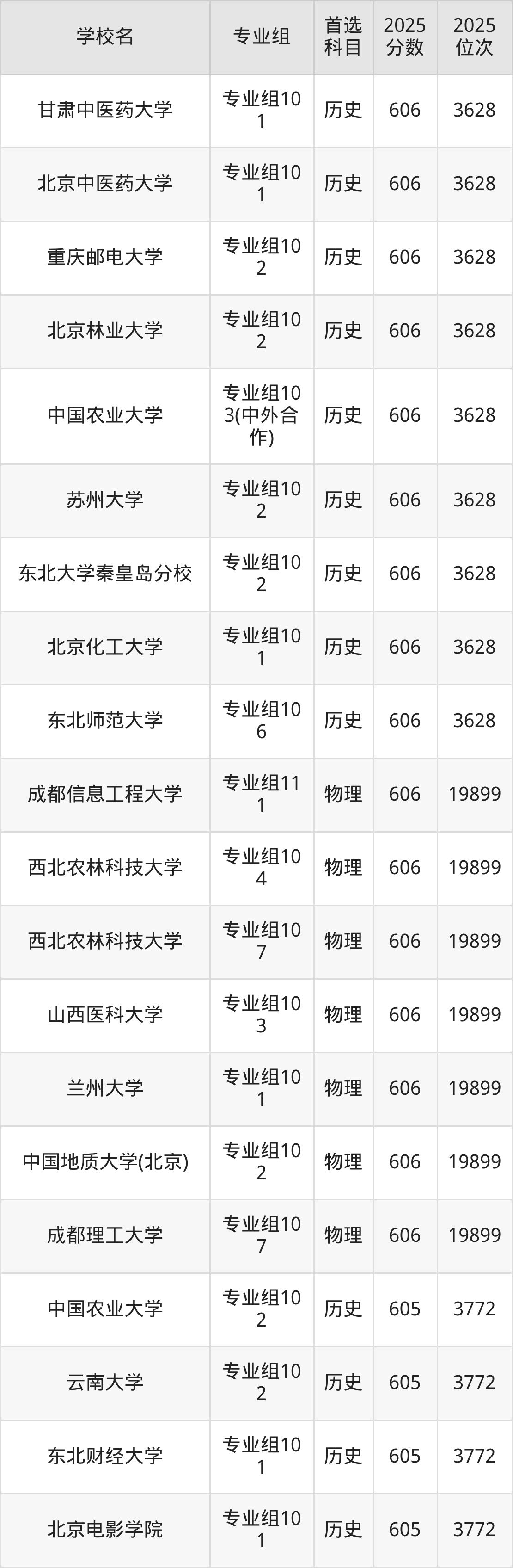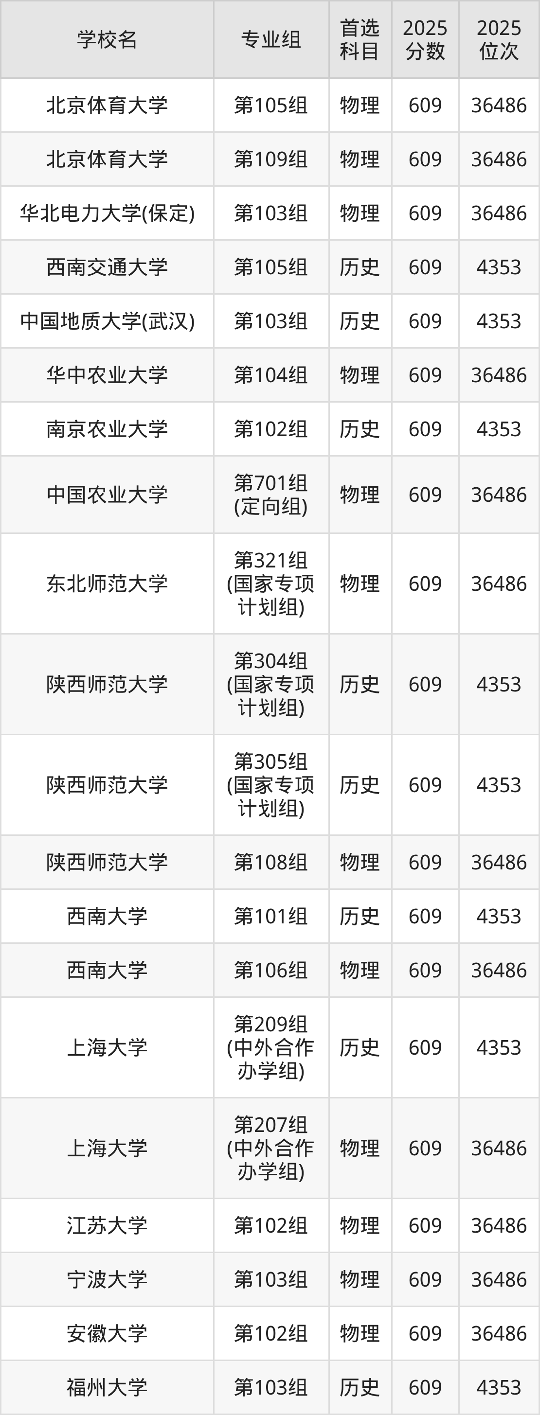 历史类607分可以冲的大学:西南交通大学609分、中国地质大学(武汉)609分、南京农业大学609分、陕西师范大学609分等;较稳妥的大学:大连海事大学606分、中国地质大学(武汉)606分、华中师范大学606分、西南大学(荣昌校区)606分等。