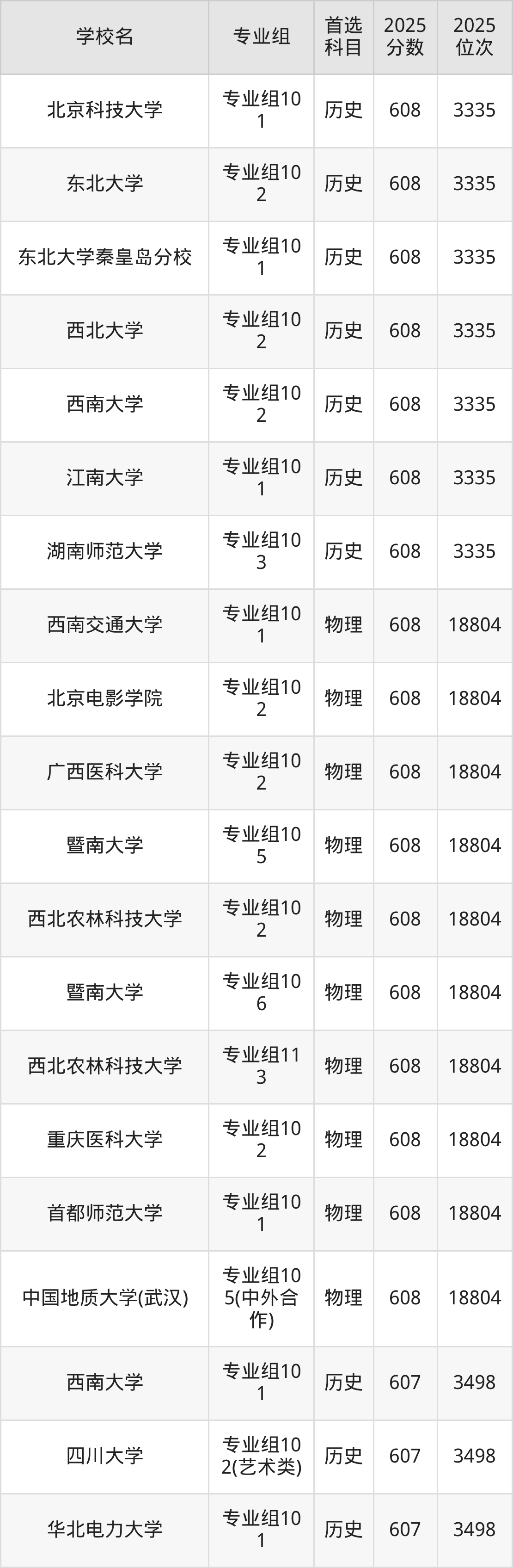 四川高考历史类607分对应的位次排名是3498名,物理类607分对应的位次排名是19363名,因此建议2026年位次排在这附近的同学考虑这些大学。