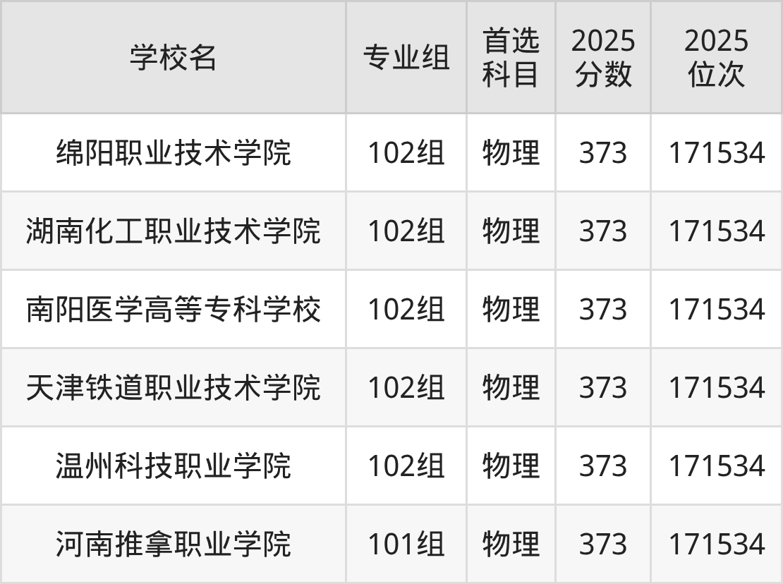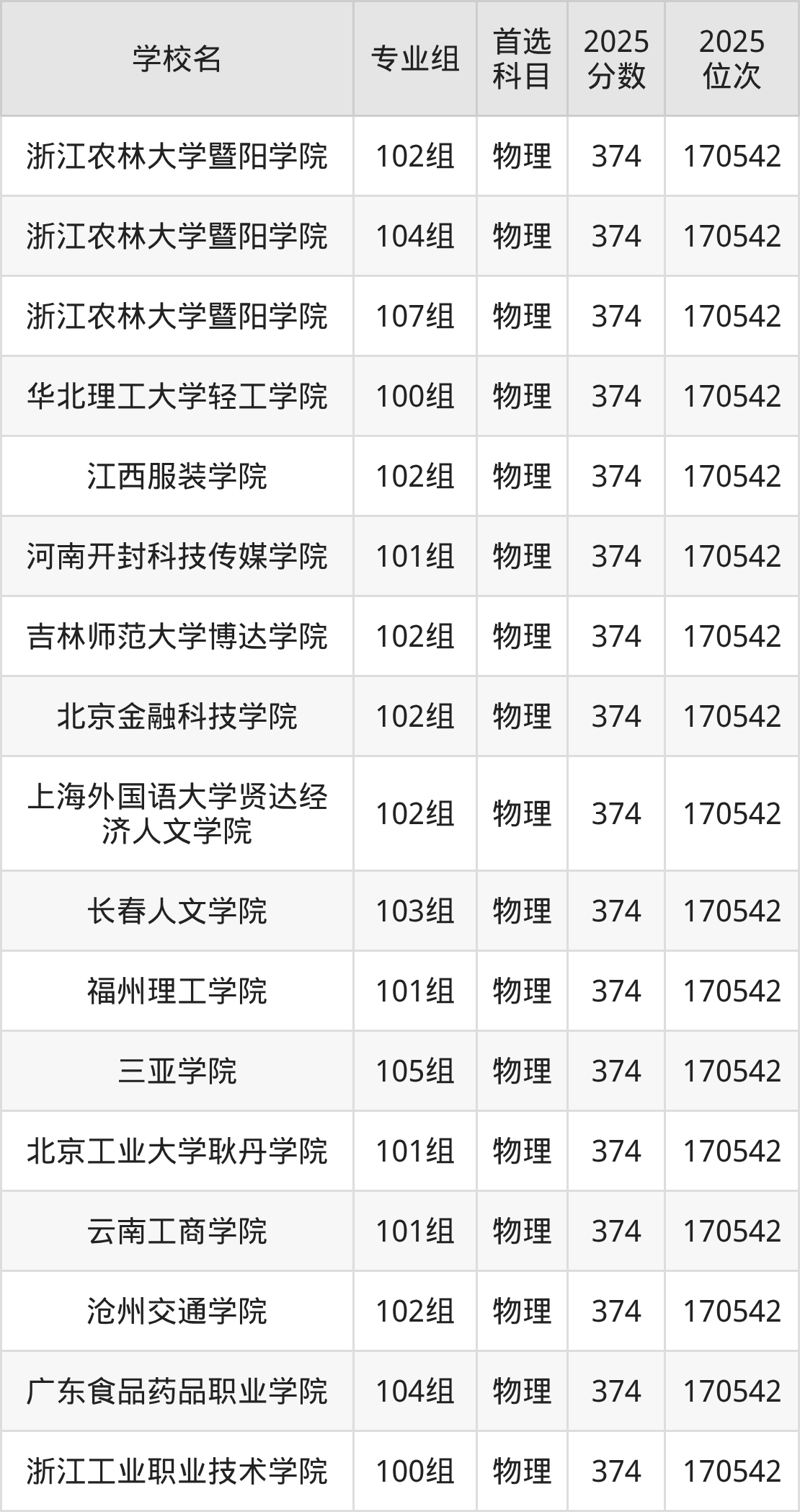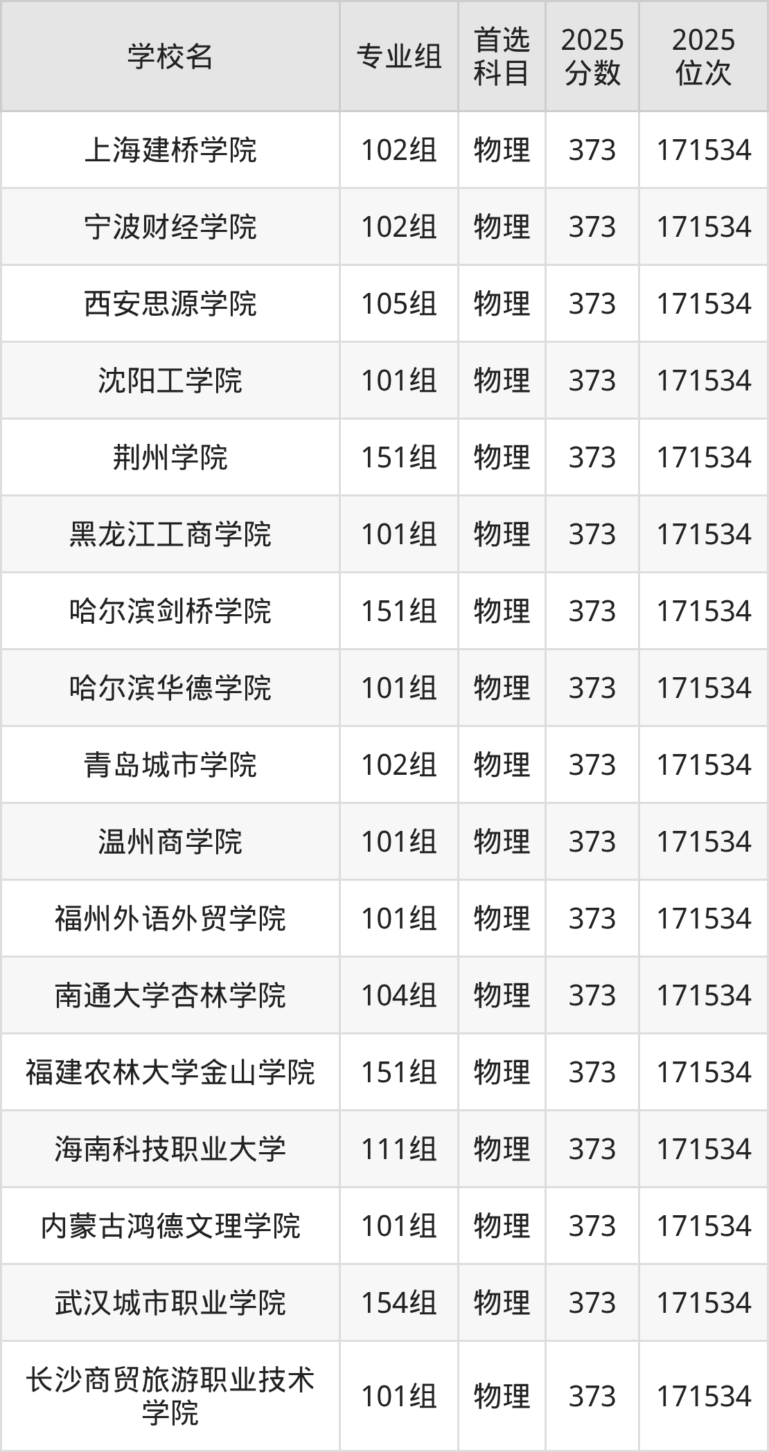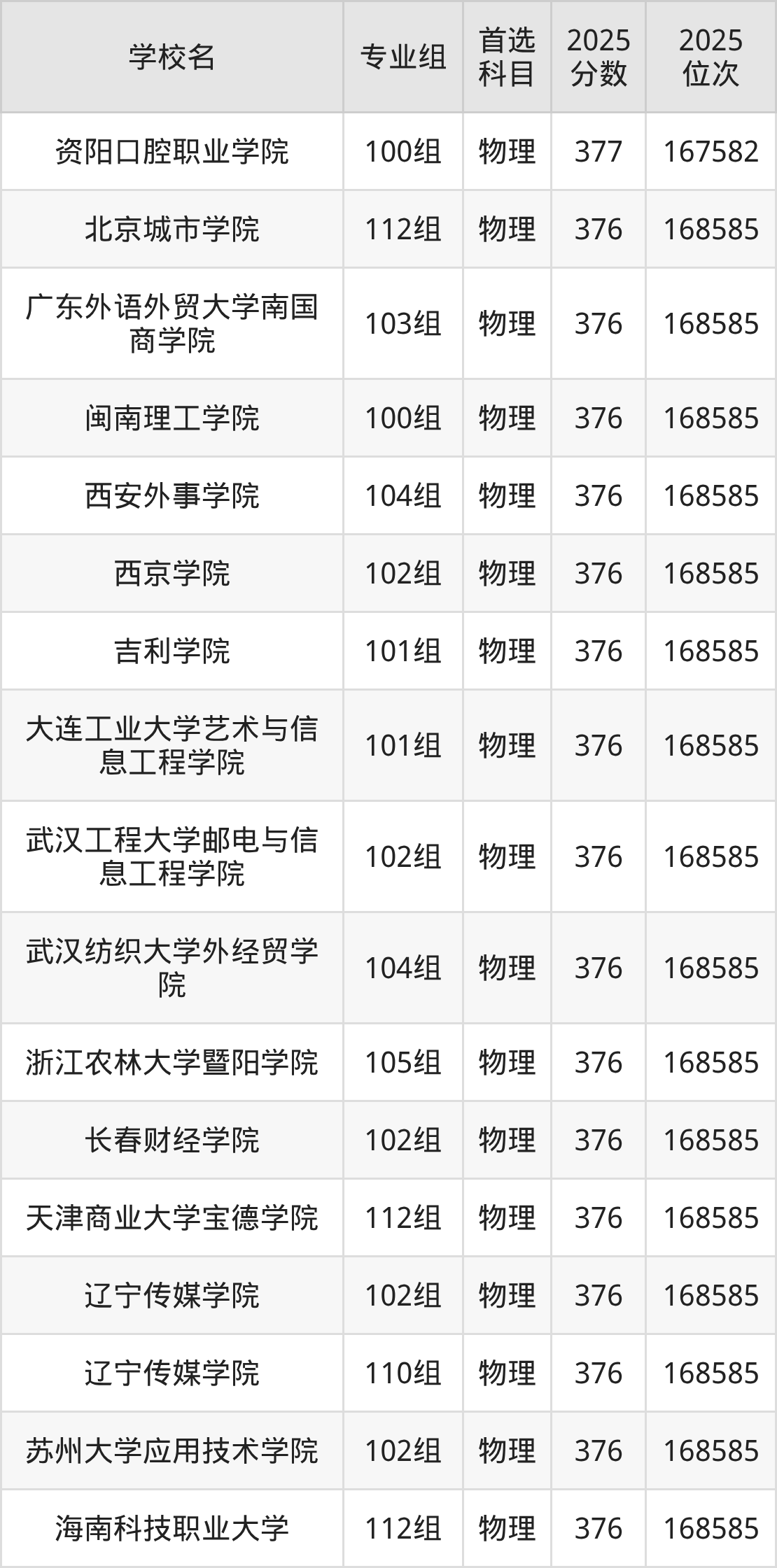 广西物理类375分对应的位次排名是169544名,因此建议2026年位次排在这附近的考生考虑这些大学。