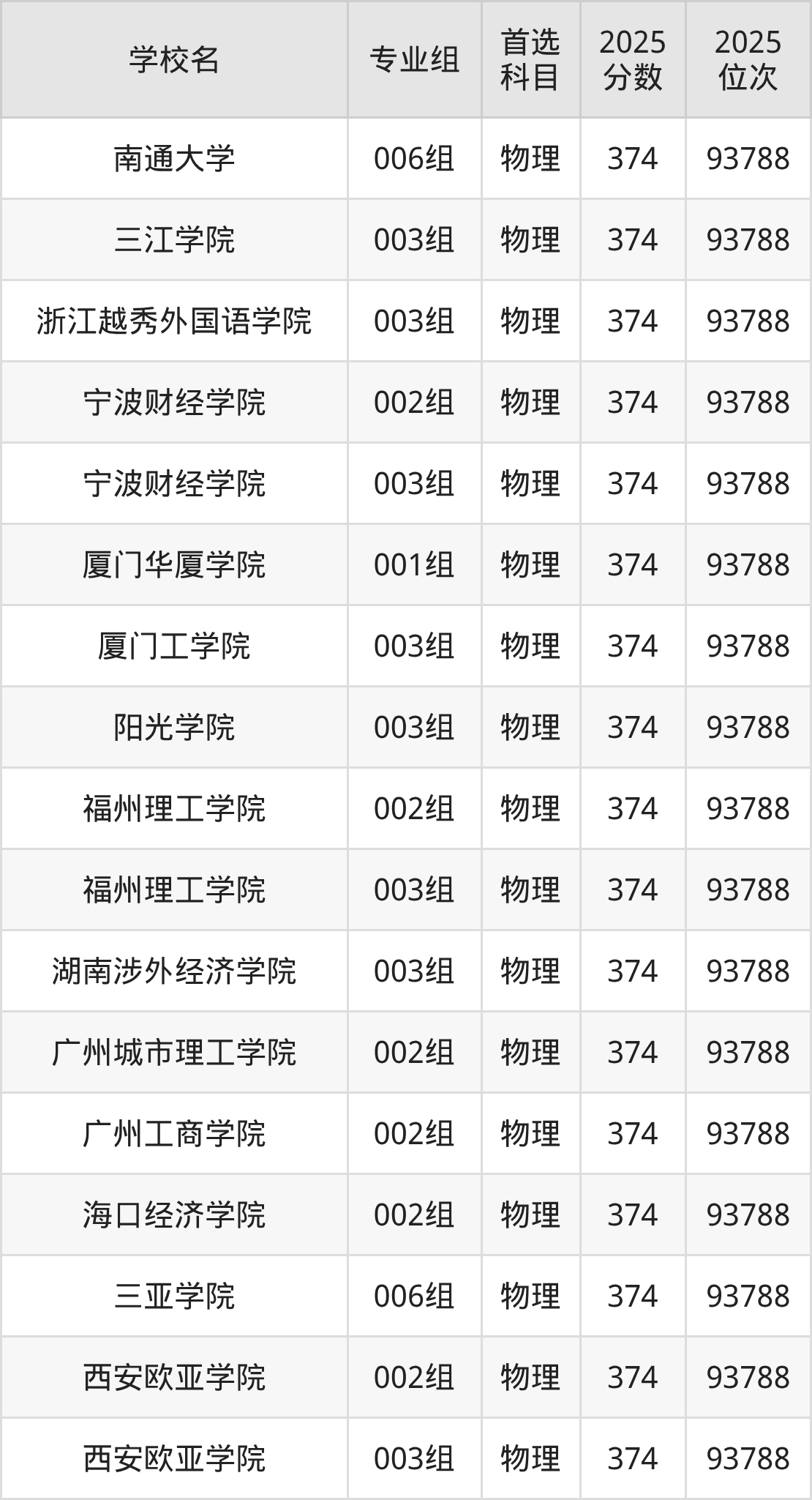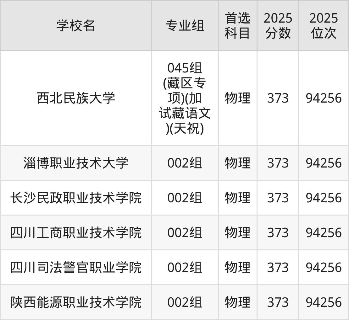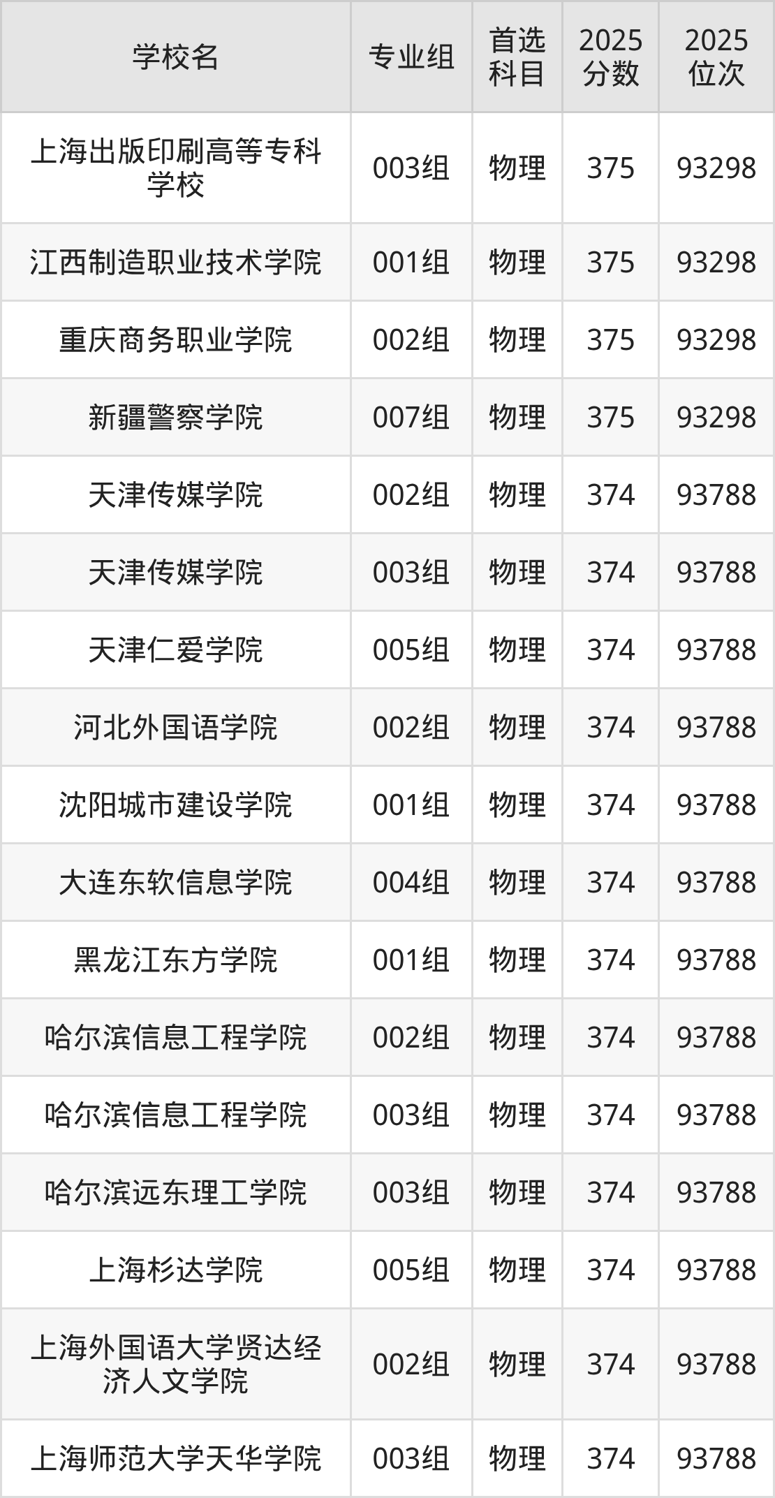 甘肃物理类375分对应的位次排名是93298名,因此建议2026年位次排在这附近的考生考虑这些大学。