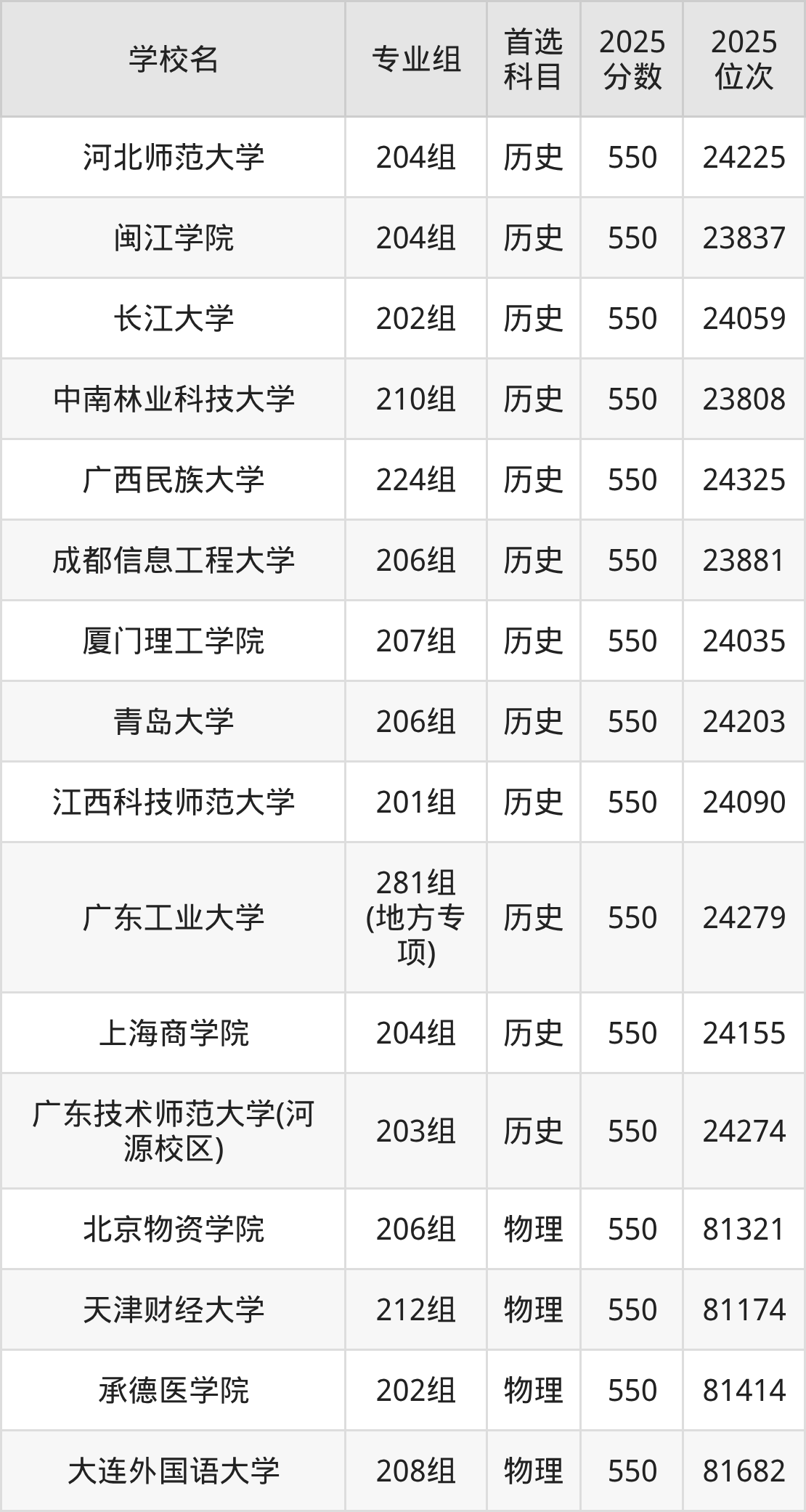 历史类548分可以冲的大学:河北师范大学550分、闽江学院550分、长江大学550分、中南林业科技大学550分等;较稳妥的大学:首都体育学院547分、天津商业大学547分、南昌航空大学547分、河南工业大学547分等。