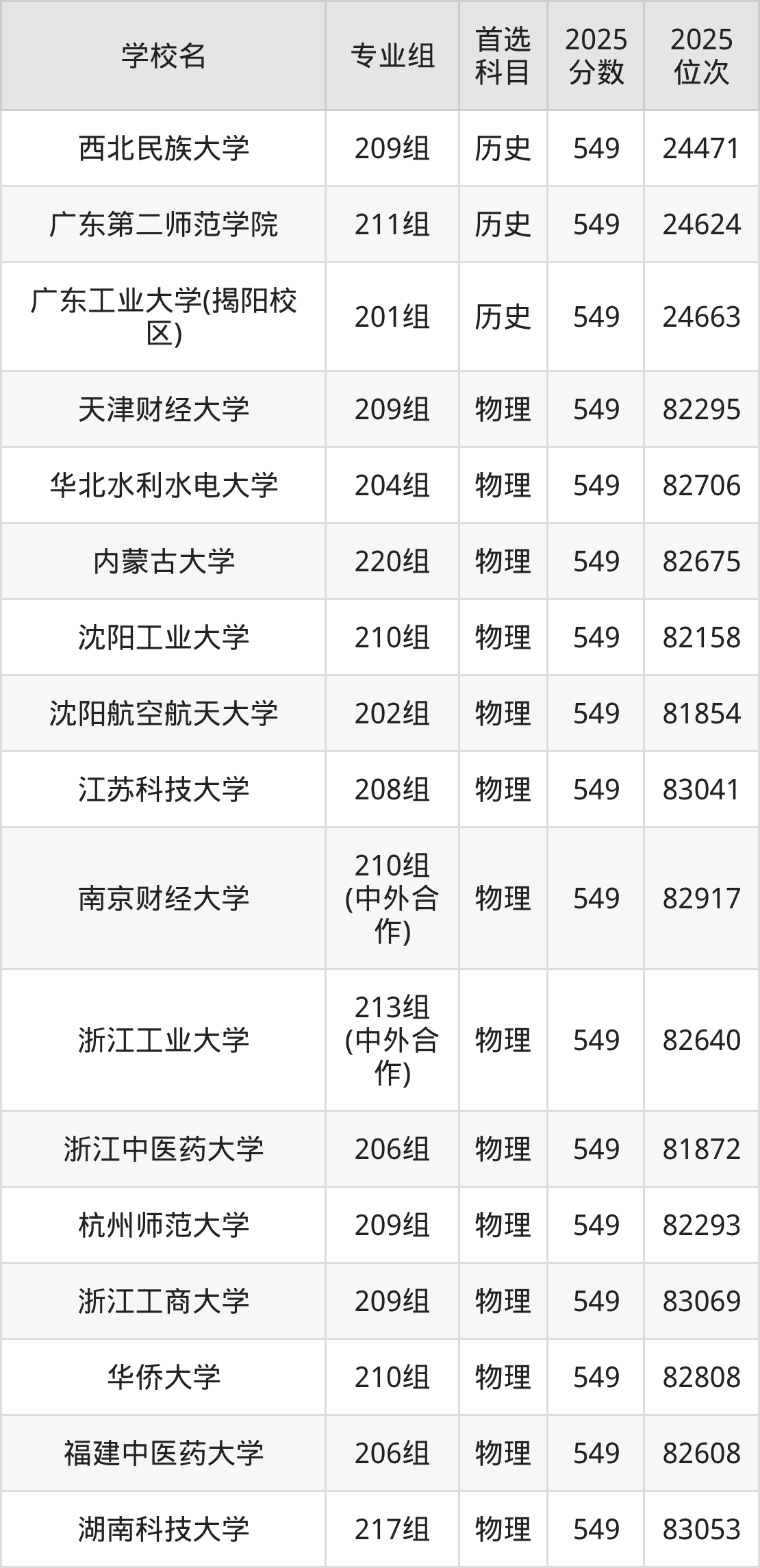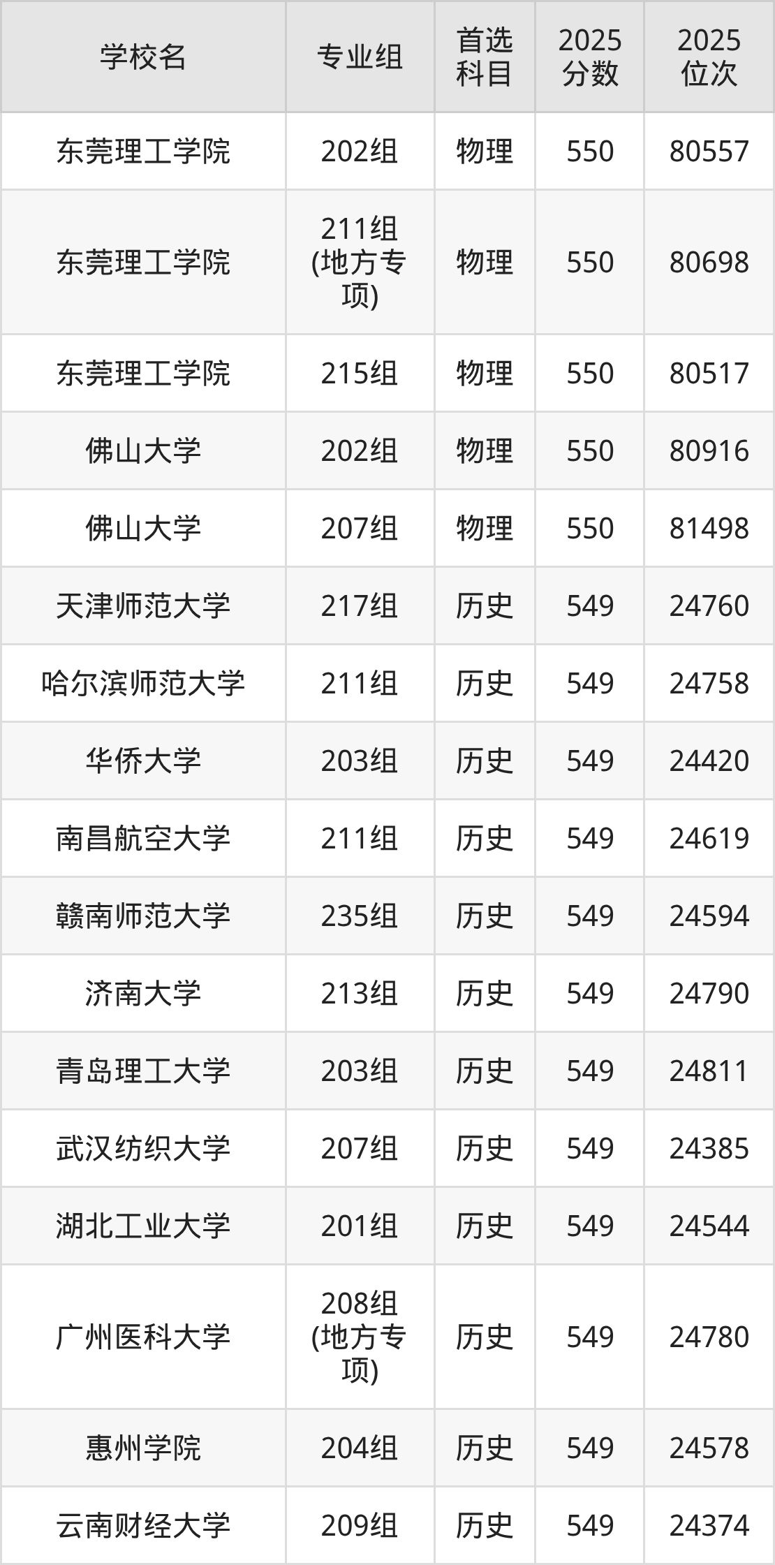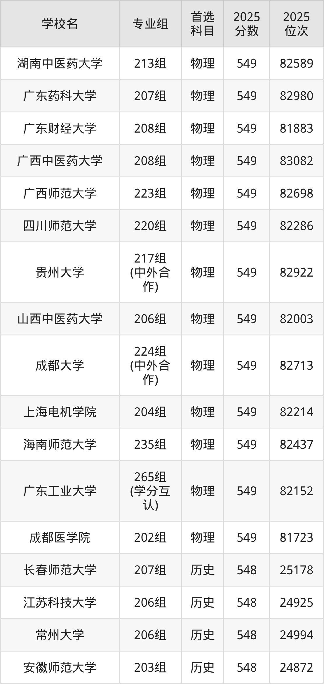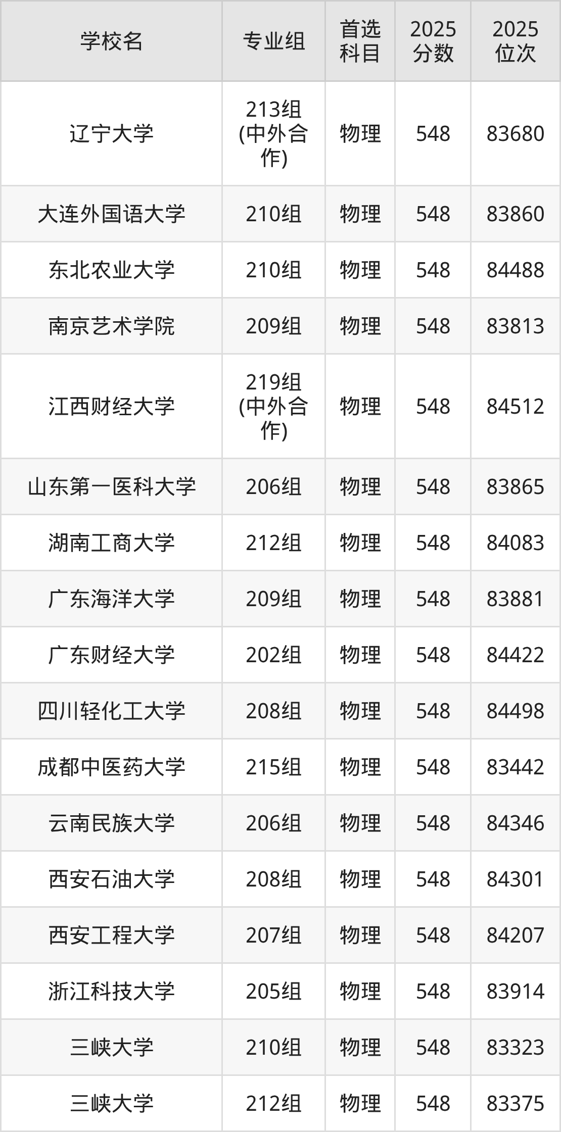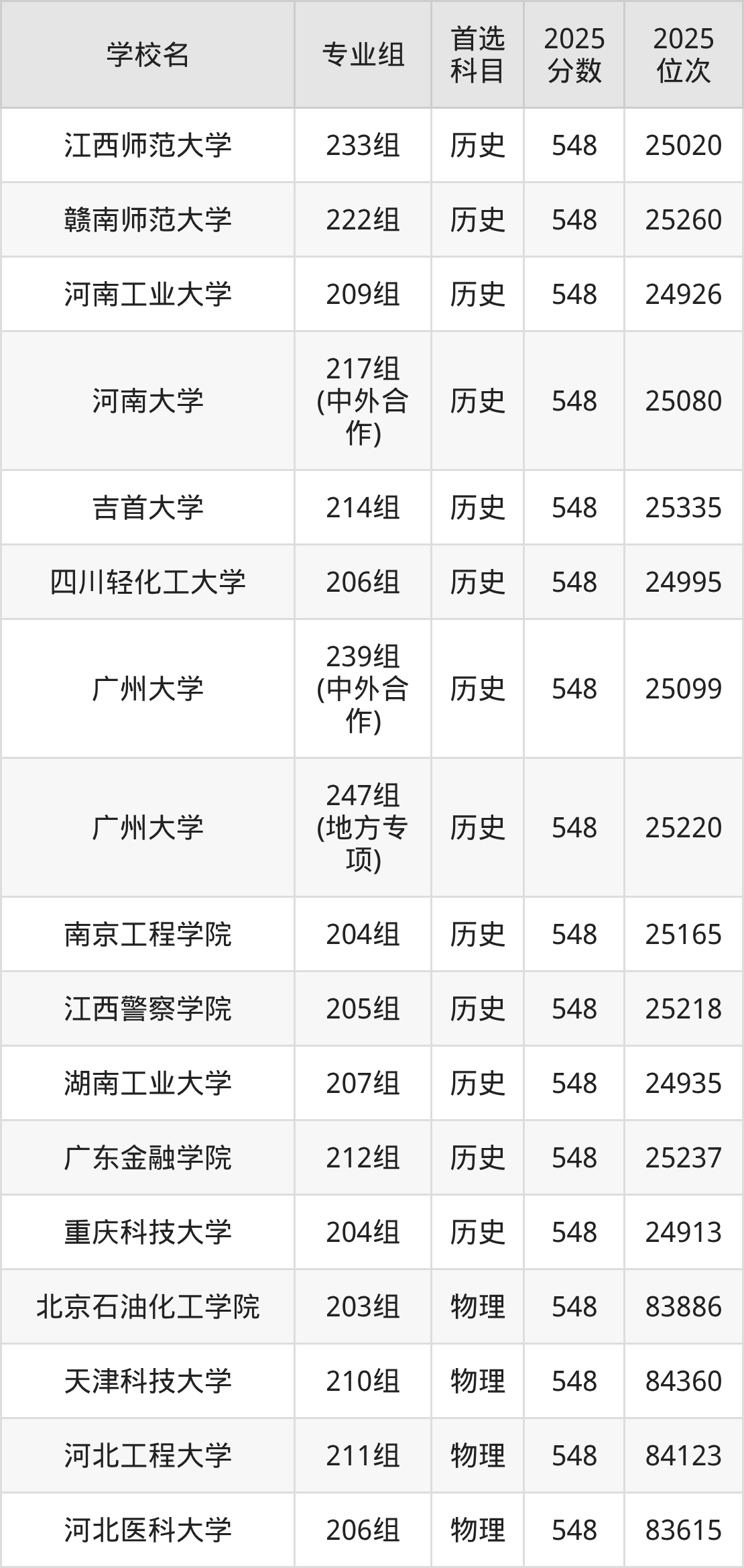 广东高考历史类548分对应的位次排名是24872名-25335名,物理类548分对应的位次排名是83323名-84512名,因此建议2026年位次排在这附近的同学考虑这些大学。