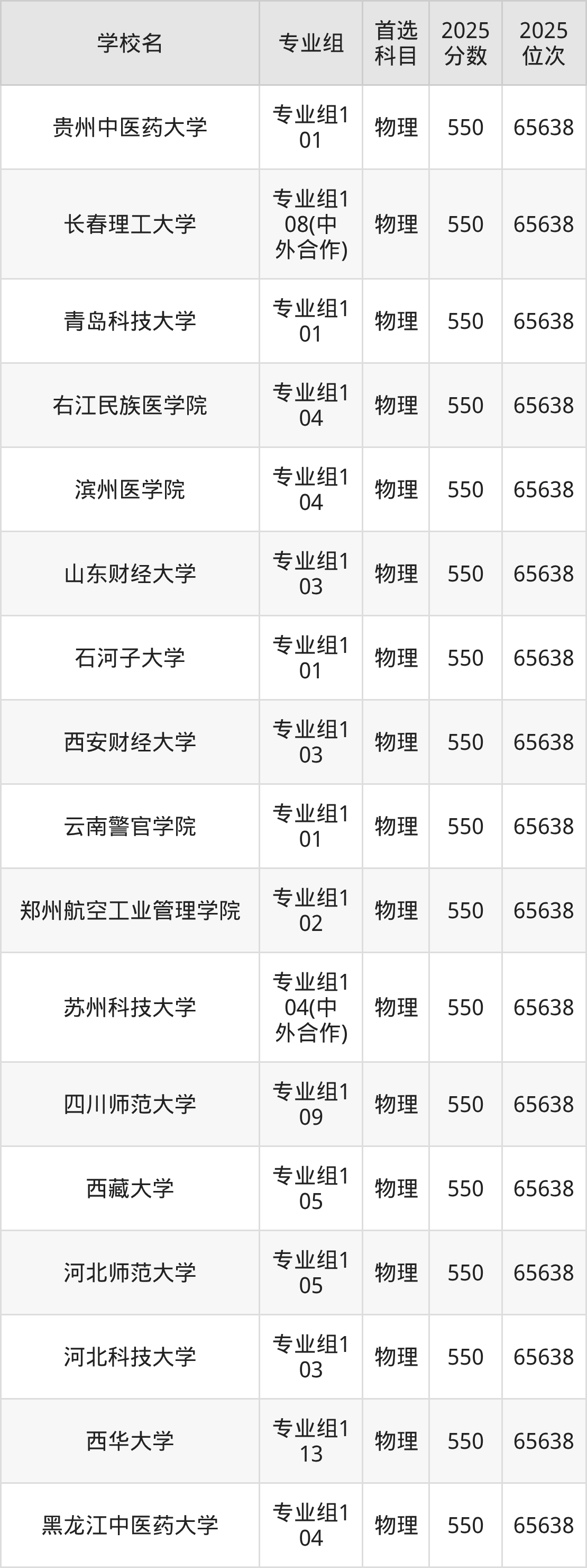 物理类548分可以冲的大学:西南民族大学550分、四川轻化工大学550分、广东外语外贸大学550分、重庆科技大学550分等;较稳妥的大学:遵义医科大学547分、哈尔滨理工大学547分、西安工程大学547分、天津师范大学547分等。
