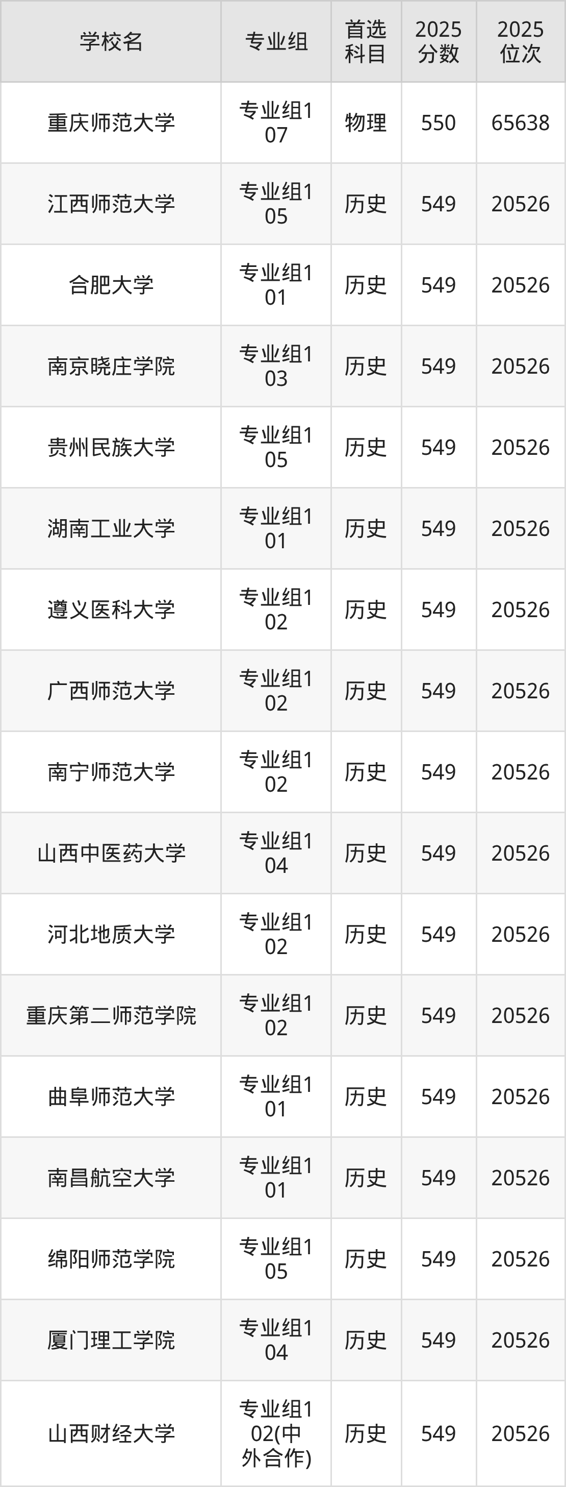 四川高考物理类548分对应的位次排名是67613名,历史类548分对应的位次排名是20967名,因此建议2026年位次排在这附近的同学考虑这些大学。
