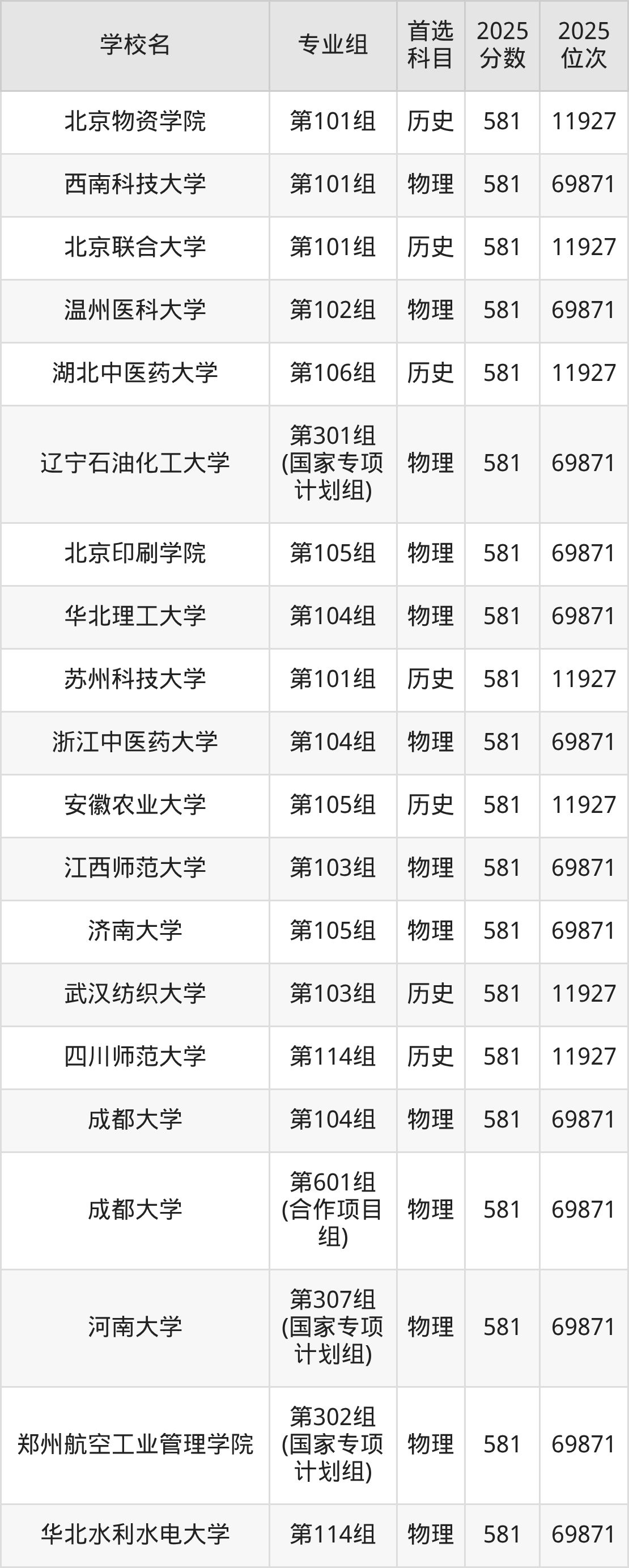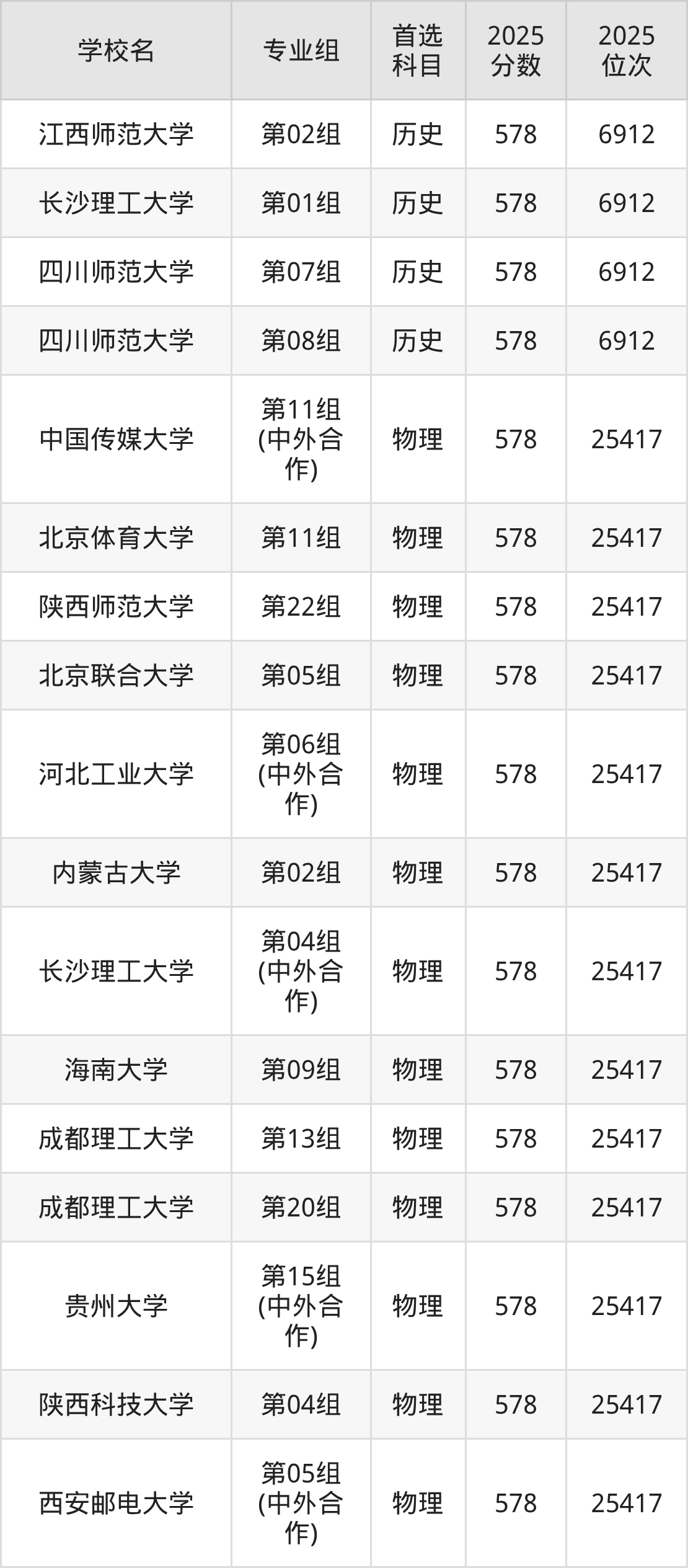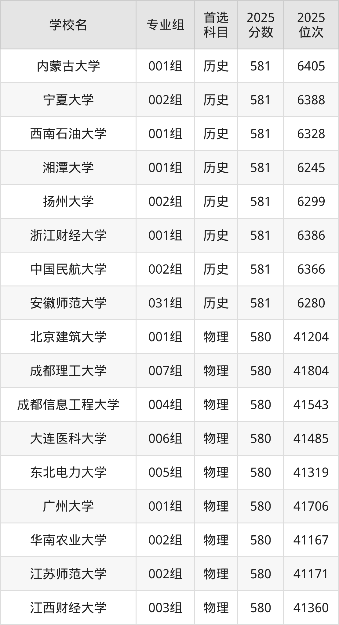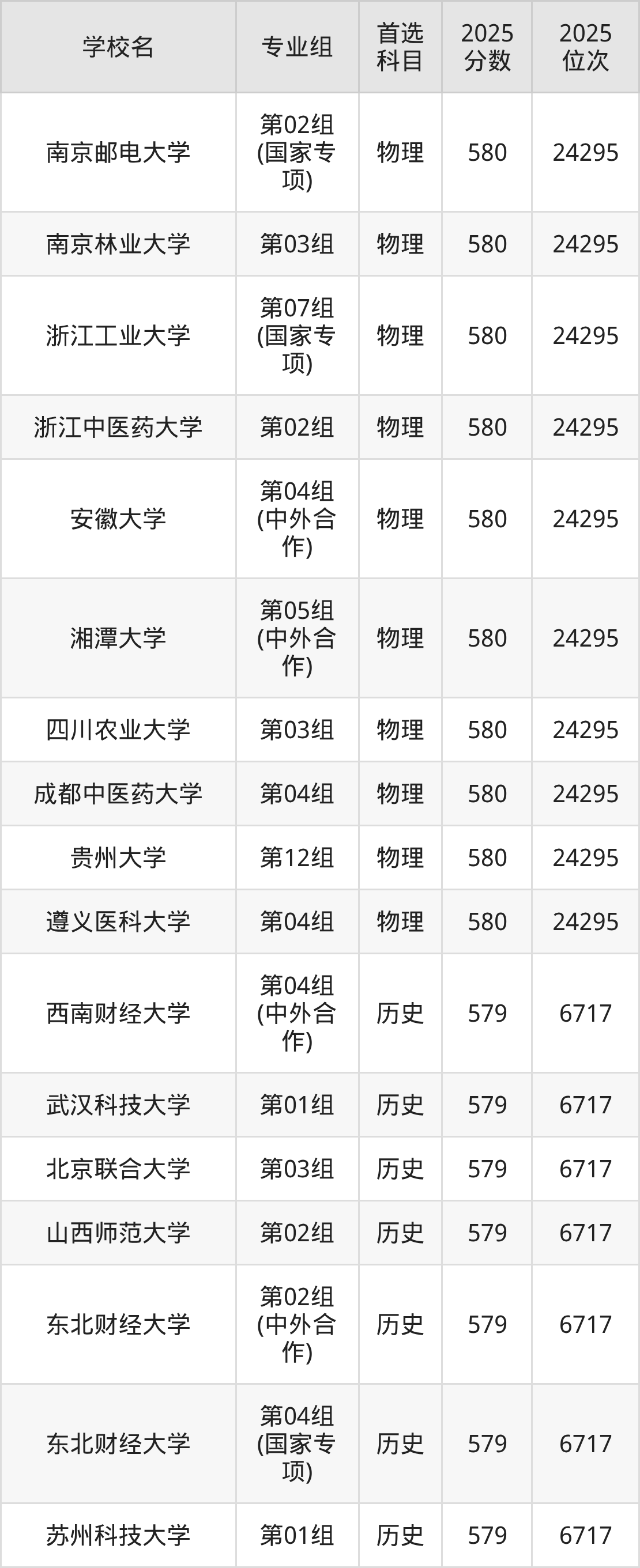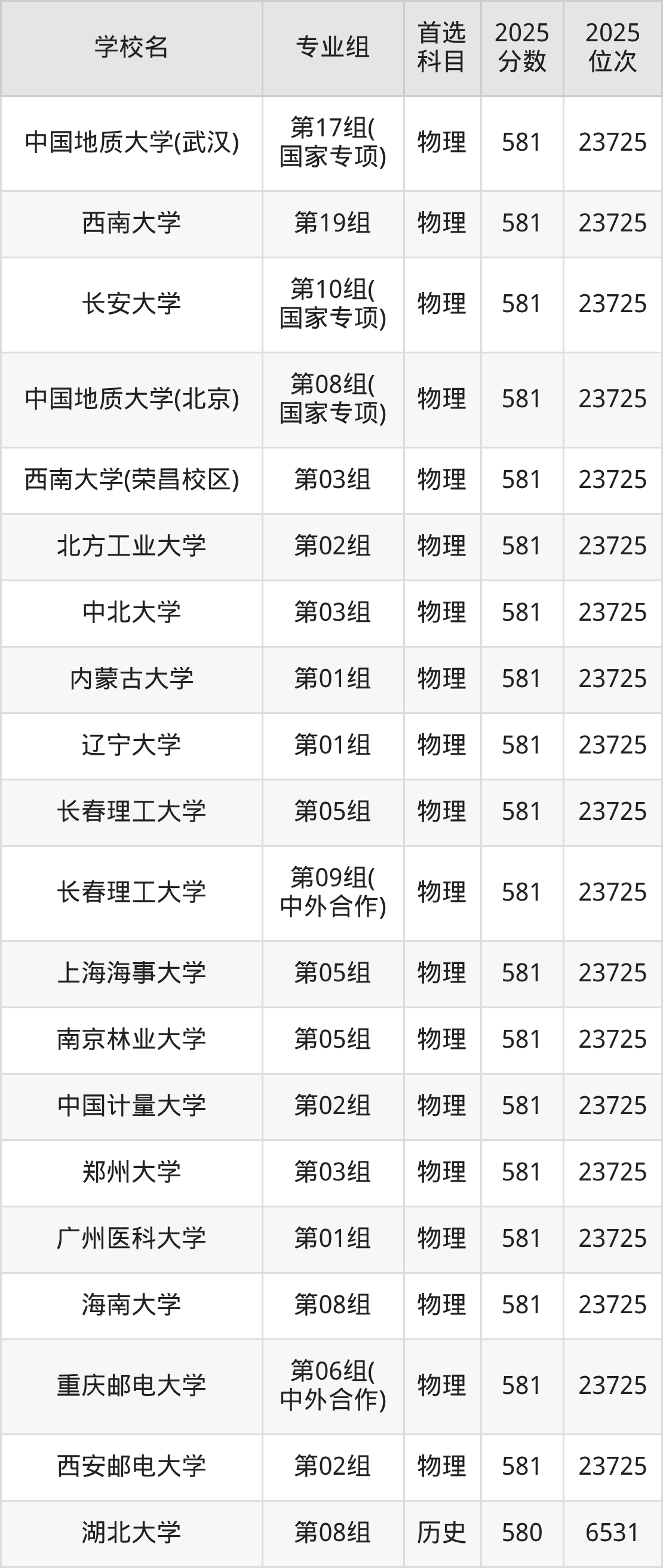 湖北高考历史类580分对应的位次排名是6531名,物理类580分对应的位次排名是24295名,因此建议2026年位次排在这附近的同学考虑这些大学。
