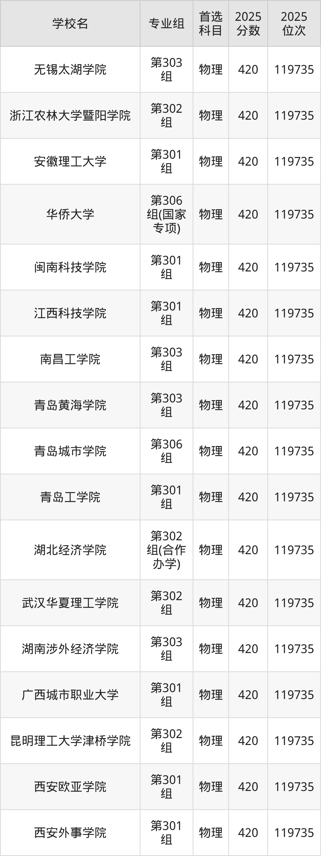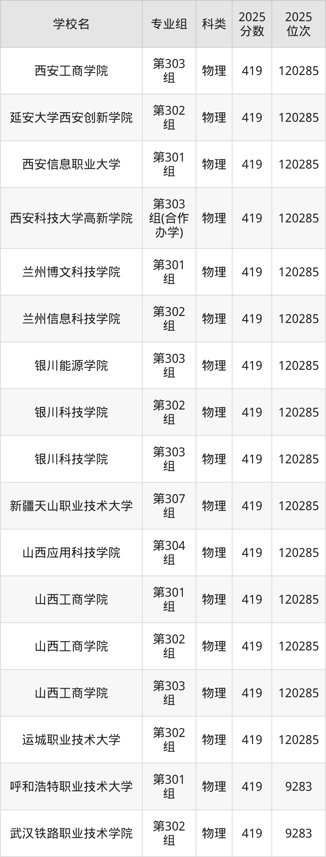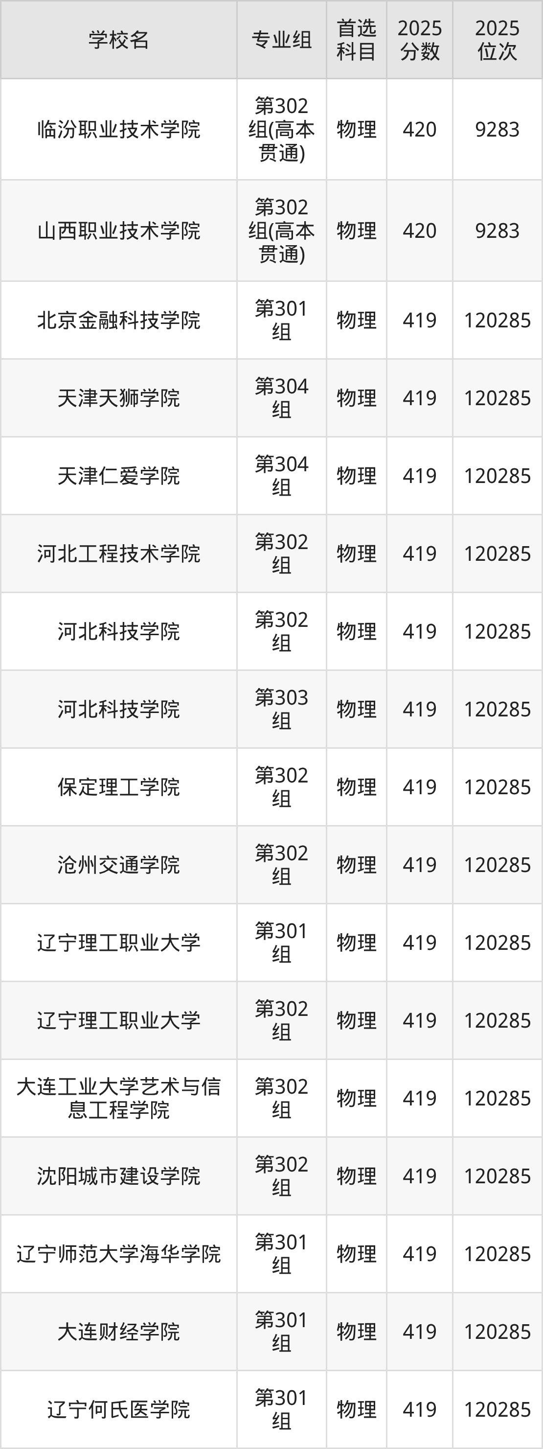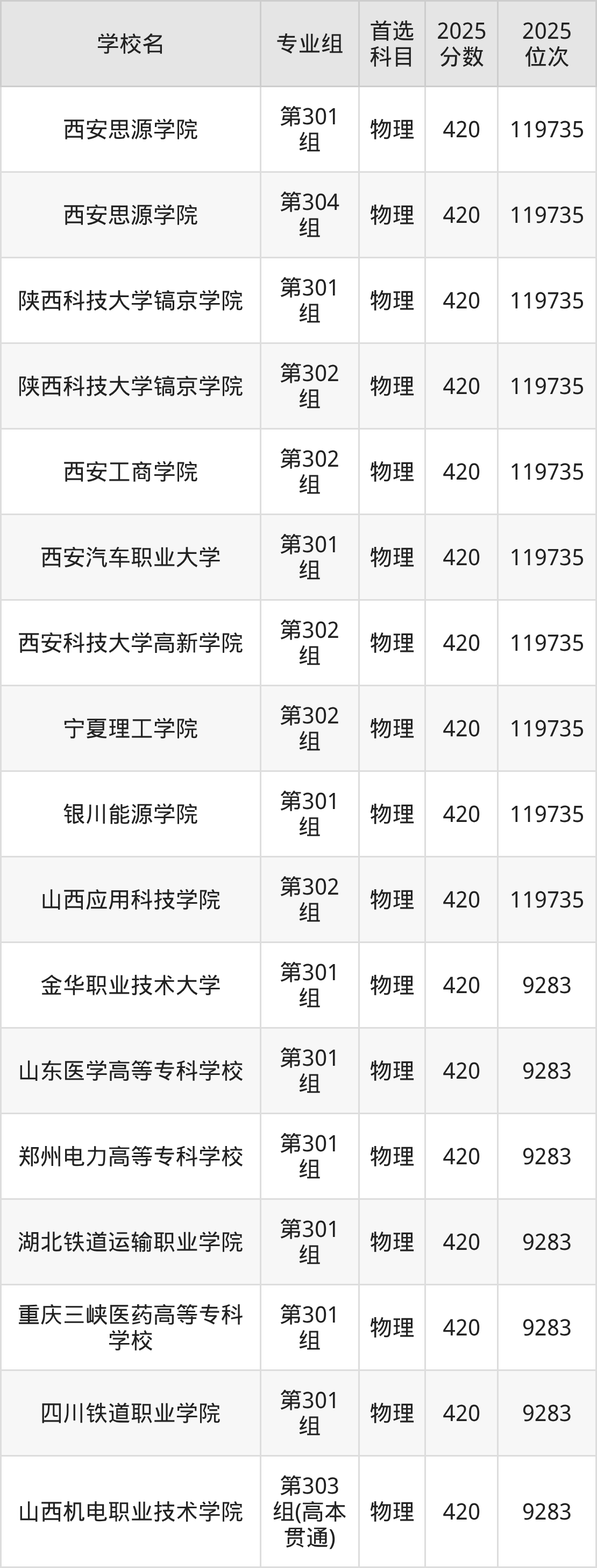 山西物理类421分对应的位次排名是9283名-119087名,因此建议2026年位次排在这附近的考生考虑这些大学。