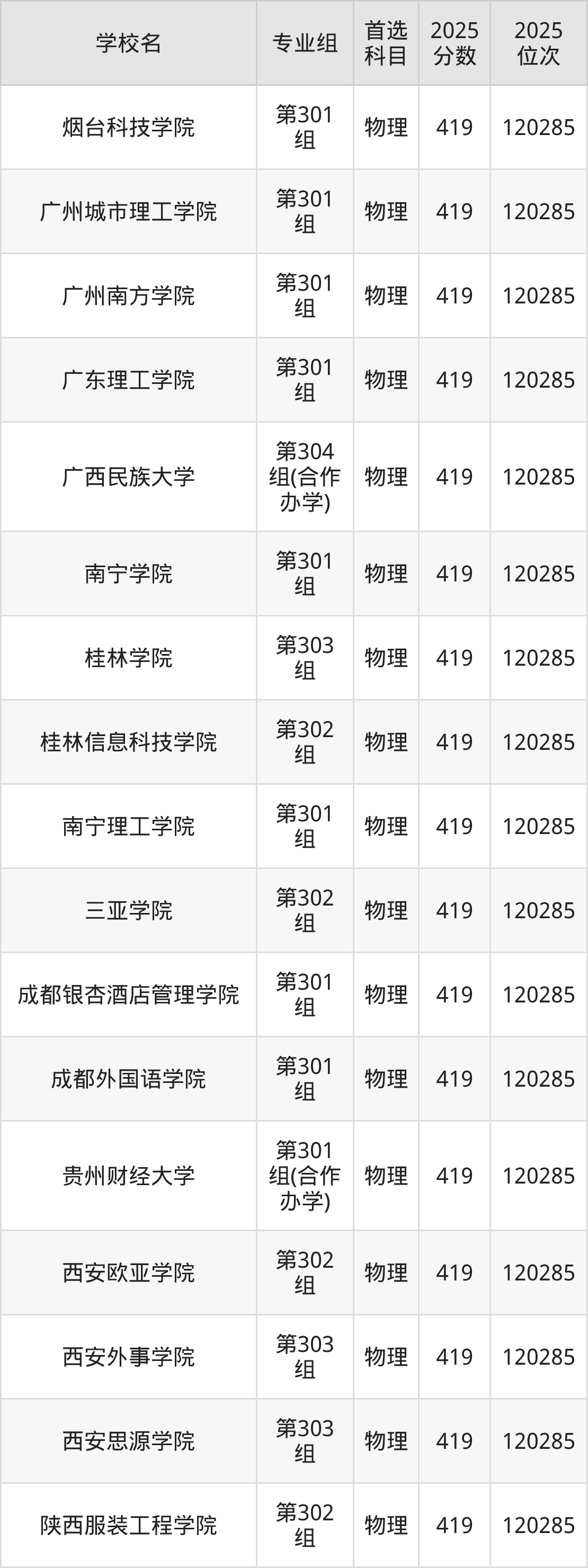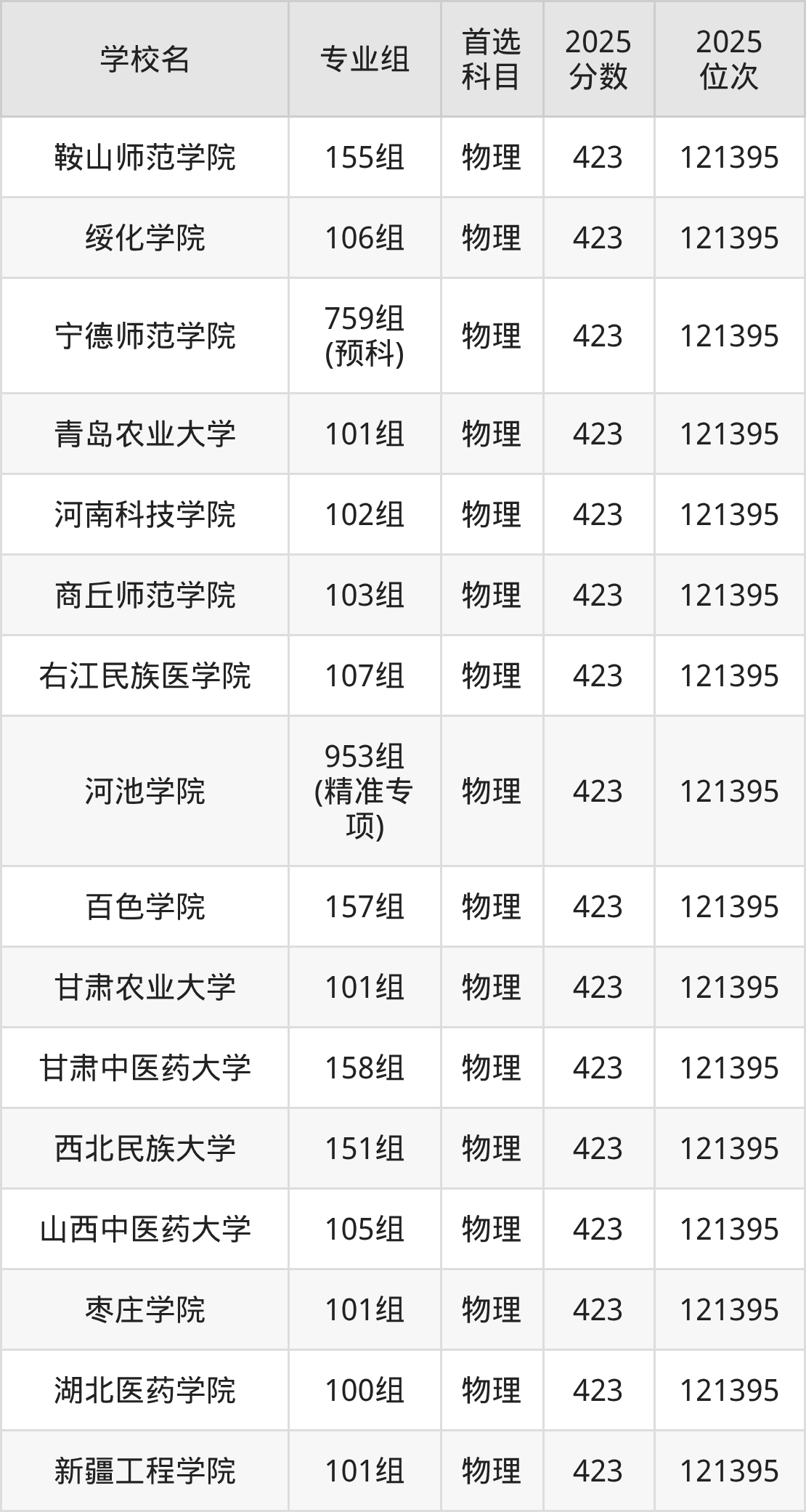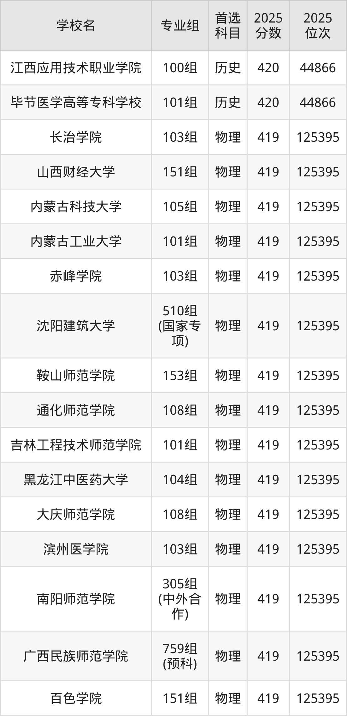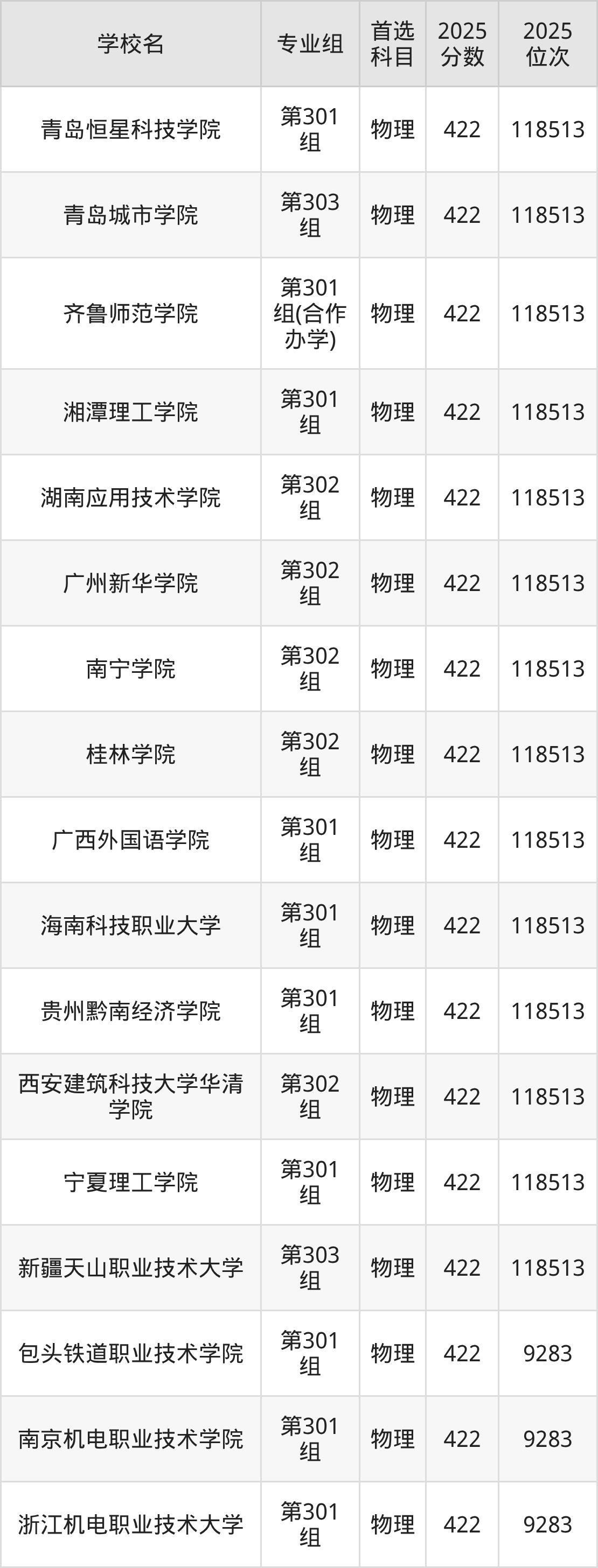 广西高考物理类421分对应的位次排名是123399名,历史类421分对应的位次排名是44434名,因此建议2026年位次排在这附近的同学考虑这些大学。