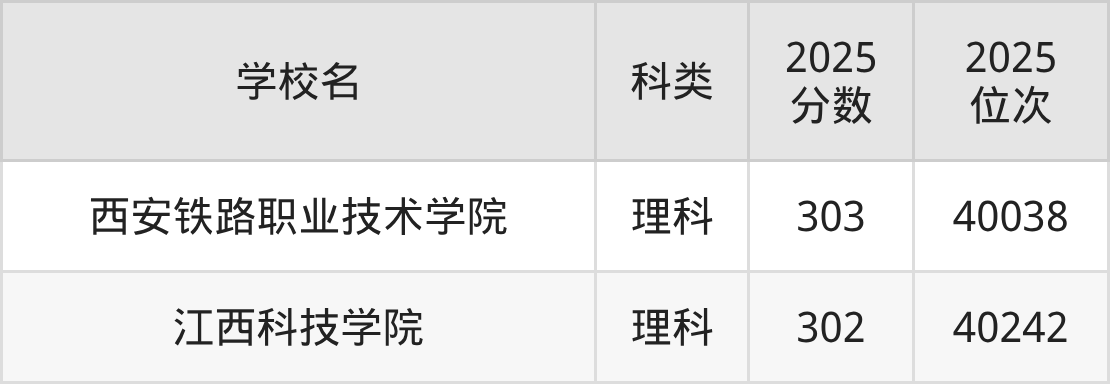 2025年在新疆高考录取分数线是304分的大学一共有7所,分别是西安电力高等专科学校、西京学院、江苏农牧科技职业学院、浙江金融职业学院、塔里木理工学院、北京第二外国语学院中瑞酒店管理学院、郑州科技学院。