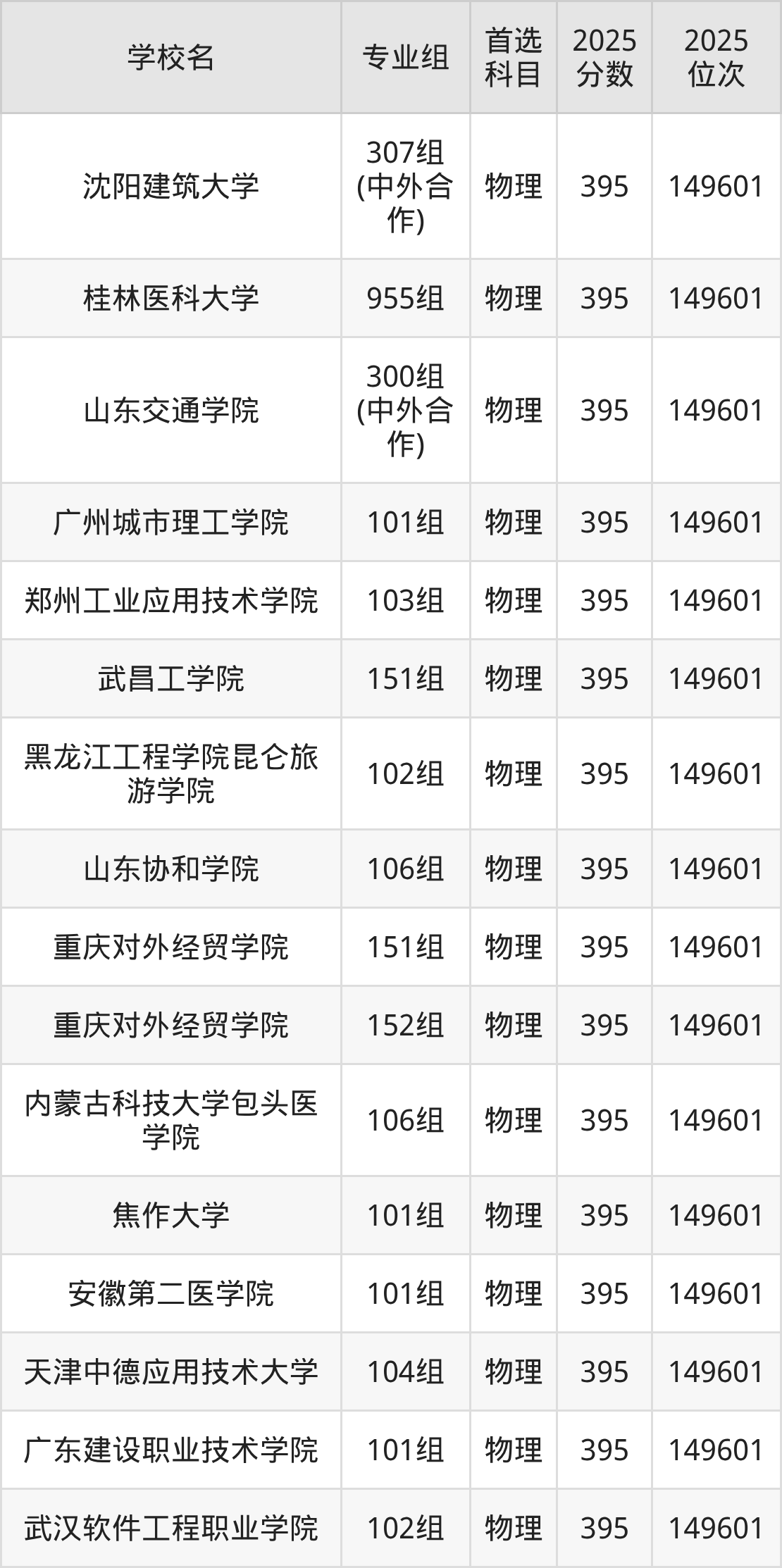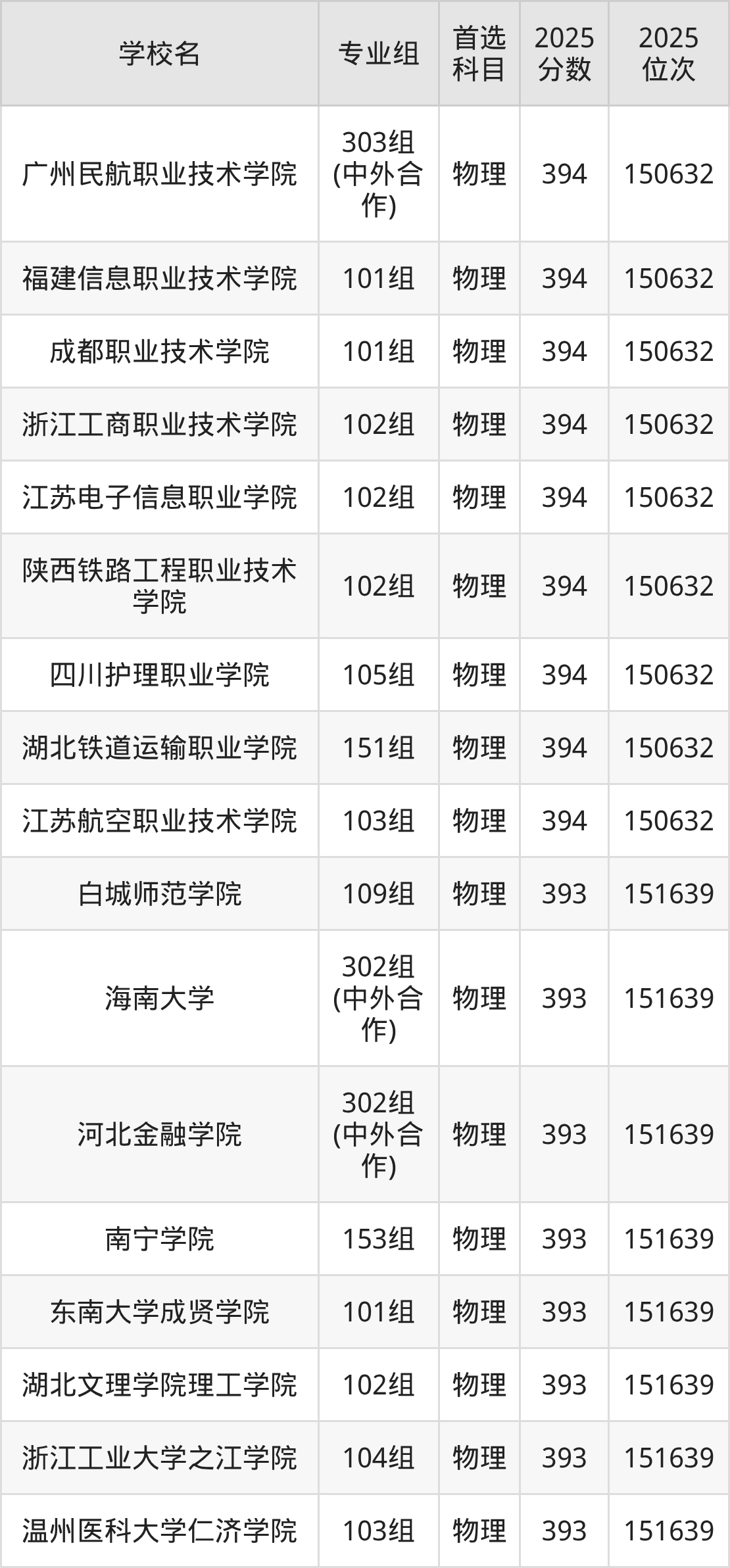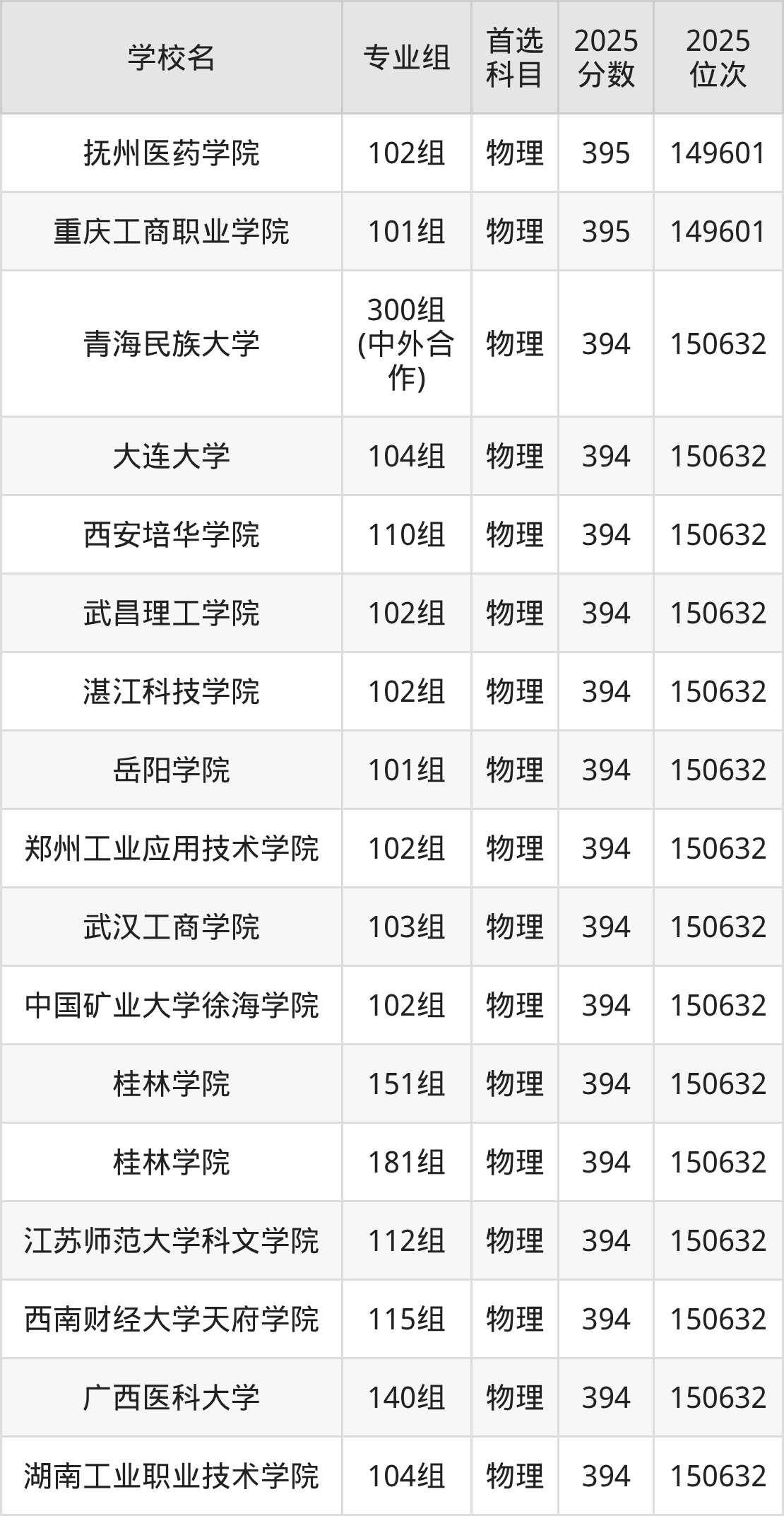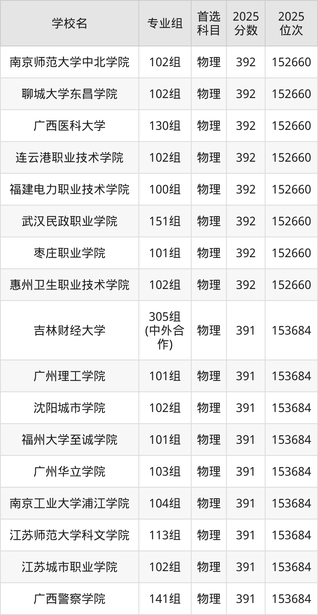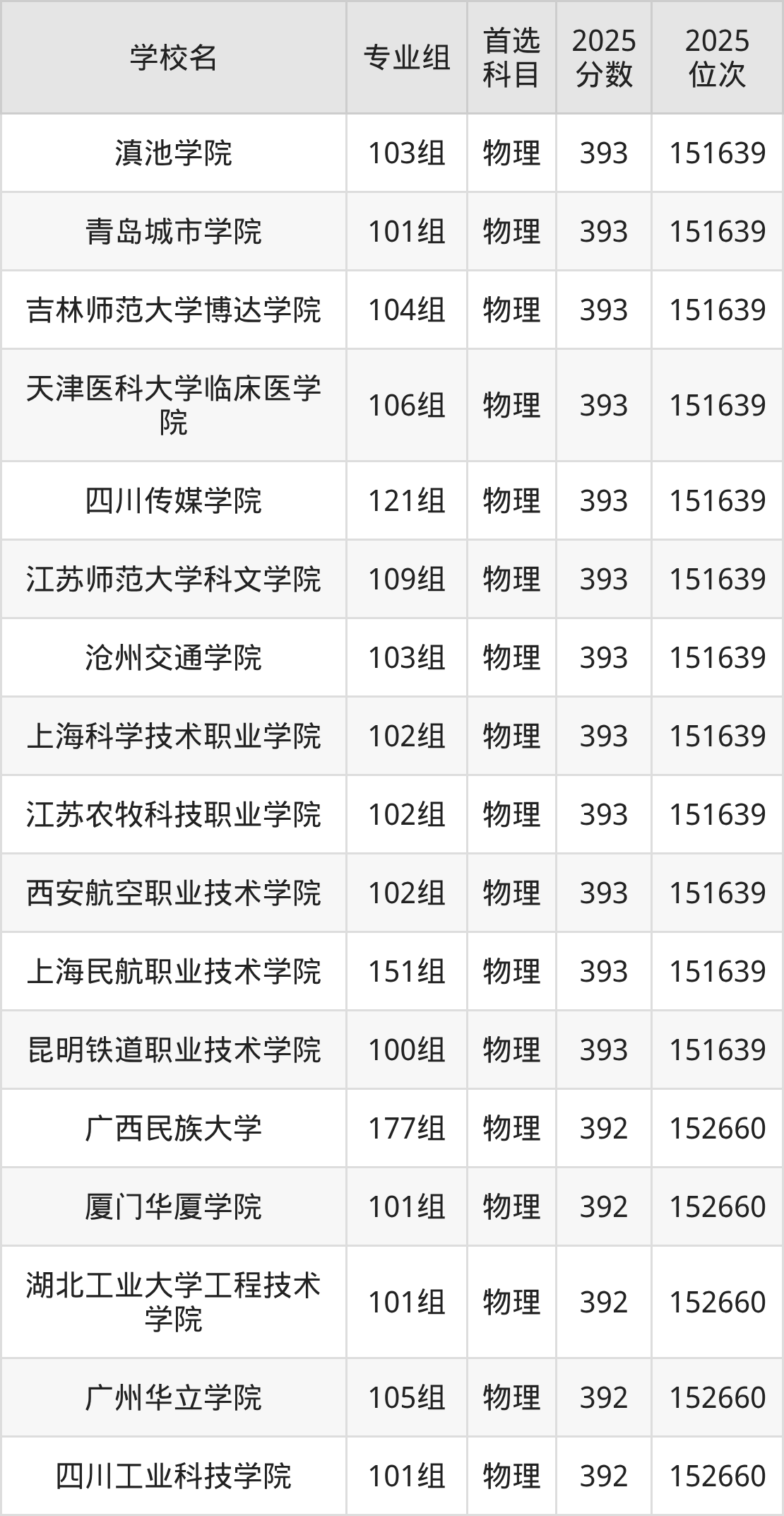广西物理类393分对应的位次排名是151639名,因此建议2026年位次排在这附近的考生考虑这些大学。