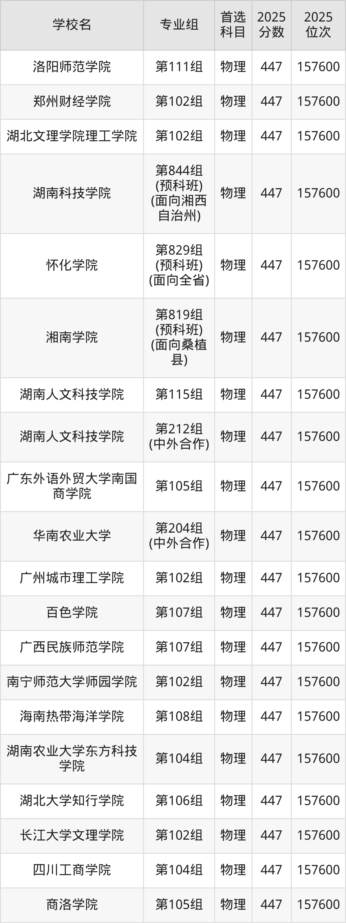 湖南高考历史类447分对应的位次排名是52545名,物理类447分对应的位次排名是157600名,因此建议2026年位次排在这附近的同学考虑这些大学。