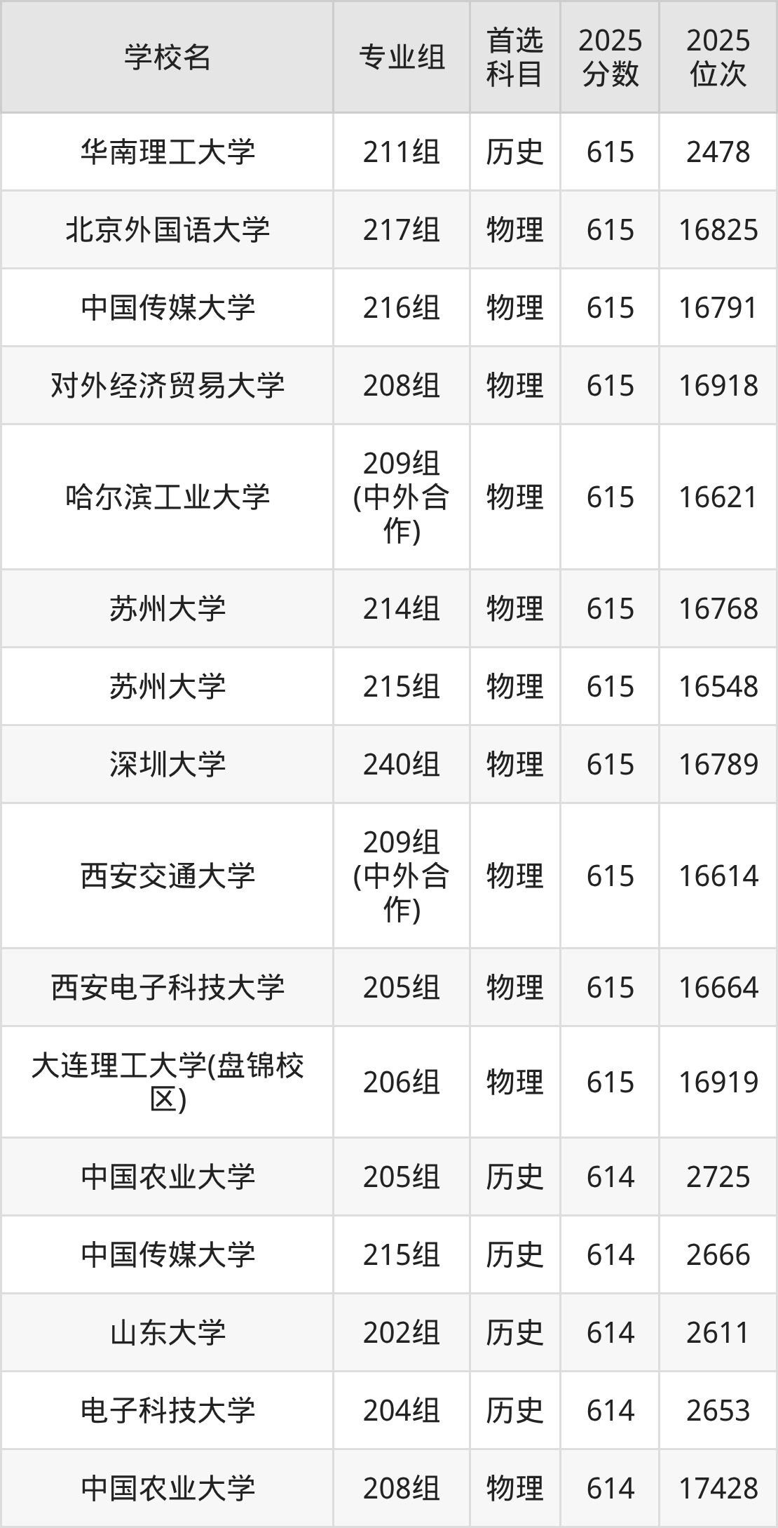 历史类613分可以冲的大学:华南理工大学615分、中国农业大学614分、中国传媒大学614分、山东大学614分等;较稳妥的大学:中国传媒大学612分、吉林大学612分、华东政法大学612分、华南师范大学612分等。