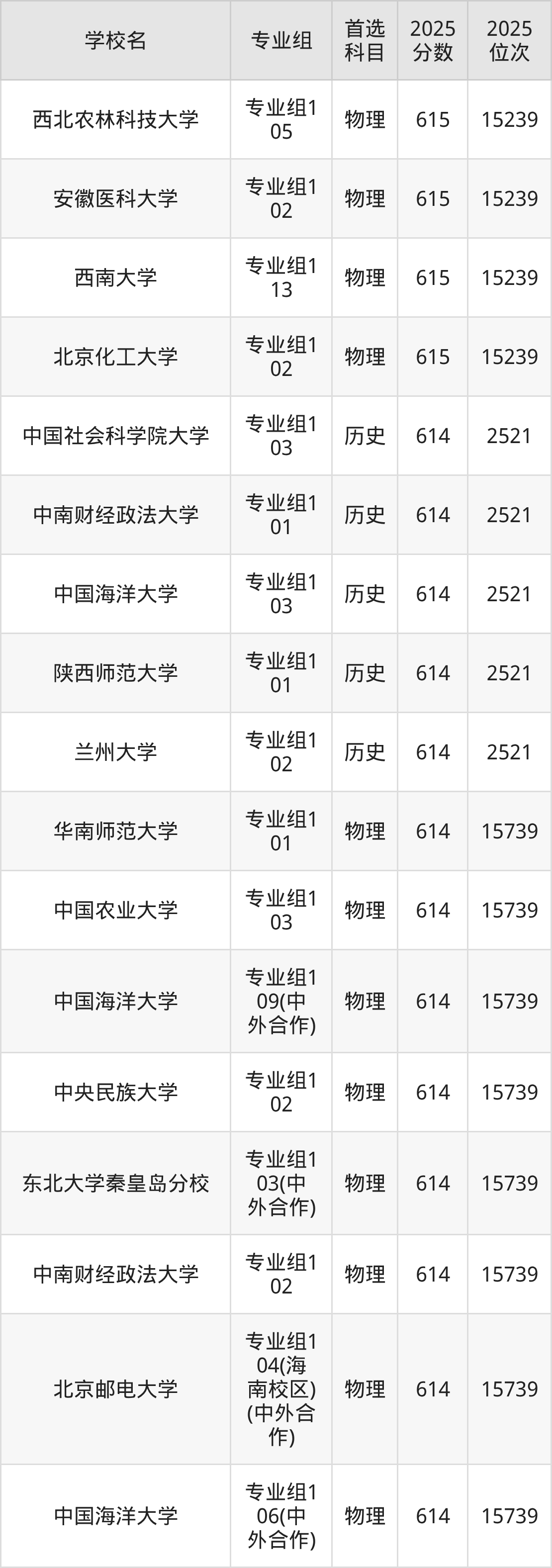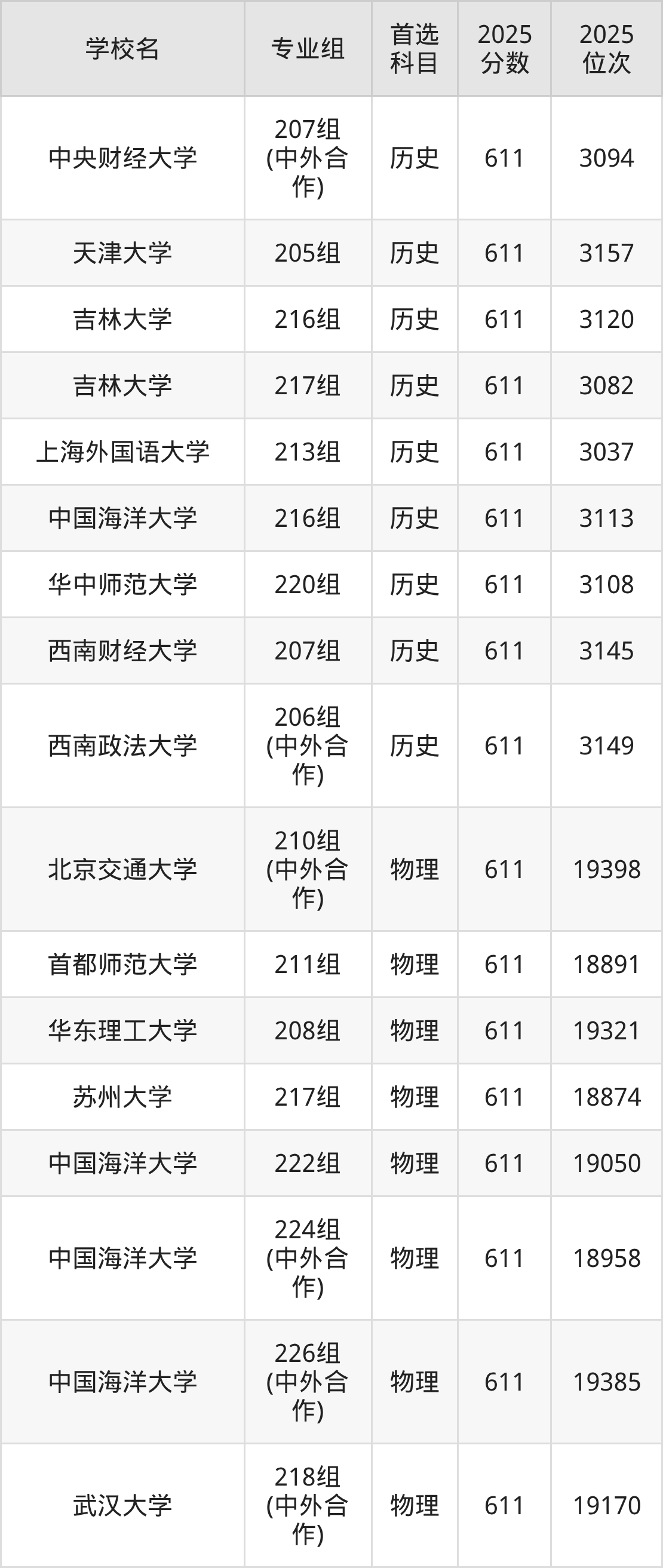 历史类613分可以冲的大学:中国人民公安大学615分、复旦大学上海医学院615分、西南大学615分、北京邮电大学615分等;较稳妥的大学:暨南大学612分、中国海洋大学612分、华南师范大学612分、西南财经大学612分等。