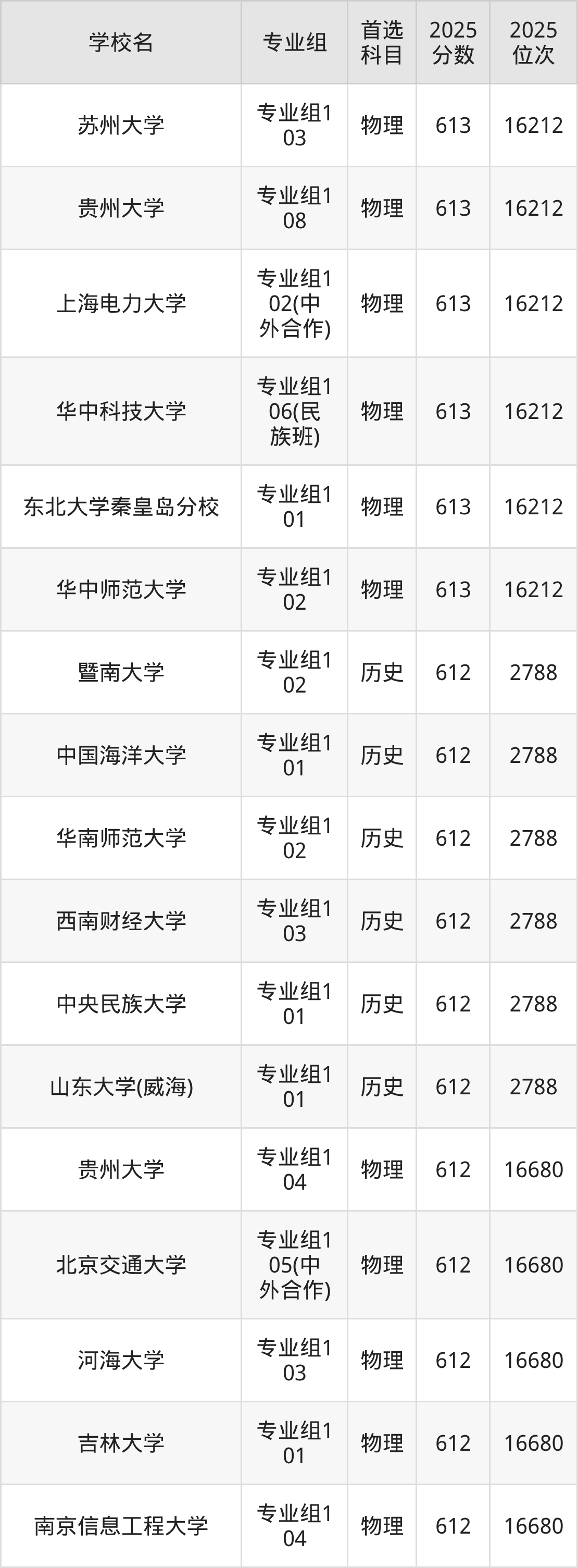 四川高考历史类613分对应的位次排名是2658名,物理类613分对应的位次排名是16212名,因此建议2026年位次排在这附近的同学考虑这些大学。