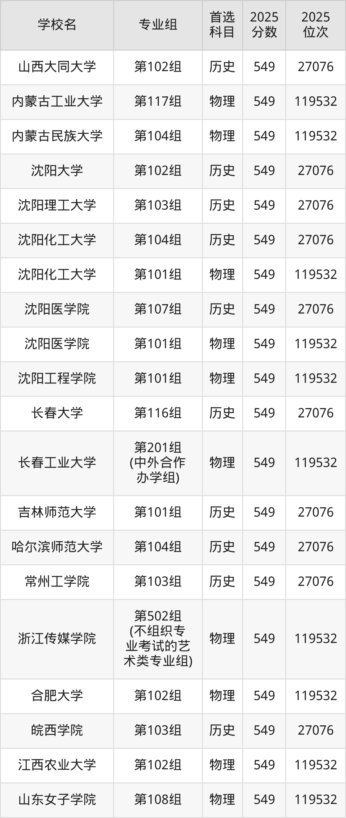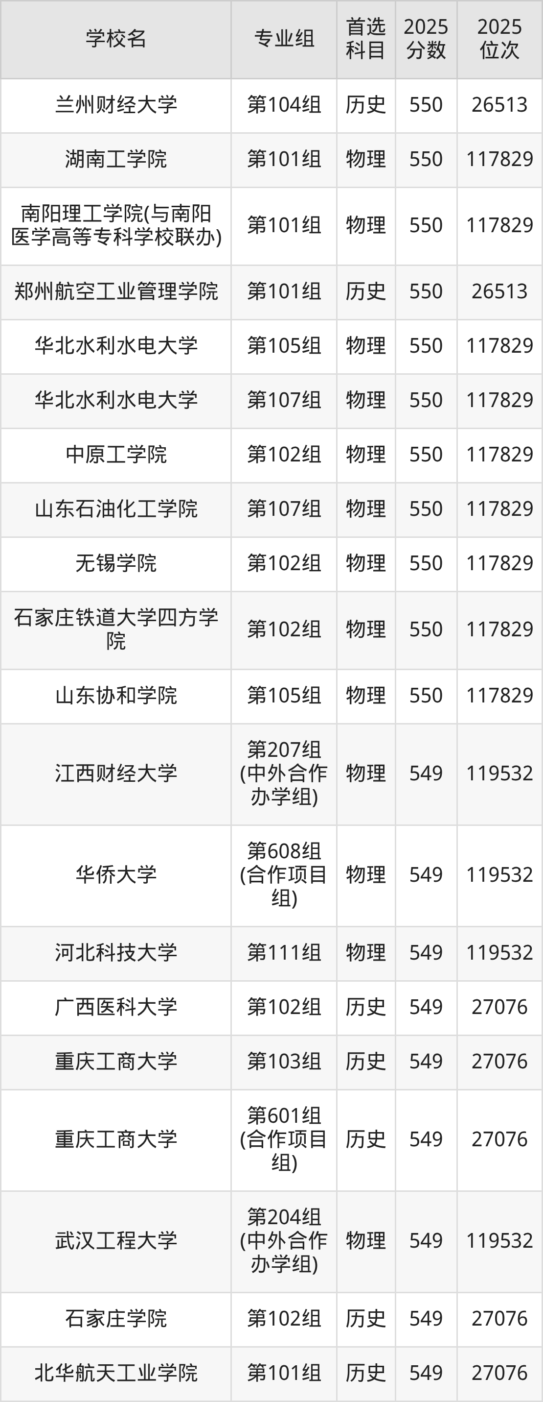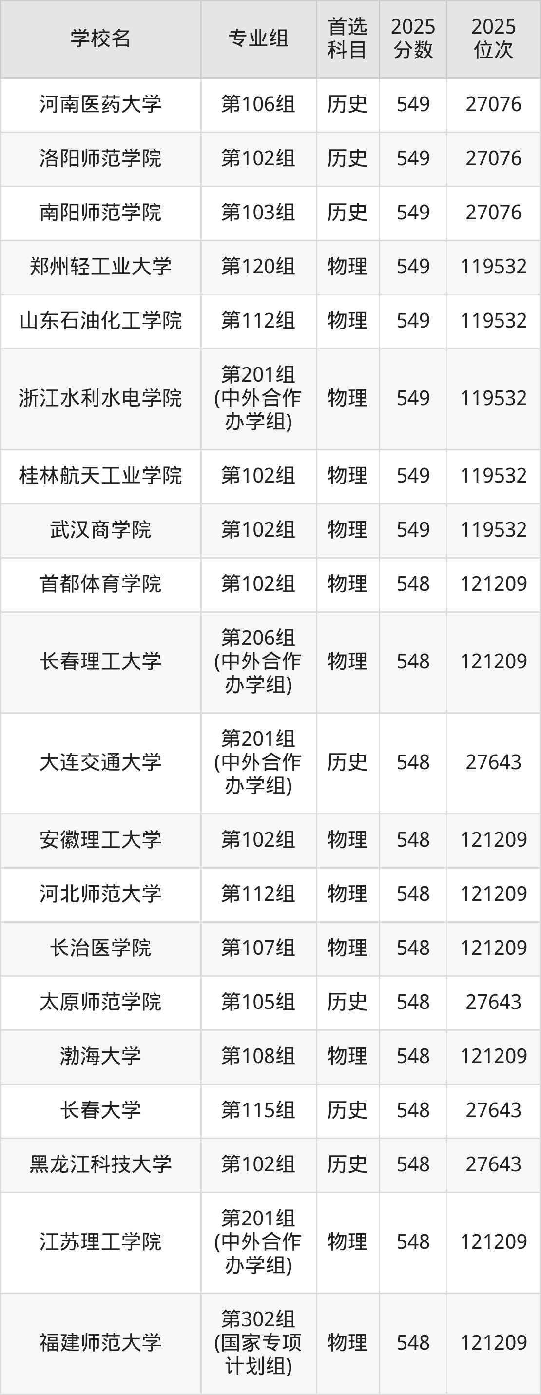 河南高考历史类549分对应的位次排名是27076名,物理类549分对应的位次排名是119532名,因此建议2026年位次排在这附近的同学考虑这些大学。