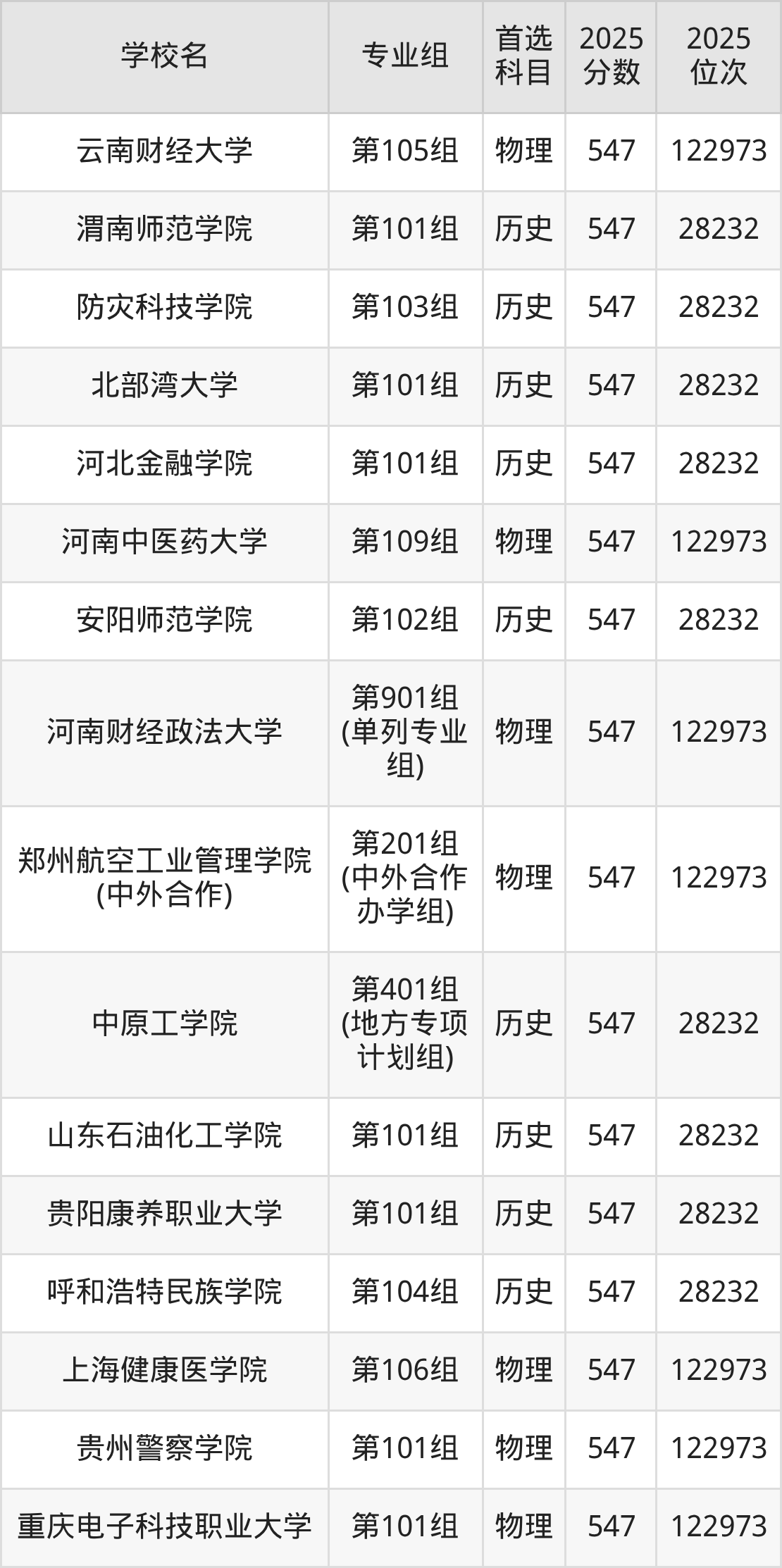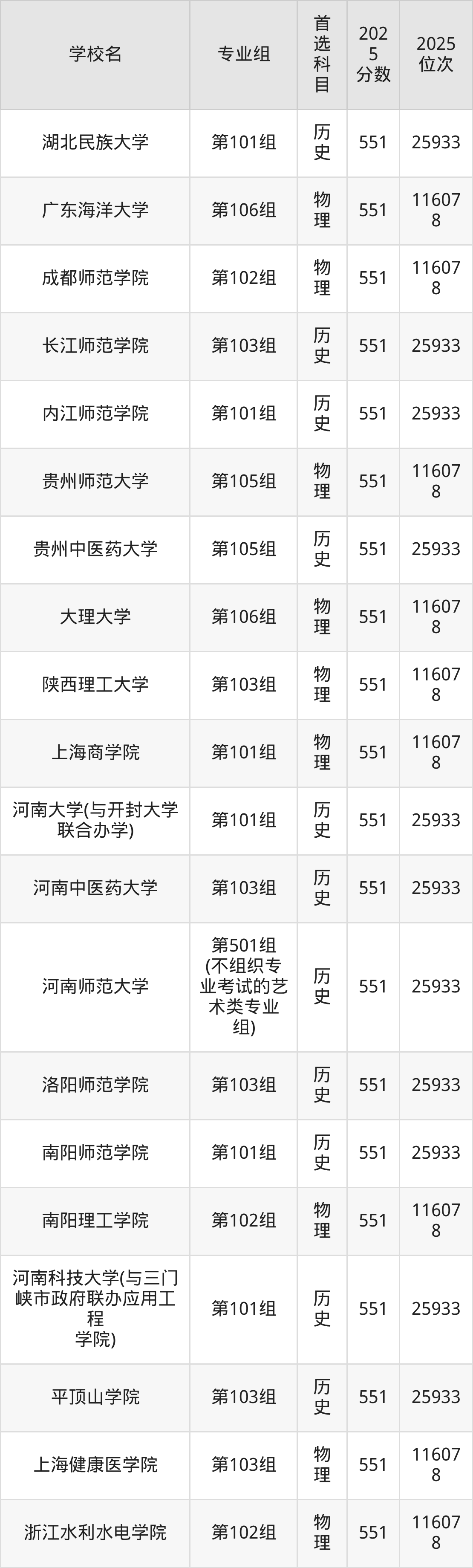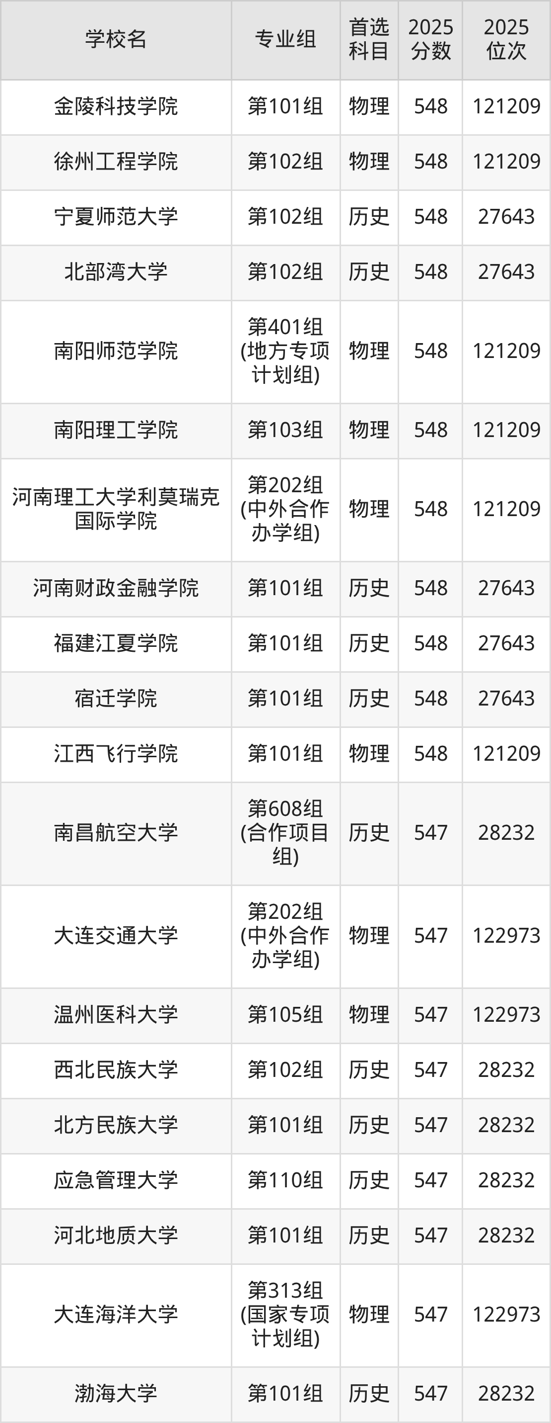 河南高考历史类549分对应的位次排名是27076名,物理类549分对应的位次排名是119532名,因此建议2026年位次排在这附近的同学考虑这些大学。