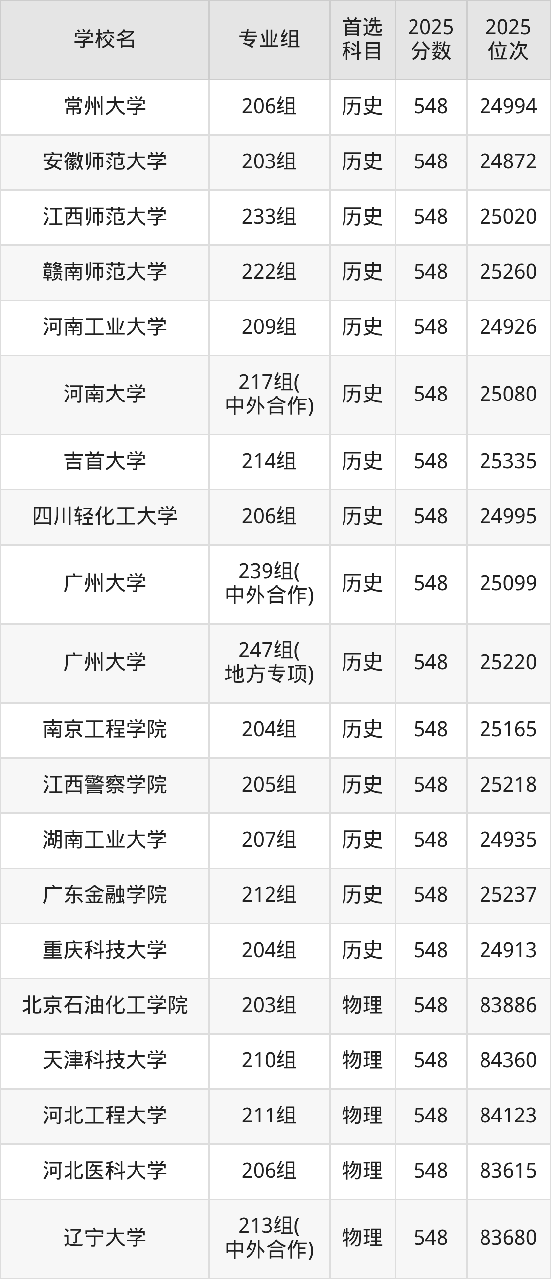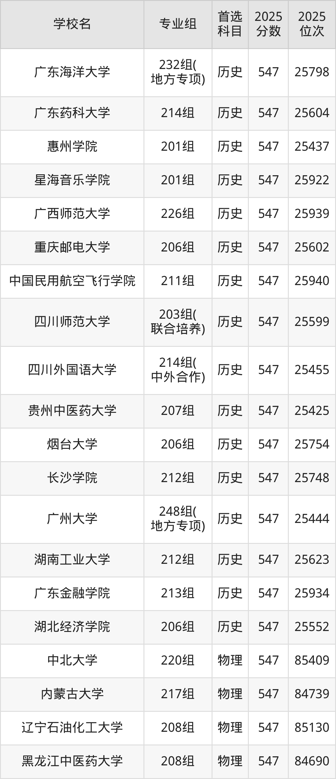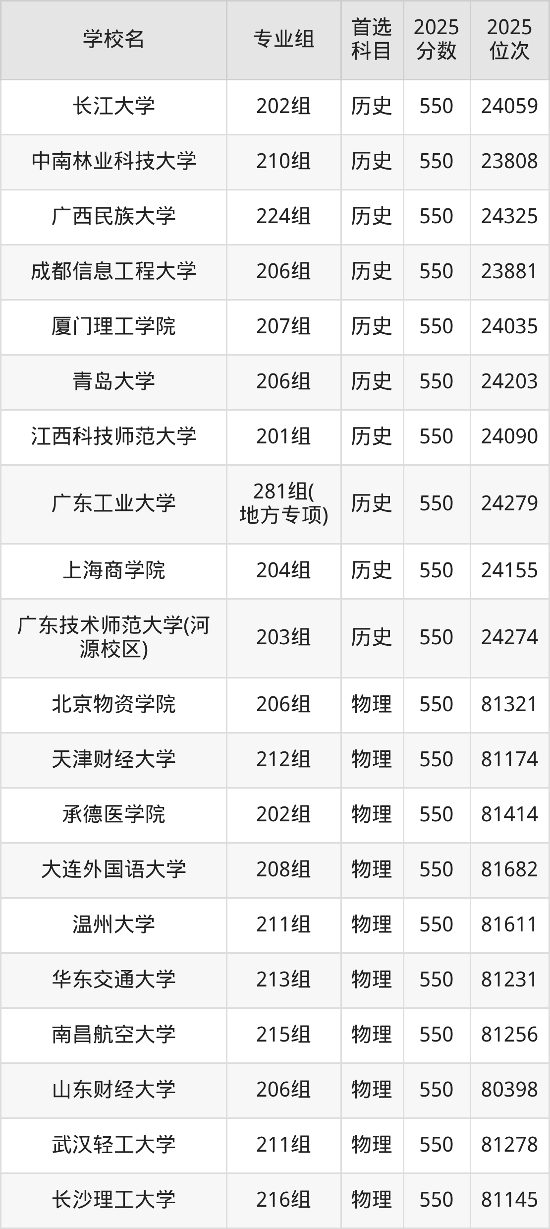 广东高考历史类549分对应的位次排名是24374名-24811名,物理类549分对应的位次排名是81723名-83082名,因此建议2026年位次排在这附近的同学考虑这些大学。