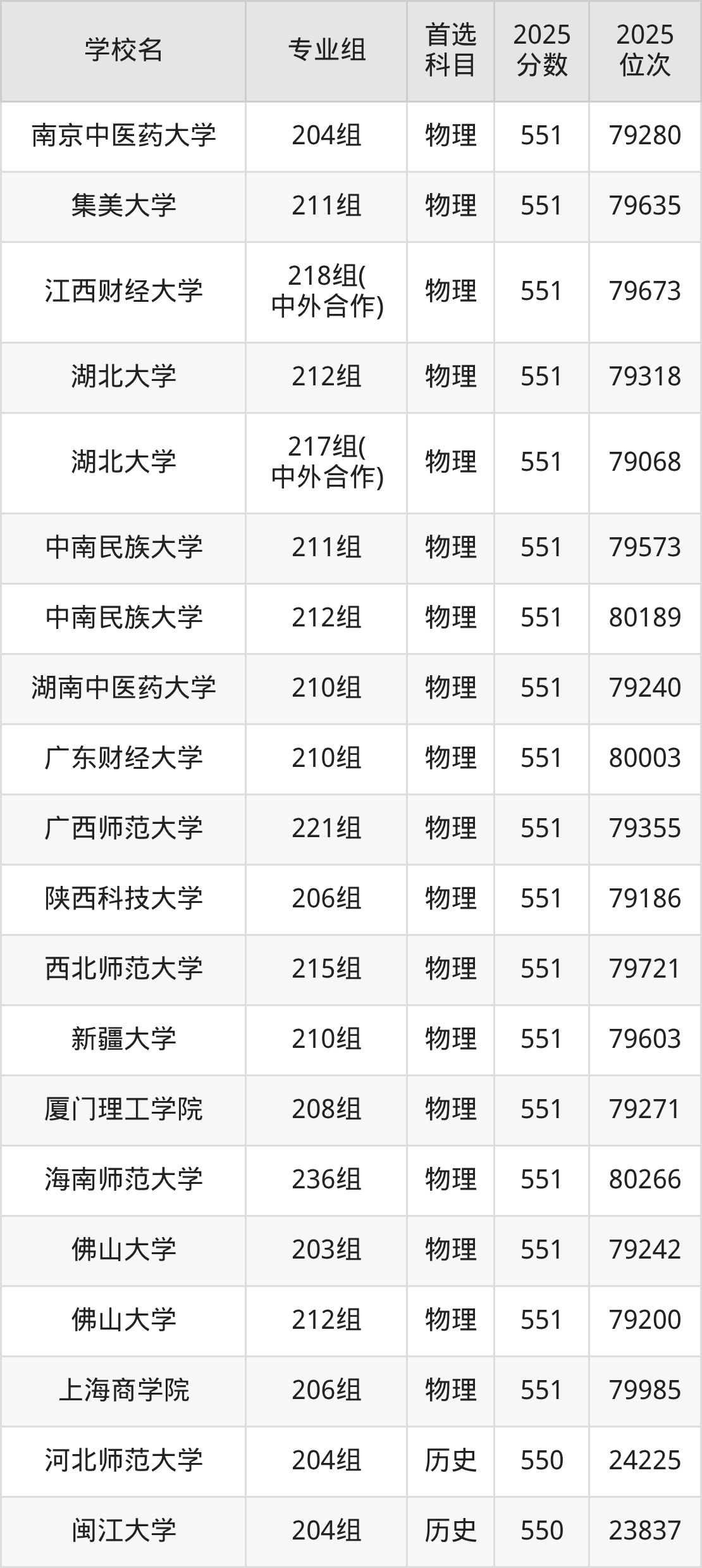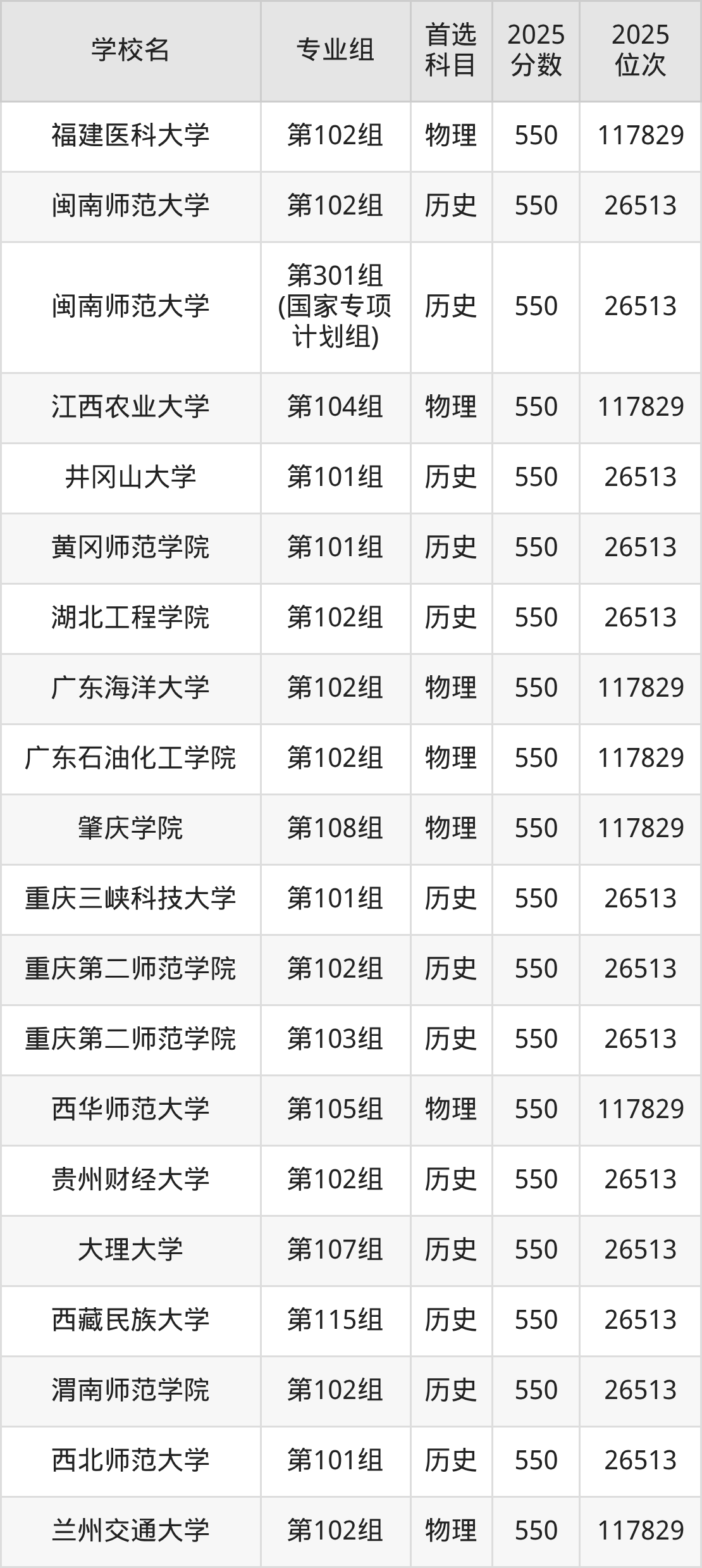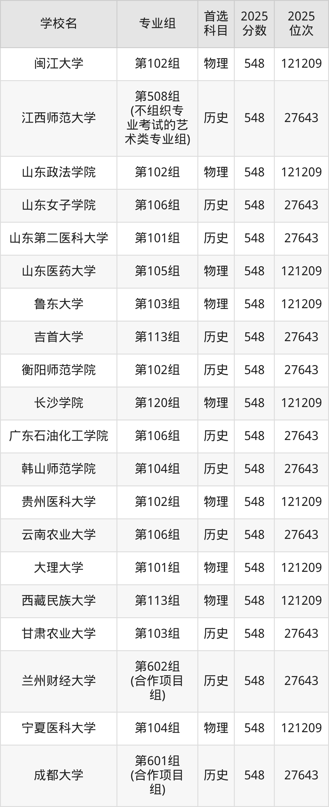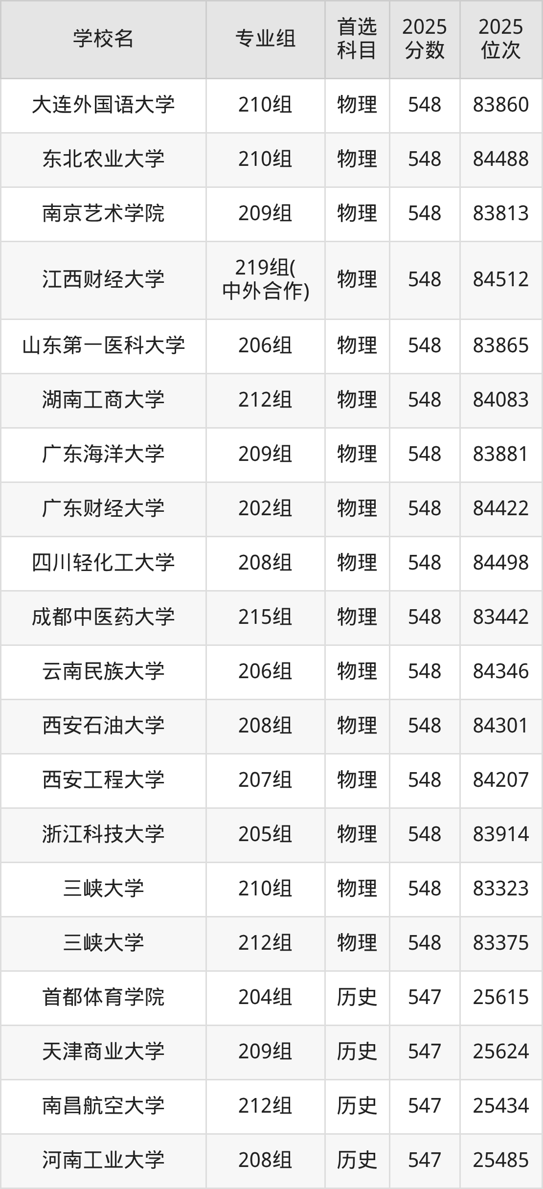 广东高考历史类549分对应的位次排名是24374名-24811名,物理类549分对应的位次排名是81723名-83082名,因此建议2026年位次排在这附近的同学考虑这些大学。