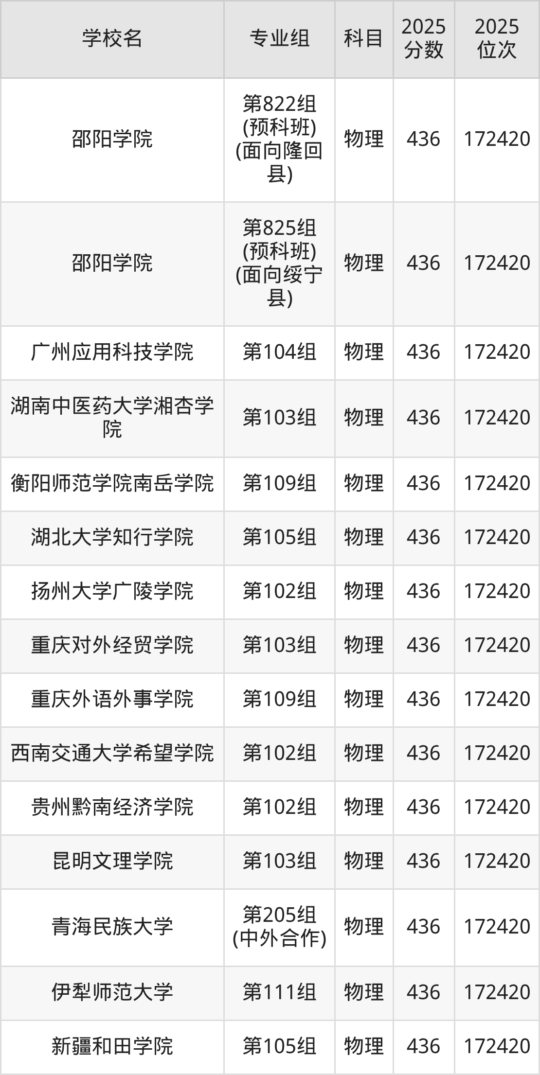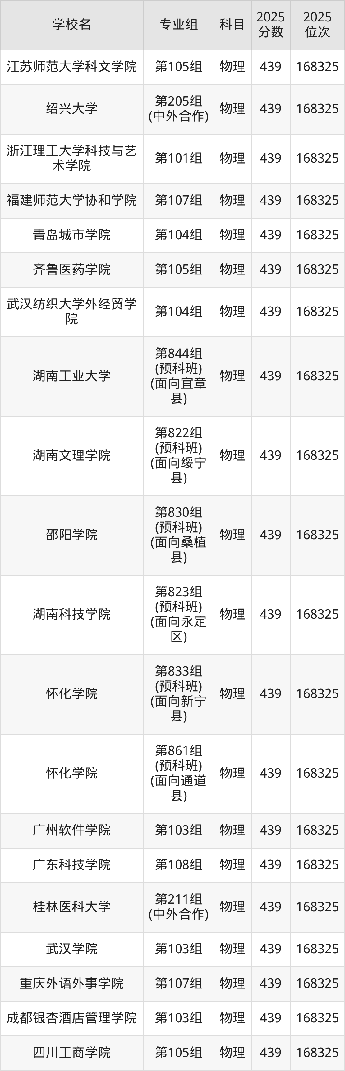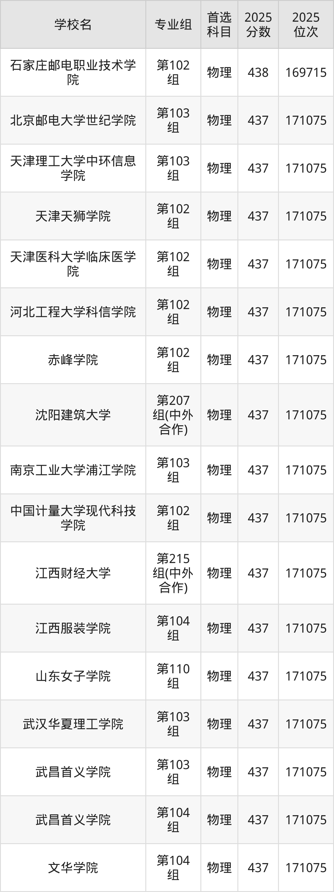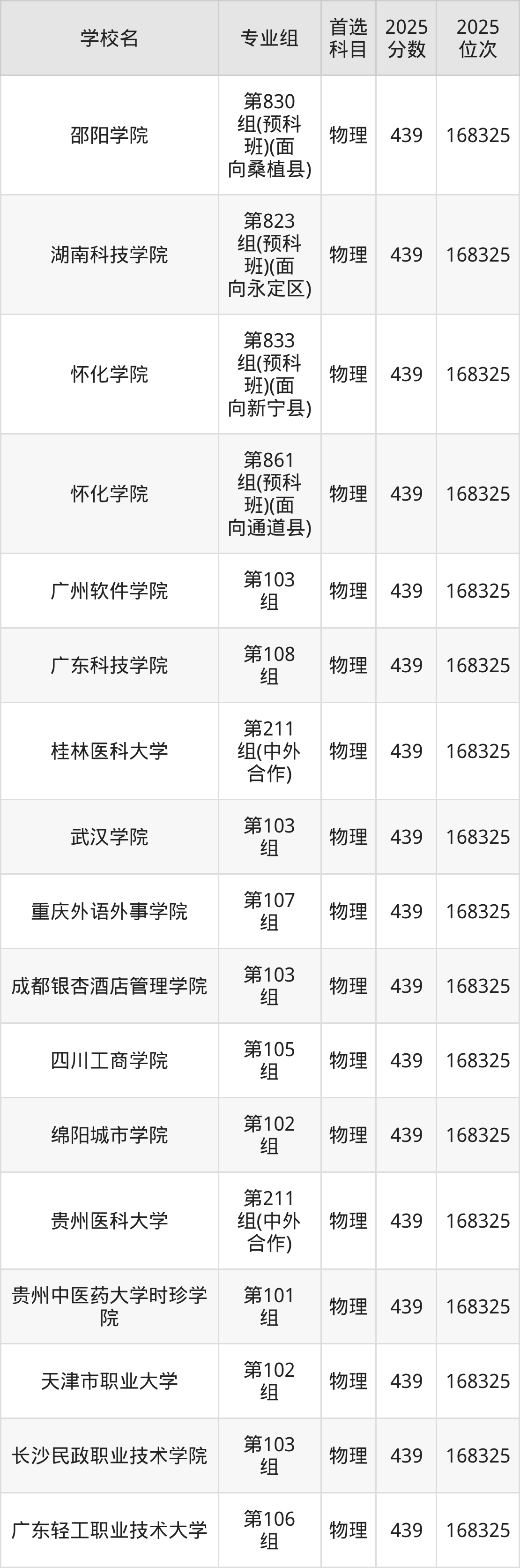 湖南物理类438分对应的位次排名是169715名,因此建议2026年位次排在这附近的考生考虑这些大学。