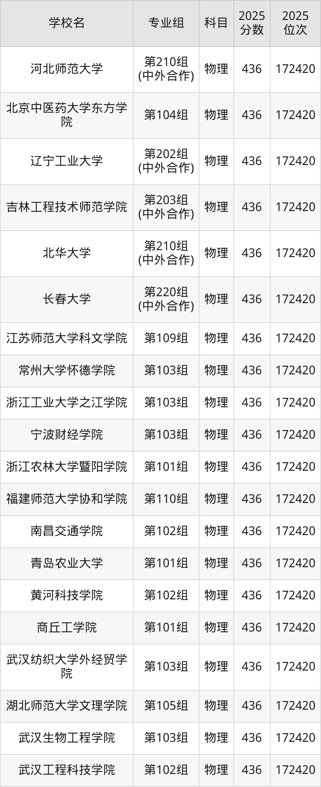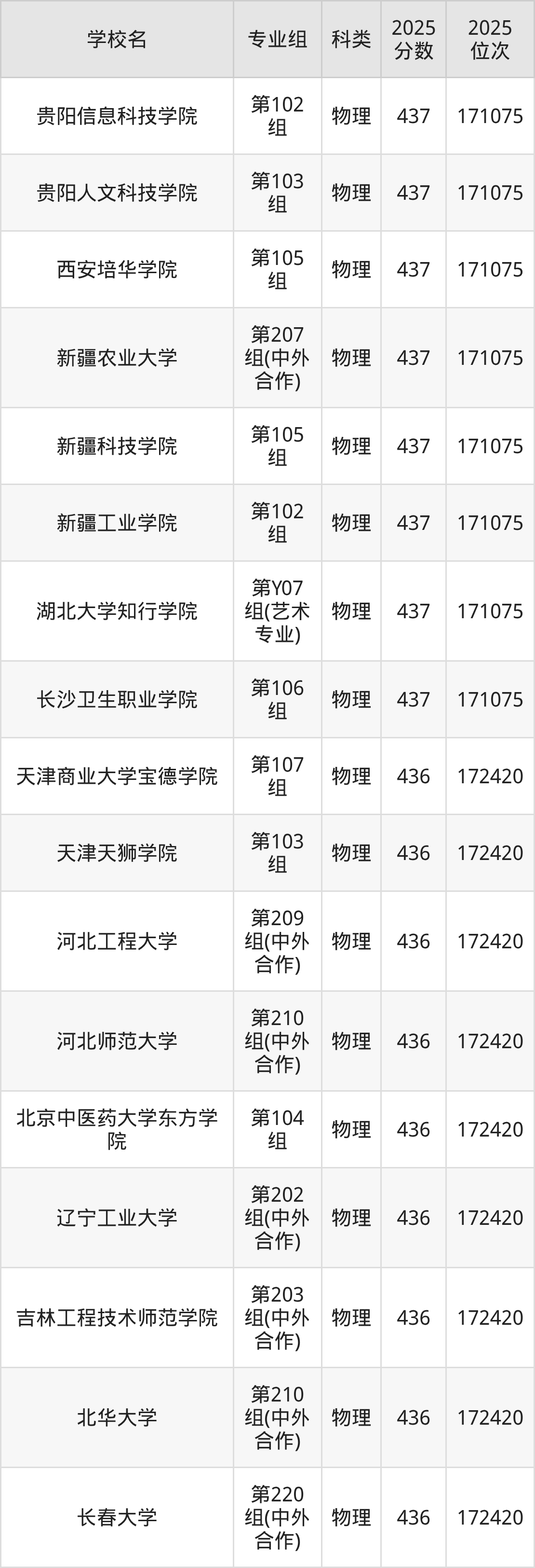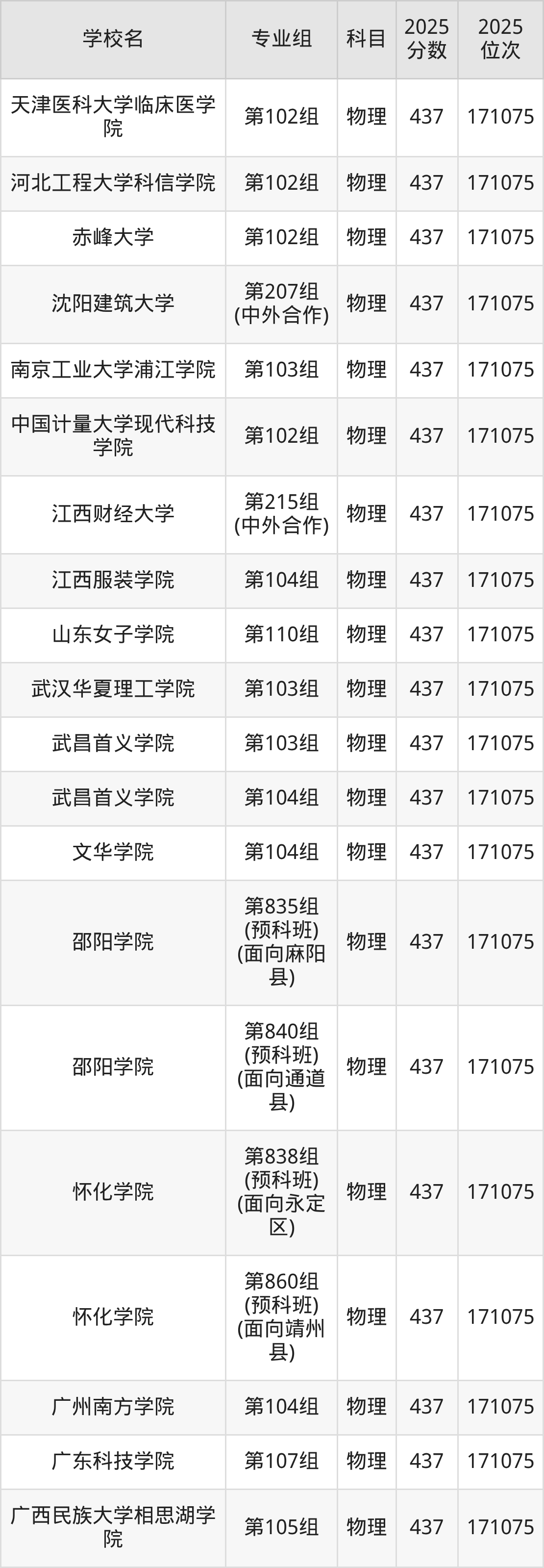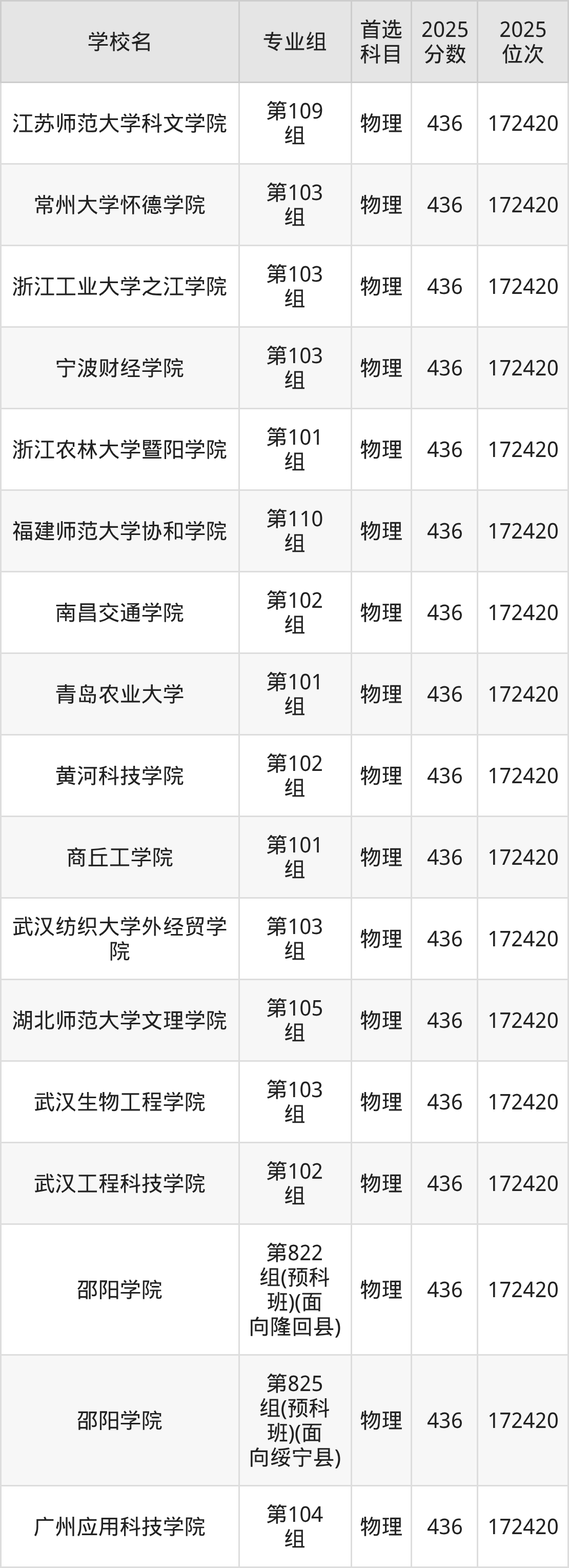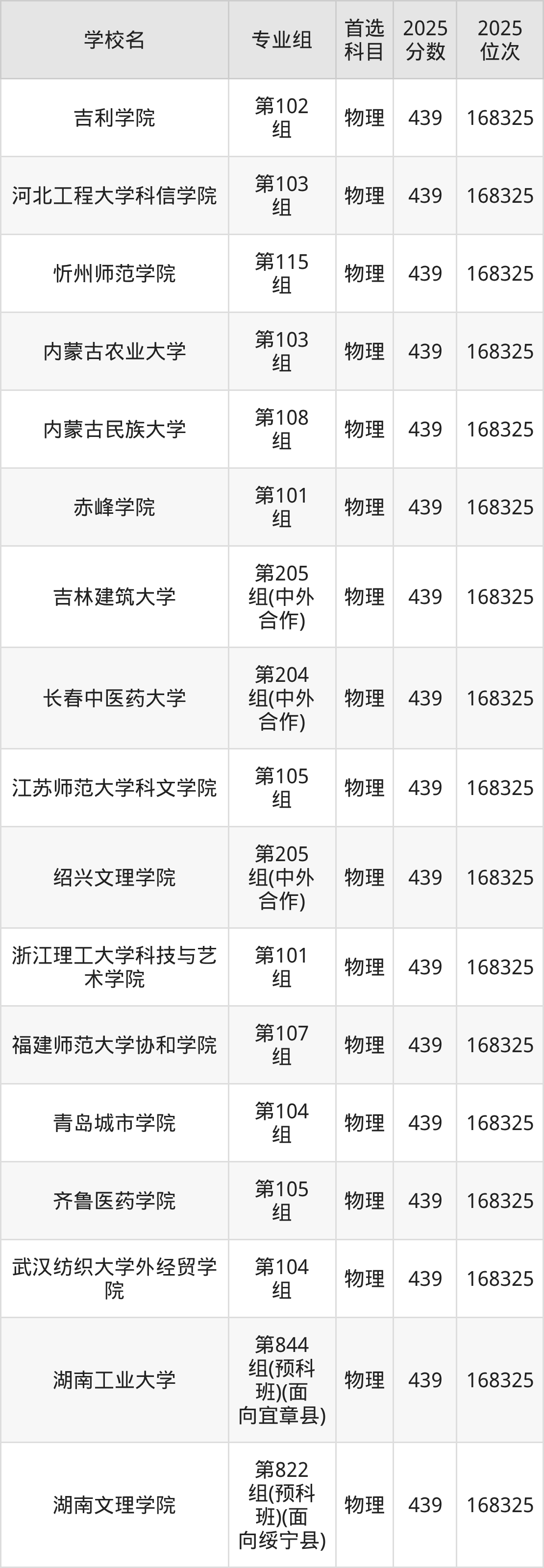 湖南物理类438分对应的位次排名是169715名,因此建议2026年位次排在这附近的考生考虑这些大学。