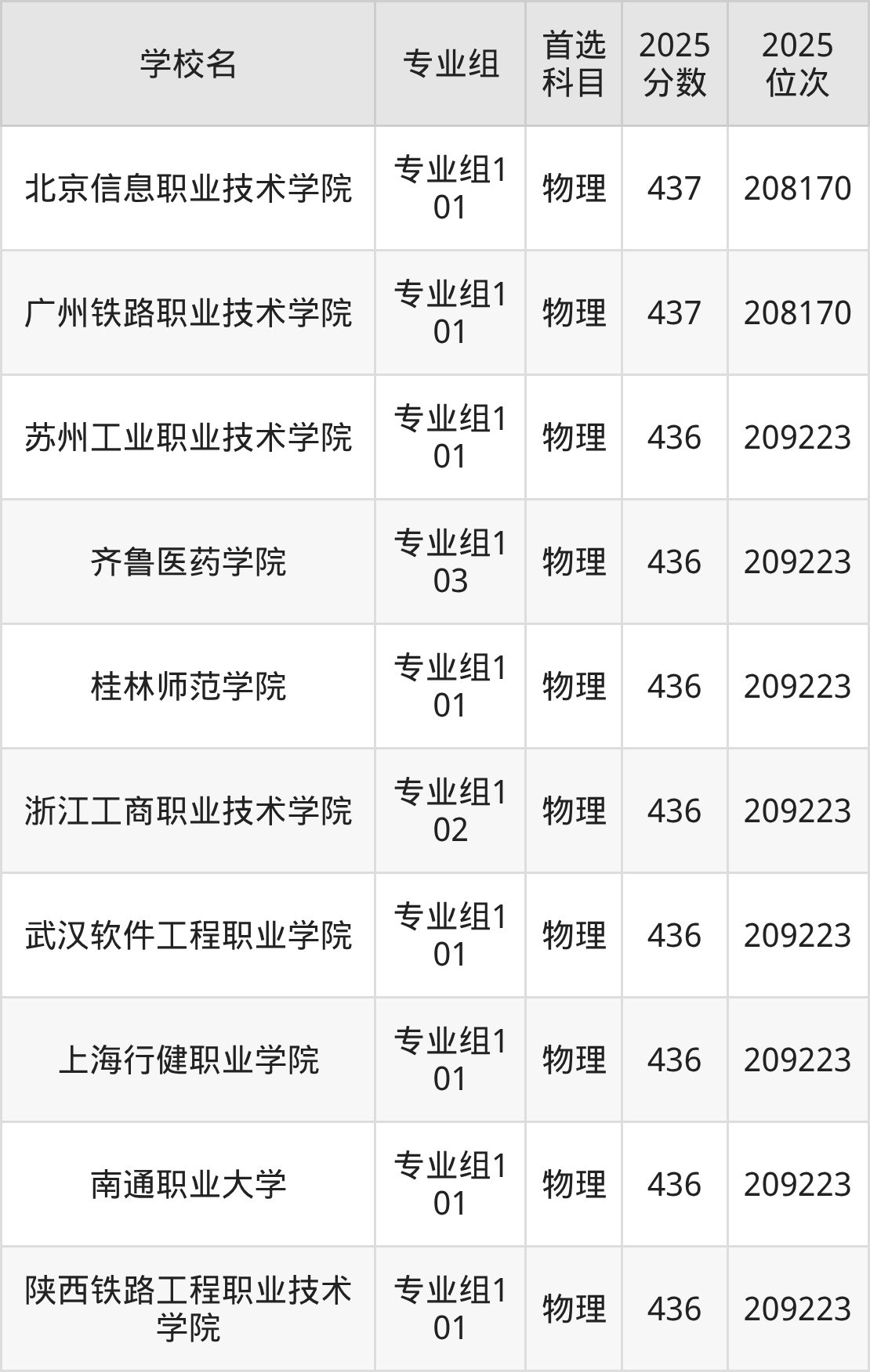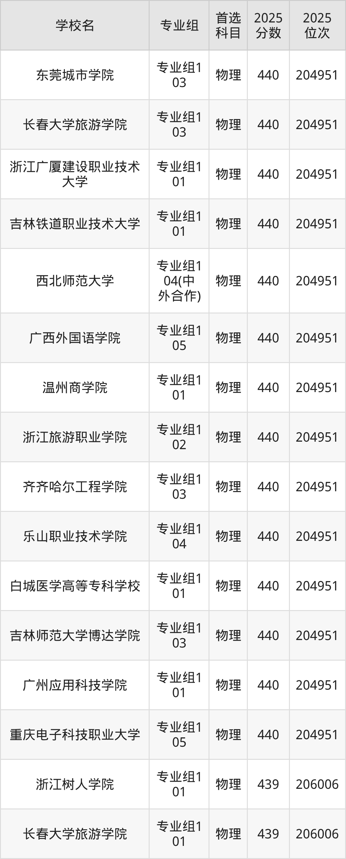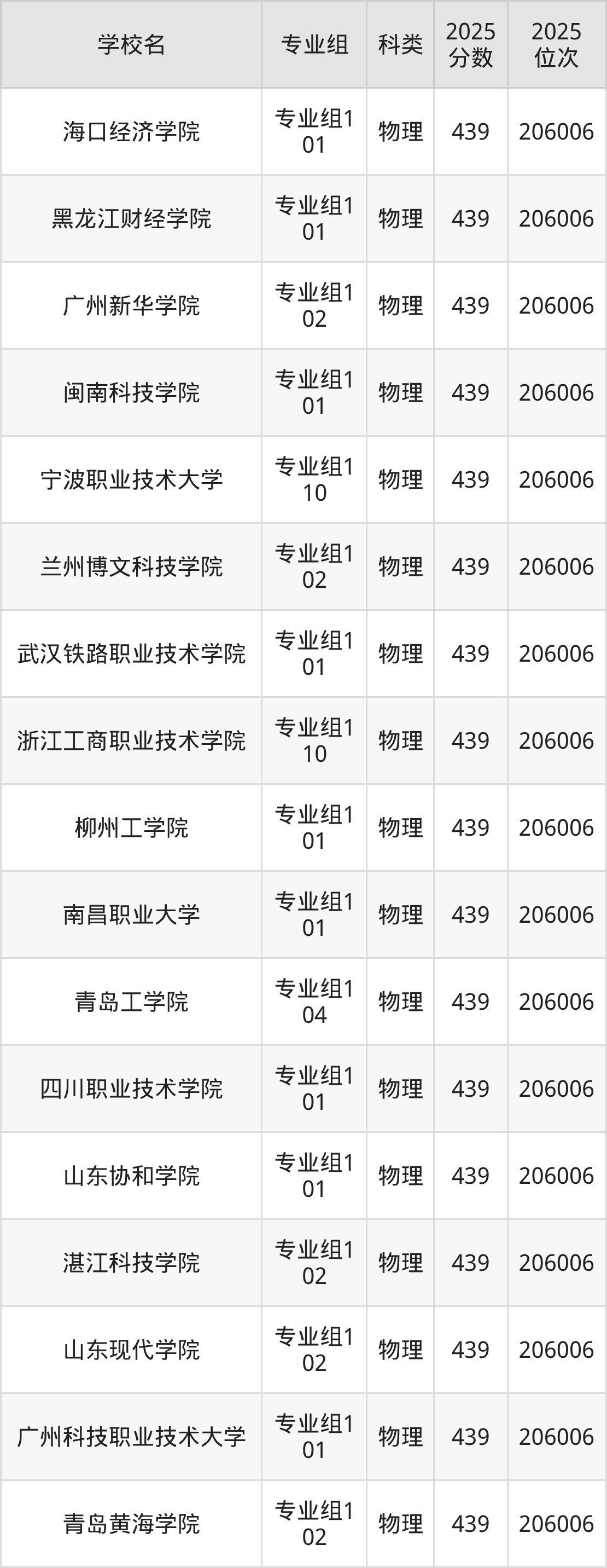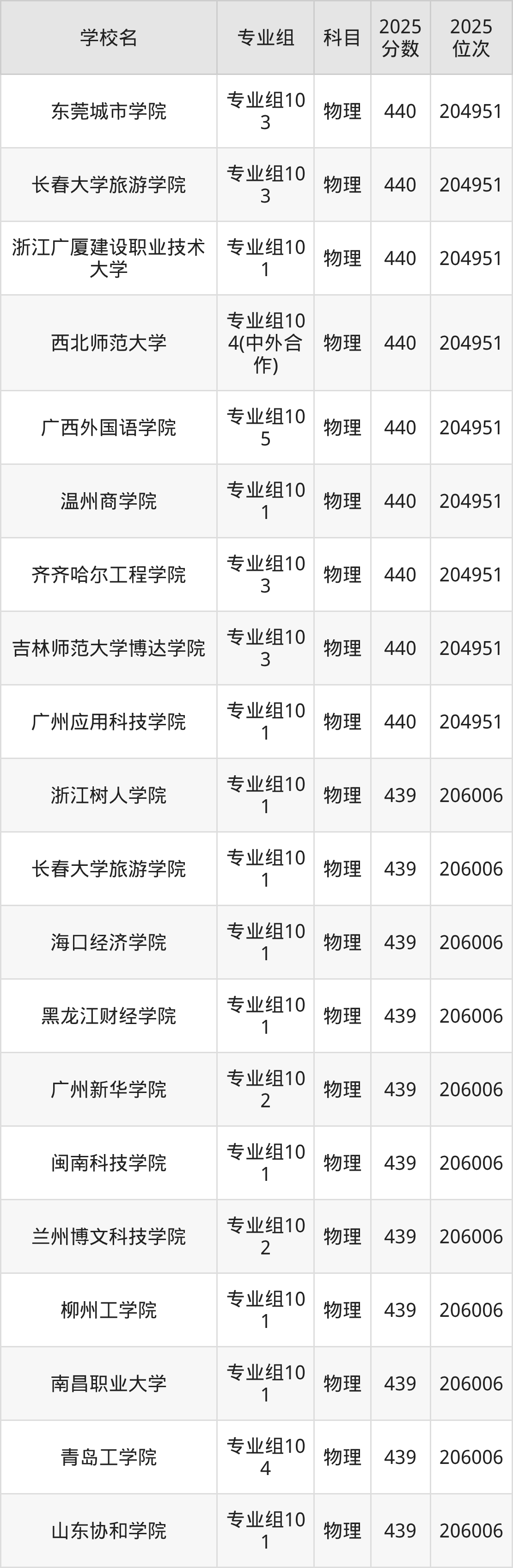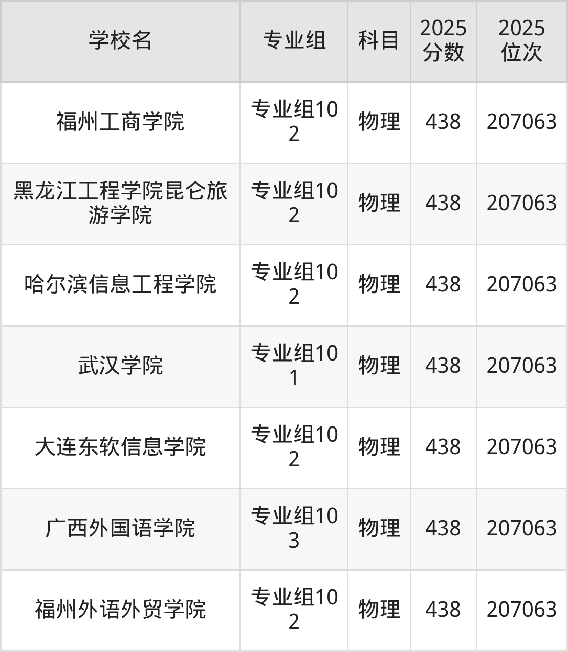 四川物理类438分对应的位次排名是207063名,因此建议2026年位次排在这附近的考生考虑这些大学。