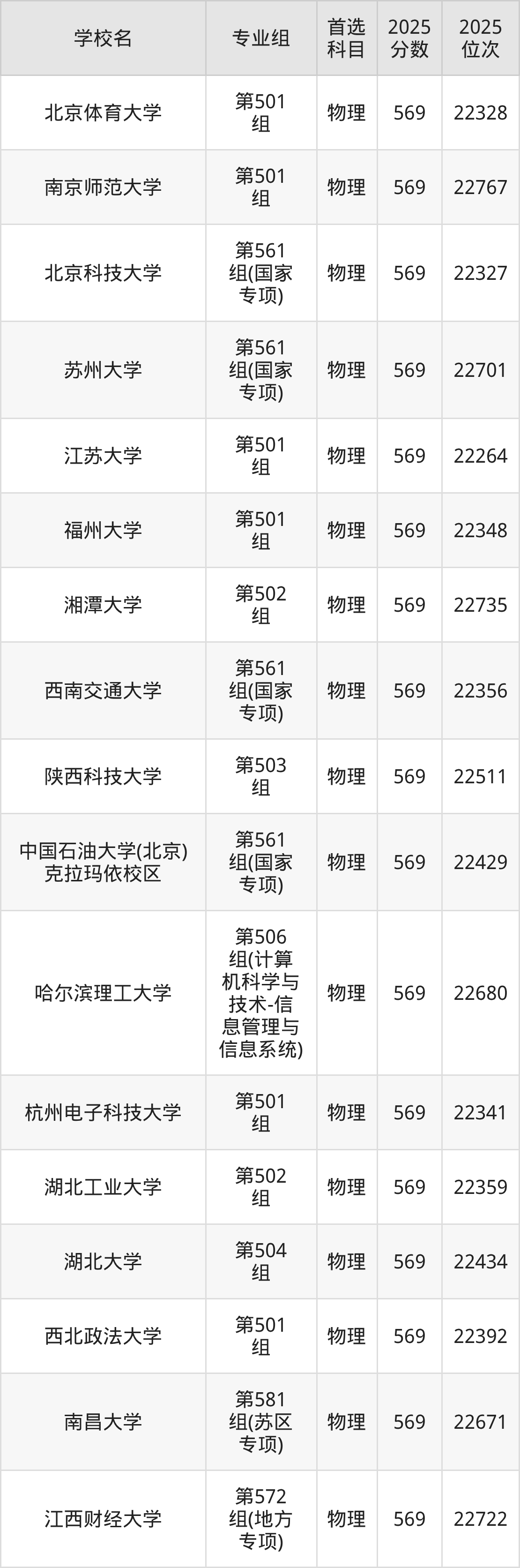 物理类567分可以冲的大学:北京体育大学569分、南京师范大学569分、北京科技大学569分、苏州大学569分等;较稳妥的大学:西南大学566分、陕西师范大学566分、北京林业大学566分、河北工业大学566分等。