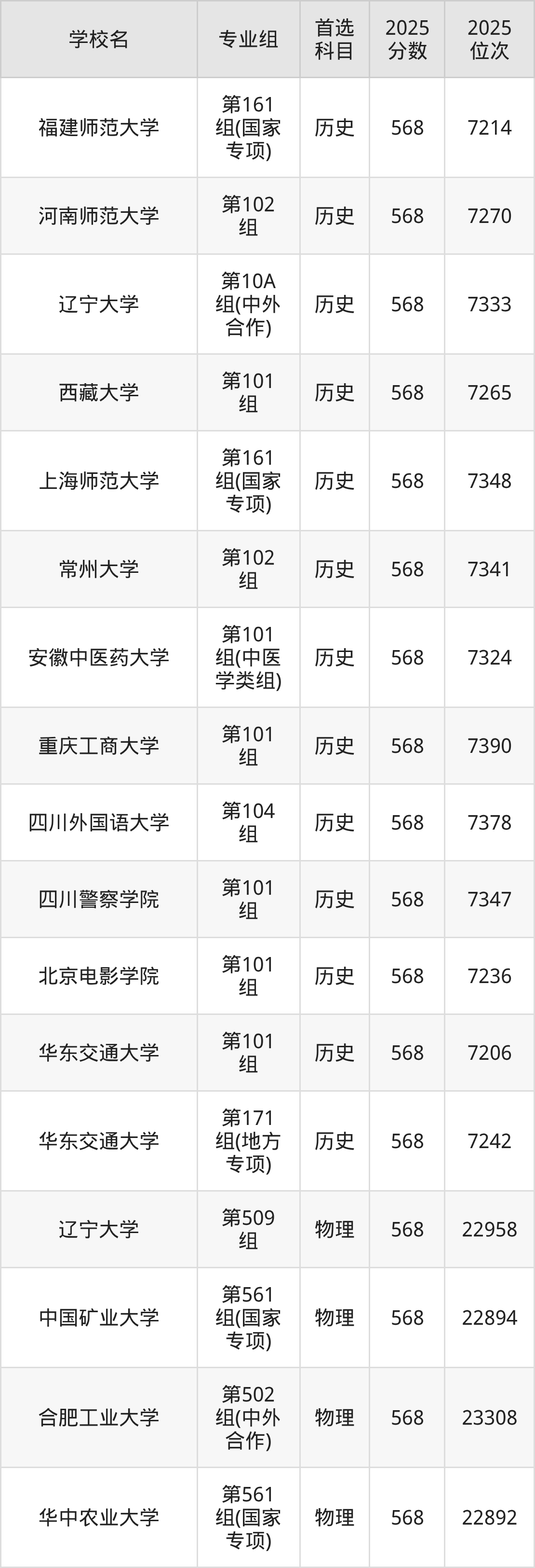 下面老师将以上文整理的其中两个省份为例,为大家具体展示567分左右能上的本科大学名单。