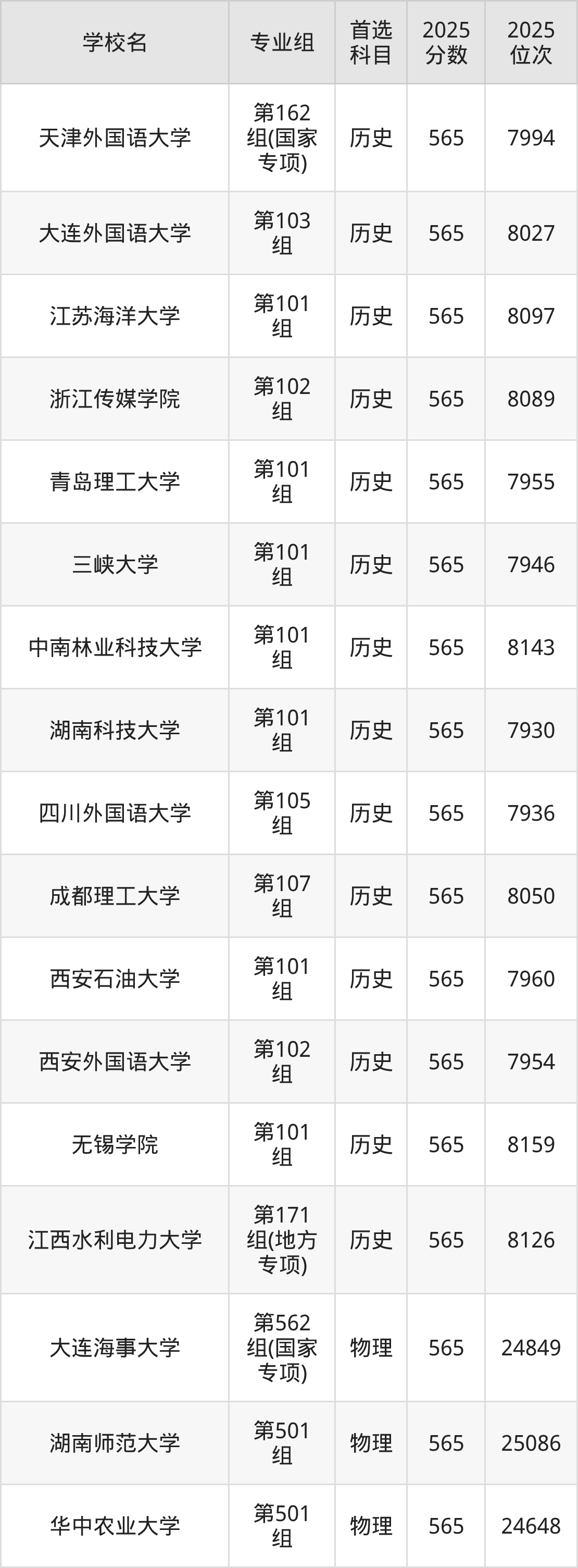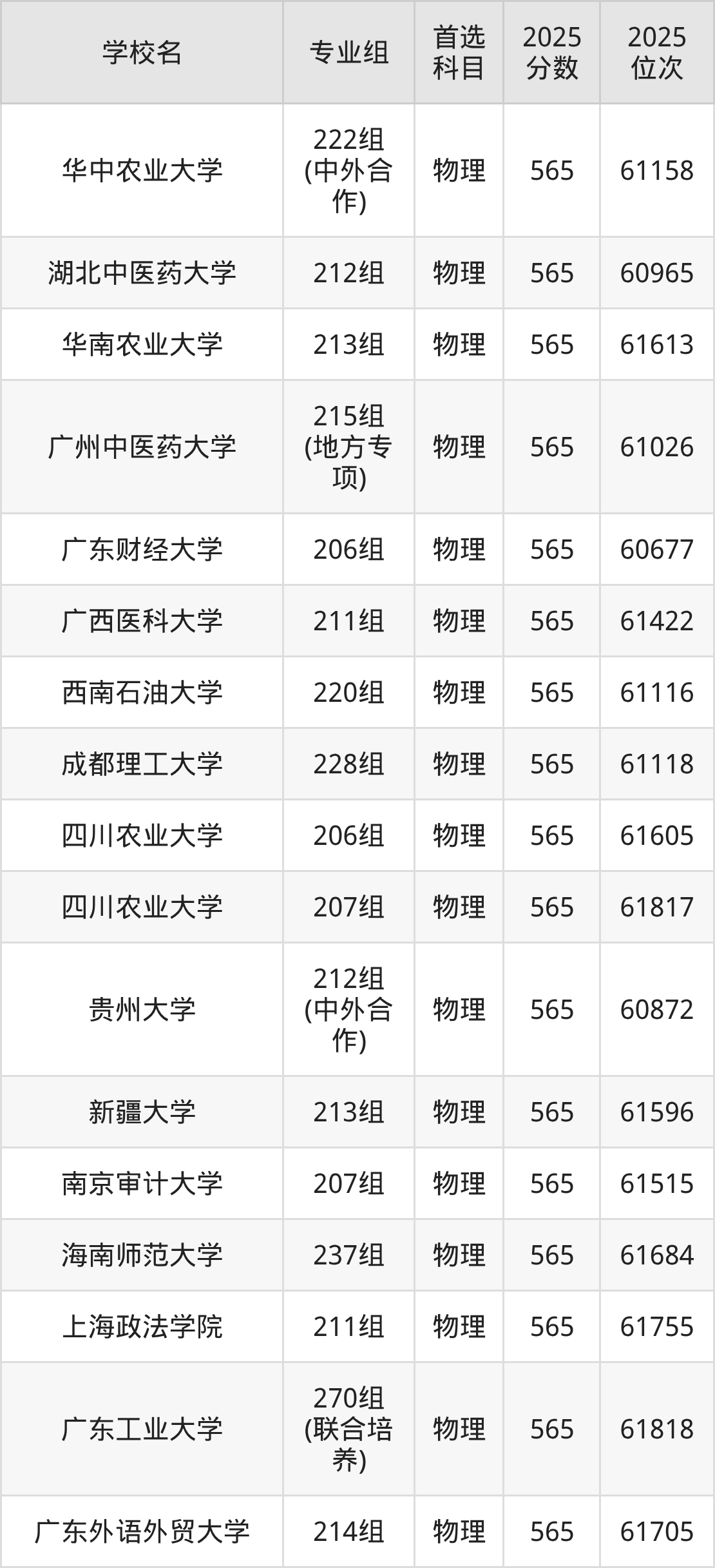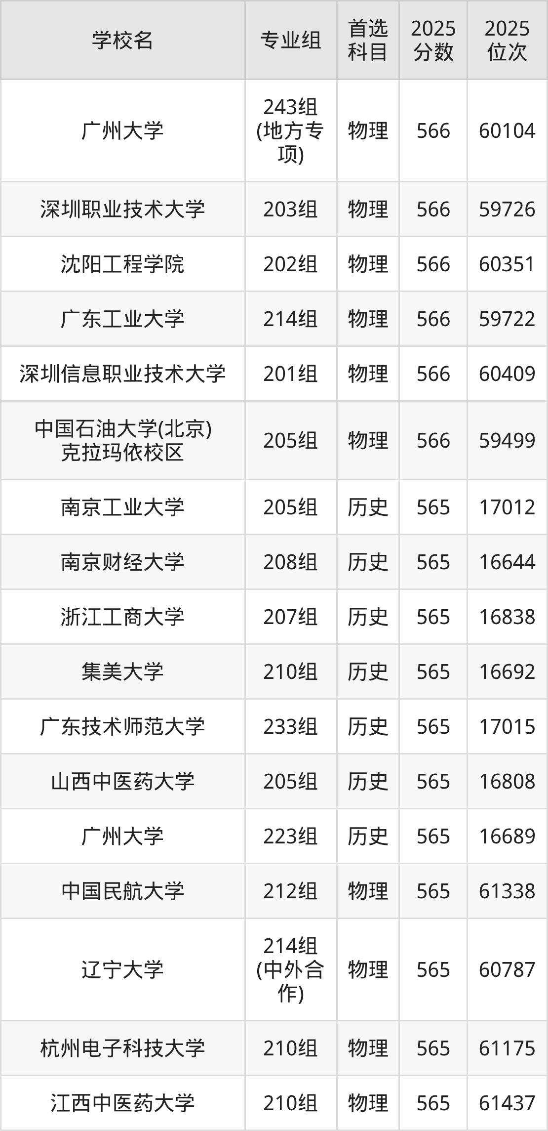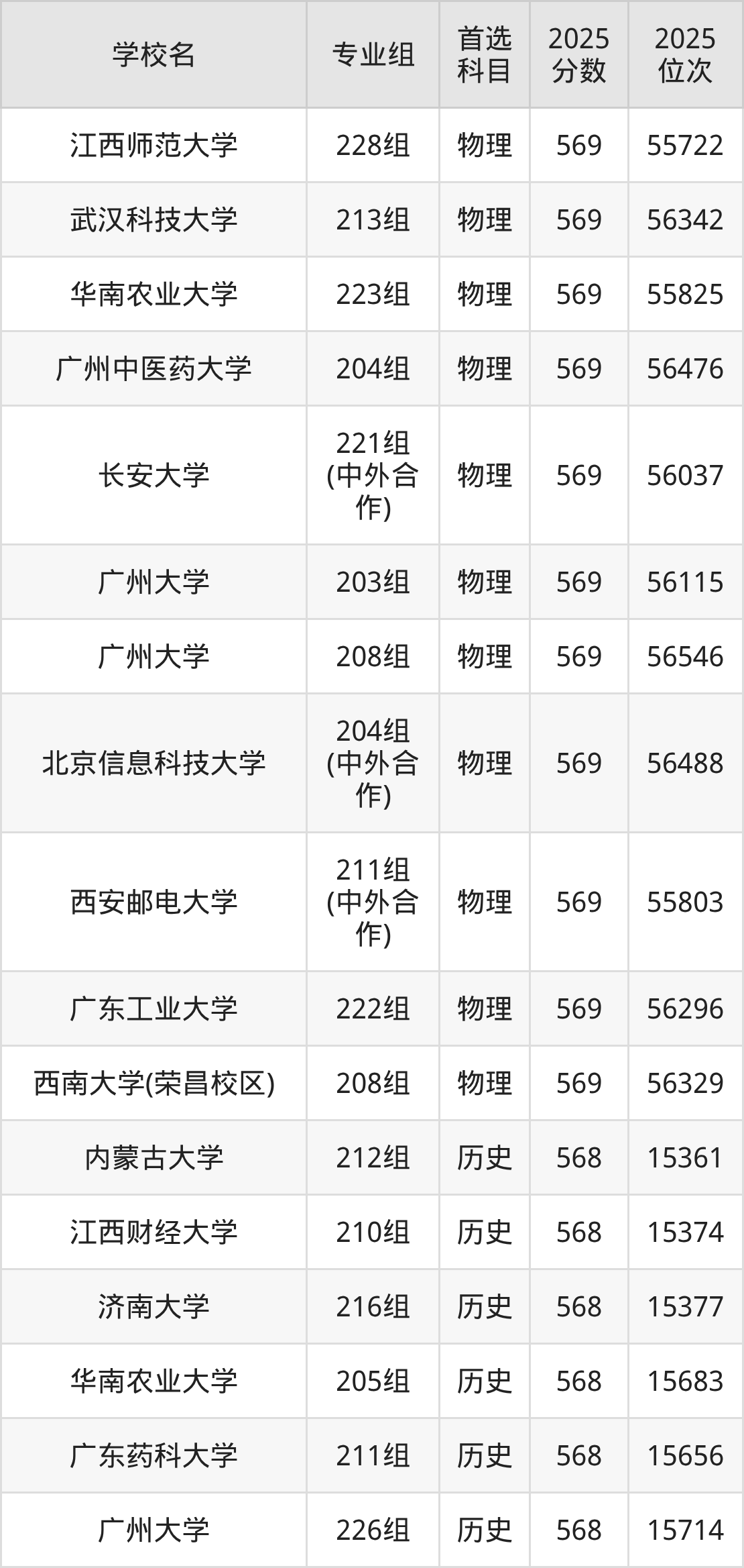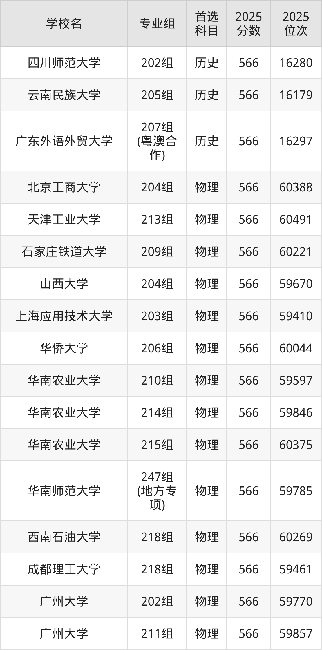 广东高考物理类567分对应的位次排名是58127名-59285名,历史类567分对应的位次排名是15756名-16123名,因此建议2026年位次排在这附近的同学考虑这些大学。