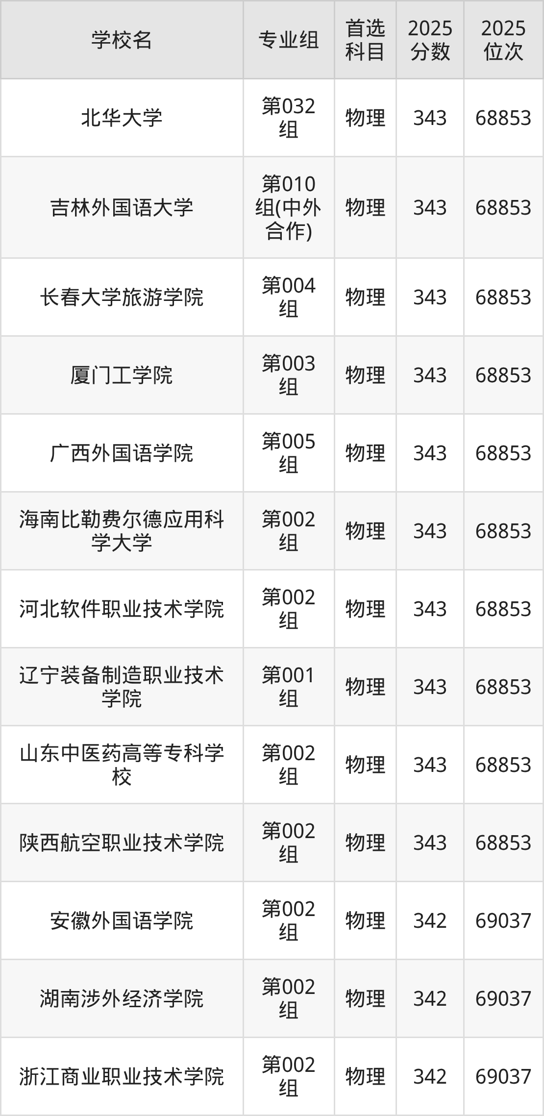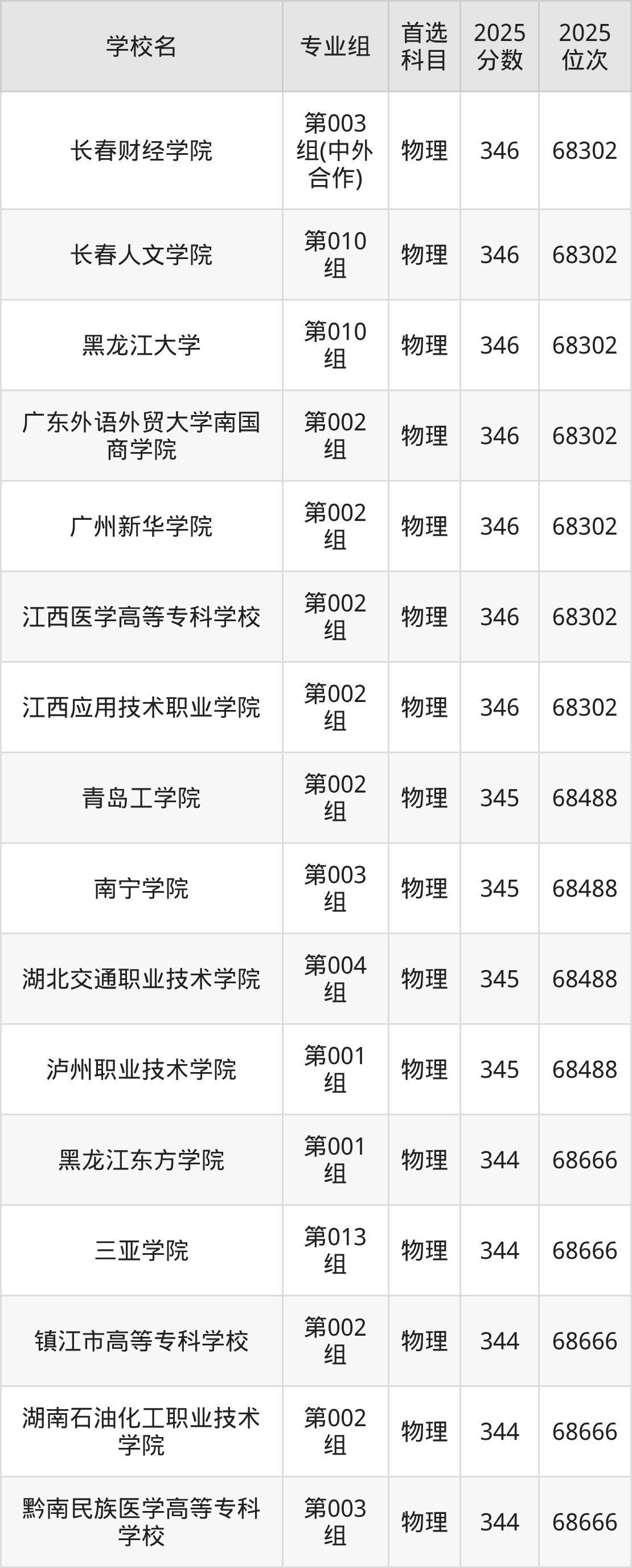 吉林物理类344分对应的位次排名是68666名,因此建议2026年位次排在这附近的考生考虑这些大学。