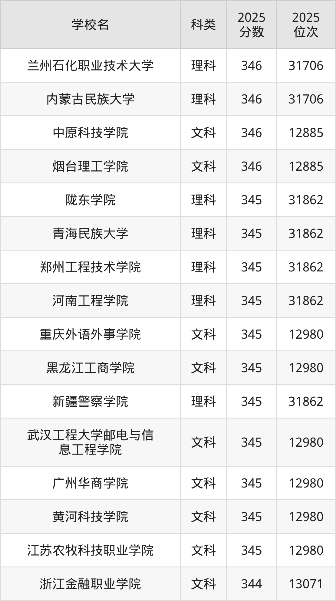 二、344分左右的本科大学排名