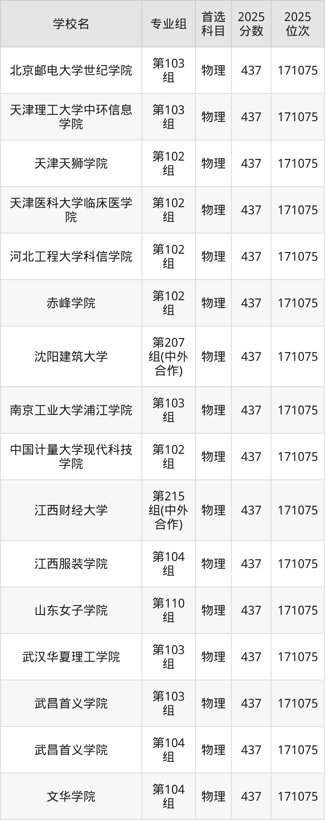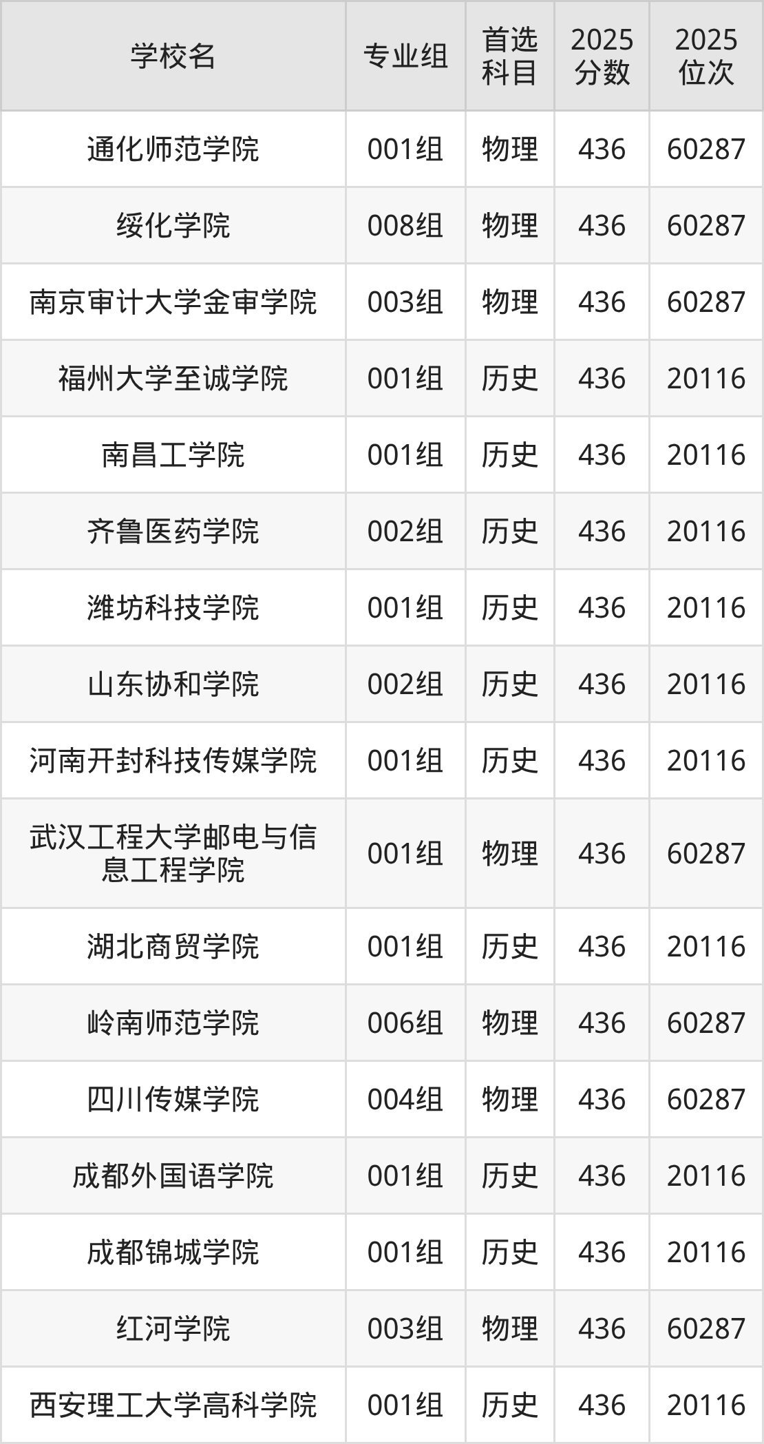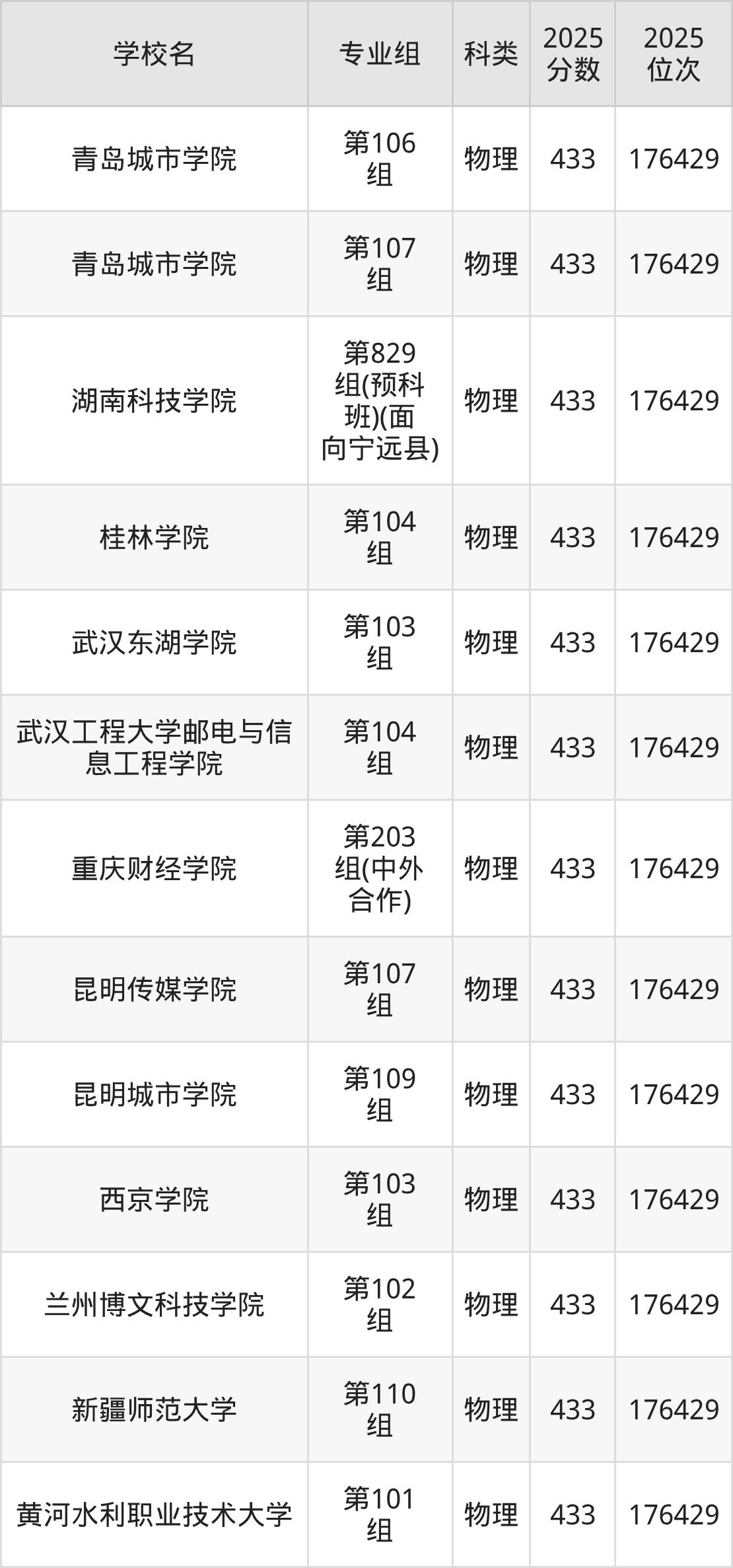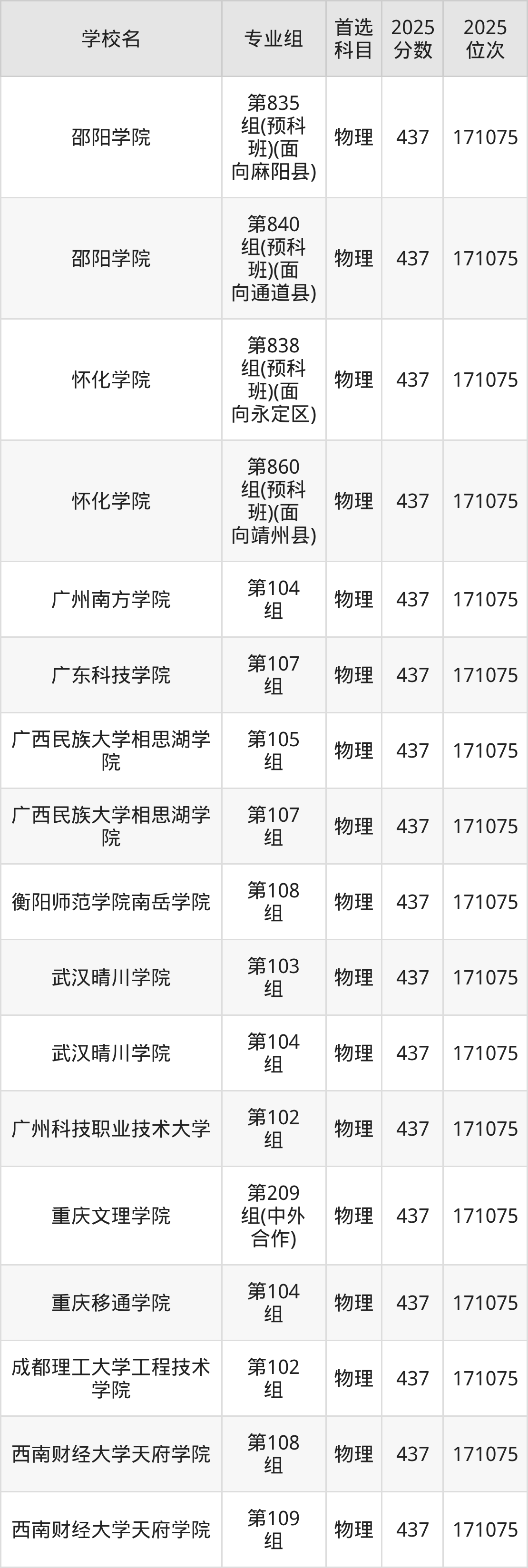 湖南物理类435分对应的位次排名是173735名,因此建议2026年位次排在这附近的考生考虑这些大学。