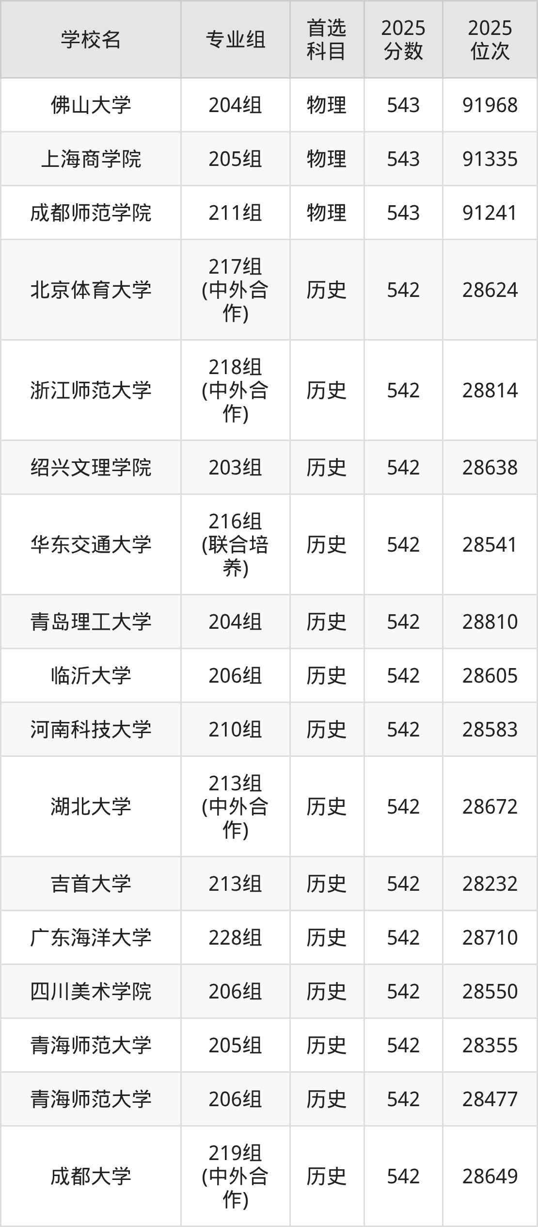四川高考历史类543分对应的位次排名是23302名,物理类543分对应的位次排名是73079名,因此建议2026年位次排在这附近的同学考虑这些大学。