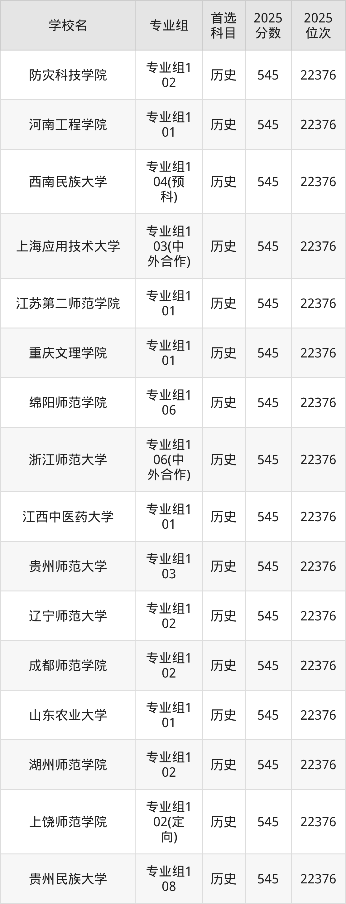 下面老师将以上文整理的其中两个省份为例,为大家具体展示543分左右能上的本科大学名单。
