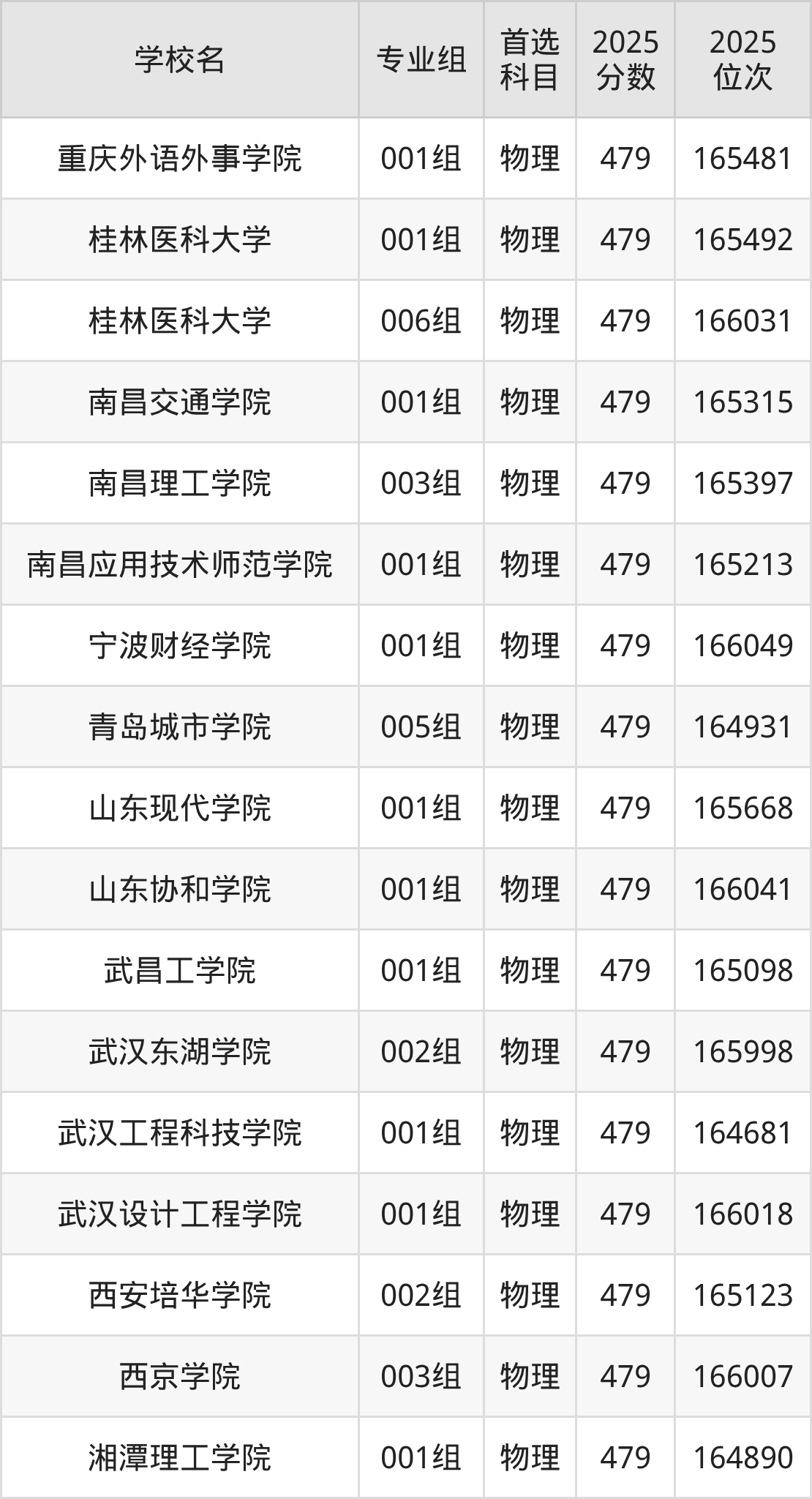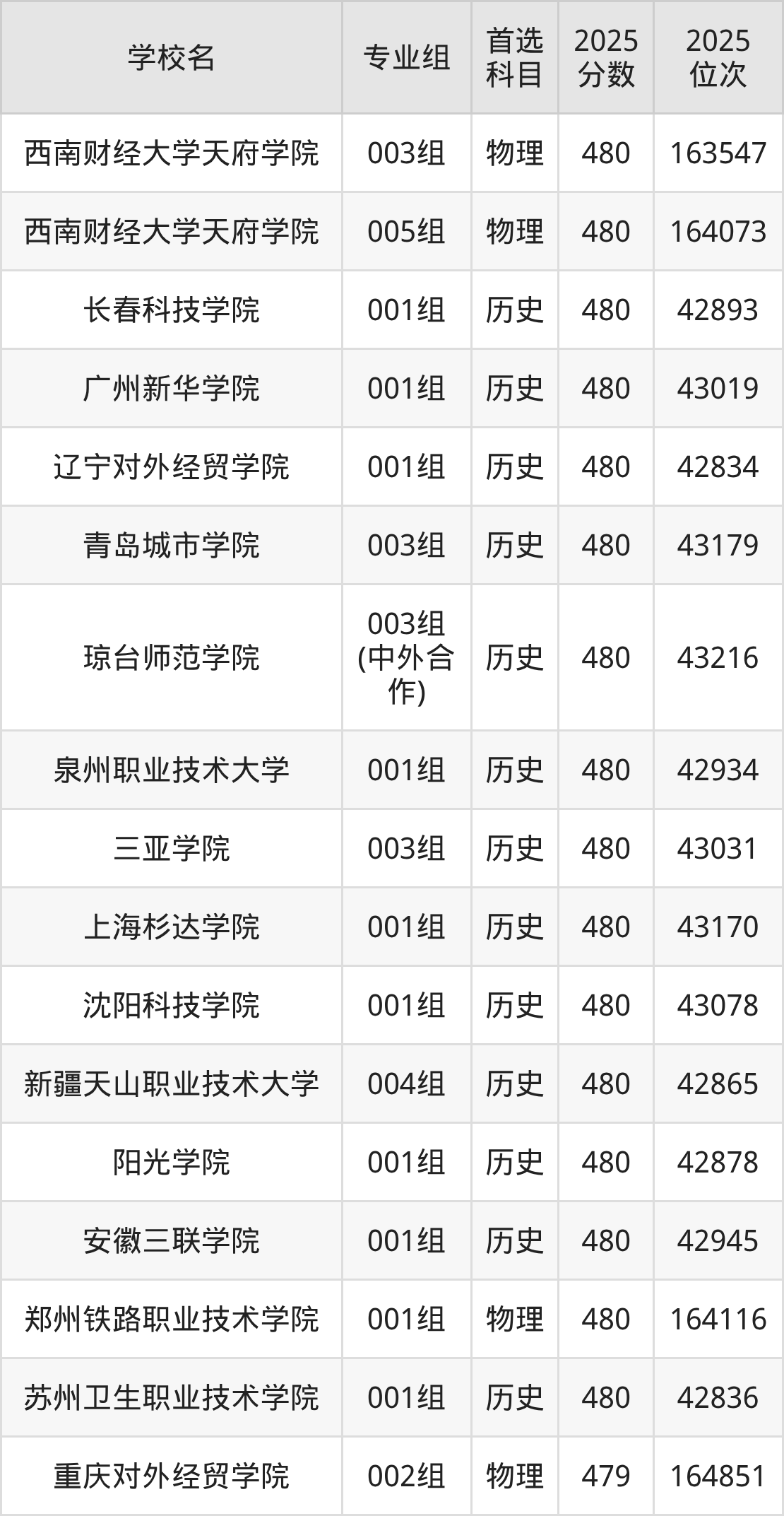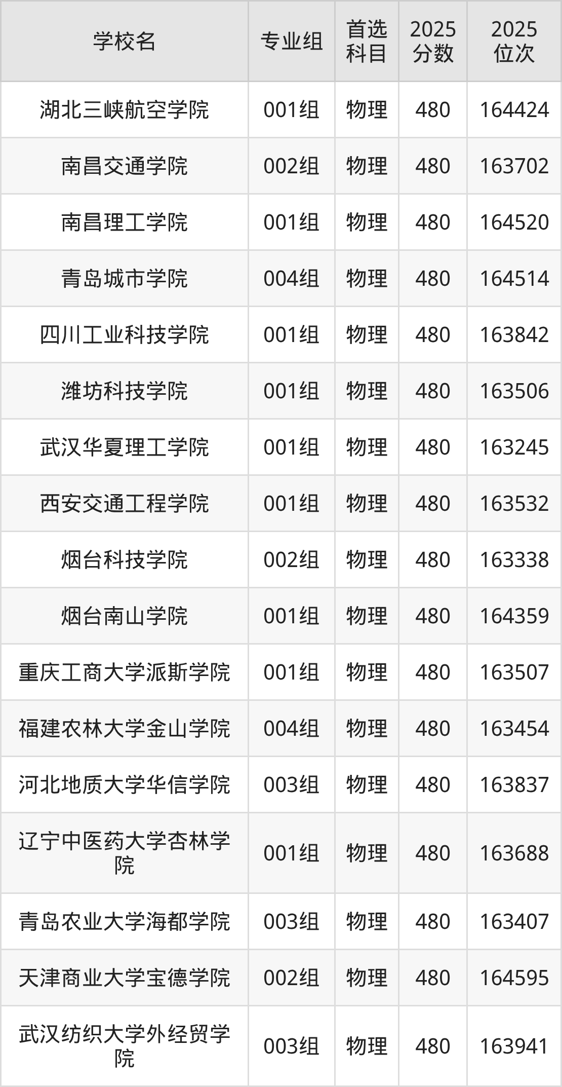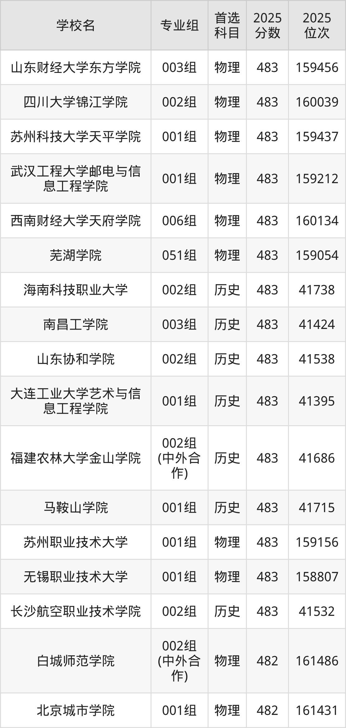 安徽高考物理类481分对应的位次排名是161857名-163201名,历史类481分对应的位次排名是42296名-42752名,因此建议2026年位次排在这附近的同学考虑这些大学。